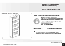 3013009RR(Havanna/Brown) 3013309RR(White/Honey) RR Chester Bookcase 22 Lbs / 10 kg 07 07 10 07 10 05 05 07 07 13 10 07 13 11 13 10 07 11 11 13 10 07 14 11 13 10 07 11 19 11 13 10 07 19 17 11 13 15 10 07 15 20 17 11 13 10 07 20 17 11 16 13 15 10 07 16 17 11 13 10 07 17 19 11 13 10 07 19 18 13 11 10 07 18 13 11 10 07 11 17 16 11 16 13 15 10 07 16 17 06 11 16 13 15 10 07 06 17 08 06 08 11 16 13 15 10 07 08 09 17 06 11 16 13 15 10 07 09 17 06 08 11 16 13 15 10 07 08 09 17 06 11 16 13 15 10 07 09 06 05 07 08 BACK FOOT 10 09 11 13 TOP PANEL 1 PC FRONT FOOT 14 15 16 17 SIDE RAILS 2 PC SHELF 1 PC 19 18 3013009RR (HAVANA / BROWN) 20 3013309RR (WHITE / HONEY) 5 3013009-5 3013309-5 6 3013009-6 3013309-6 7 3013009-7 3013309-7 8 3013009-8 3013309-8 9 3013009-9 3013309-9 10 3013009-10 3013309-10 11 3013009-11 3013309-11 13 3013009-13 3013309-13 14 3013009-14 3013309-14 15 3013009-15 3013309-15 16 3013009-16 3013309-16 17 3013009-17 3013309-17 18 3013009-18 3013309-18 19 3013009-19 3013309-19 20 3013009-20 3013309-20 5 12 PC 12 PC 13 PC L -BRACKETS 1 PC Z 8 PC 60 PC 3013009RR (HAVANA / BROWN) 3013309RR (WHITE / HONEY) 6 F 16 1 A F A B B F Insert wooden dowels A into the ends of the pieces 14 and 15, using a drop of glue G 14 F Insert connector F in parts 14 and 15 observing the indicated distance B F F B Insert shelf support B in parts 14 and 15. B B B F A A A A B A B B F 15 B F B B F 16 B F F B F A A A F 4x 12x 14x 1x 7 A A 17 2 Insert wooden dowels A into the ends of the pieces 17, using a drop of glue G A Attach the shelf 17 with the right side 14 and the left side 15 using the screws J. A A 17 J 14 14 J 17 17 15 14 15 J J J J 17 4x 4x 8 C 3 Attach top 13 and base 6, using screw C. 13 13 14 14 Attach back cross rail 18, using screw J. 14 17 17 C J 14 17 18 13 13 13 C C 14 14 14 14 17 17 17 J 18 J 14 17 18 J C 14 06 17 06 C C 13 15 13 15 15 06 14 06 17 06 J C C 8x 4x 9 4 Z Attach back panel 5, 7, 19 and 20 using nail Z. Z Z 90° 19 07 07 05 19 05 19 07 07 19 19 20 20 19 19 19 20 20 19 20 20 19 19 19 19 19 19 19 60x 10 5 Attach front foot 9 and back foot 8 using screw C. C 09 09 C 09 09 08 08 C 08 08 0909 09 4x 11 6 H Attach top front plinth 10 using L shaped metal plate E. H H E H E HH E H 4x 2x 12 7 Insert shelf 11. 11 11 11 11 11 11 13 H 8 H Fix on the wall using L shaped metal plate D, using screw C and H. H H C D D C D H 1x 1x 2x 14 22 Lbs / 10 kg Mette 6 Shelf Bookcase. 15 3013009RR (Marron Rico) 3013309RR (Blanco Miel) Mette ES 3013009RR MARRON RICO 3013309RR BLANCO / MIEL 3013309RR 3013009RR (MARRON RICO) (BLANCO / MIEL) 5 3013009-5 3013309-5 6 3013009-6 3013309-6 7 3013009-7 3013309-7 8 PIE TRASERO 3013009-8 3013309-8 9 PIE DELANTERO 3013009-9 3013309-9 10 3013009-10 3013309-10 11 3013009-11 3013309-11 13 3013009-13 3013309-13 14 3013009-14 3013309-14 15 3013009-15 3013309-15 16 3013009-16 3013309-16 17 3013009-17 3013309-17 18 3013009-18 3013309-18 19 3013009-19 3013309-19 20 3013009-20 3013309-20 ES Inserte las espigas de madera (A) en los extremos de las piezas(14) (15), utilizando una gota de pegamento (G) Inserte el conector (F) en las piezas (14) (15) respetando la distancia indicada Inserte el soporte del estante (B) en las piezas (14) (15). Inserte las espigas de madera (A) en los extremos de laspiezas(17), utilizando una gota de pegamento (G) Fije el estante (17) con el lado derecho (14) yizquierdo (15) con los tornillos (J). Fije la parte superior (13) y la base (6), utilizando el tornillo (C). Fije el travesaño trasero (18) con el tornillo (J). Fije el panel trasero (5) (7) (19) (20) con el clavo (Z). Fije el pie delantero (9) y el pie trasero (8) con el tornillo (C). Fije el zócalo frontal superior (10) con la placa metálica (E). Inserte el estante (11). Fíjela a la pared con la placa metálica en forma de L (D), utilizando tornillo (C) y (H). ES 3013009RR (Brun Riche) 3013309RR (Blanc / Miel) Mette FR 3013009RR BRUN RICHE 3013309RR BLANC / MIEL 5 PANNEAU CENTRAL ARRIÈRE 6 3013009RR (BRUN RICHE) 3013309RR (BLANC / MIEL) 3013009-5 3013309-5 3013009-6 3013309-6 7 PANNEAU ARRIÈRE 3013009-7 3013309-7 8 PIED ARRIÈRE 3013009-8 3013309-8 9 PIED AVANT 3013009-9 3013309-9 10 3013009-10 3013309-10 11 3013009-11 3013309-11 13 3013009-13 3013309-13 14 3013009-14 3013309-14 15 3013009-15 3013309-15 16 3013009-16 3013309-16 17 3013009-17 3013309-17 18 3013009-18 3013309-18 19 PANNEAU ARRIÈRE 3013009-19 3013309-19 20 PANNEAU CENTRAL ARRIÈRE 3013009-20 3013309-20 FR Insérer des chevilles en bois (A) dans les extrémités des pièces(14) (15), en utilisant une goutte de colle (G) Insérer le connecteur (F) dans les pièces (14) (15) en respectant la distance indiquée. Insérer le support d'étagère (B) dans les pièces (14) (15). Insérer des chevilles en bois (A) dans les extrémités des pièces (17), en utilisant une goutte de colle (G). Fixer l'étagère (17) avec le côté droit (14) et le côté gauche (15) à l'aide des vis (J). Fixer la partie supérieure (13) et la base (6) à l'aide de la vis (C). Fixer la traverse arrière (18) à l'aide de la vis (J). Fixer le panneau arrière (5) (7) (19) (20) à l'aide du clou (Z). Fixer le pied avant (9) et le pied arrière (8) à l'aide de la vis (C). Fixer le socle supérieur avant (10) à l'aide de la plaque métallique en L (E). Insérer la tablette (11). Fixer au mur à l'aide de la plaque métallique en forme de L (D), en utilisant les vis (C) et (H). FR ">