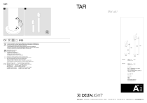 TAFI 6 TAFI 7 OFF ON 70 170 70 170 Ø60 803 503 Bevestiging vloer opbouw Montage sol appliqué Montage boden aufgebaut Fixation floor surface mounted Montaje suelo montado al superficie Montaggio pavimento montato a superficie Goederen zijn dubbel geïsoleerd en mogen niet geaard worden Les produits ont une isolation double et ne peuvent pas être mis à la terre Güter sind doppelt isoliert und müssen nicht geerdet werden Goods have double insulation and must not be grounded Los productos tienen u aislamiento doble y no se pueden conectar a tierra I proditti possiedono un doppio isolamento e non devono essere collegati a terra Beschermd tegen stof - Beschermd tegen waterstralen Protégé contre les poussières - Protégé contre les jets d'eau Staubgeschützt - Geschützt gegen Wasserstrahl Dust-protected - Protected against water jets Protegido contra el polvo - Protegido contra chorros de agua Protetto contro la polvere - Protetto contro i getti d' acqua Ø60 15 15 Ø92 Ø92 503 mm TAFI 30 222 623 12 803 mm TAFI 60 222 626 12 =A/N INCL.1 x POWERLED 7W / 3000K INCL.2 x GLASS SBL INCL.LED POWER SUPPLY 350mA-DC 100-240V / 50-60Hz IP65 OP TIONS PIN 11 CBOX IP68 CONNECTION KIT IP68 CONNECTOR 3P L.LI.B.A3 TAFI TAFI Ø72 4c 4d A B BL UE B x2 4f 4e OR HEAT + A A B DIN x1 x1 SAVE! 911 A /2.5 B >20mm 1 2 3 >20mm A A A CABLE min Ø 6 mm max Ø 12 mm 3 turns 4d +/-8mm 5 B B B 4a 4g 4b HEAT + A Delta Light® / www.deltalight.com / Last Update 13/08/2013 ">