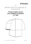 CE INSTRUCTIONS DE MONTAGE ET D'UTILISATION Pompe à chaleur air-eau pour installation extérieure LA 11MS N° de commande: 452158.68.23 FD 8404 TABLE DES MATIERES A LIRE IMMÉDIATEMENT 1.1 1.2 1.3 Indications importantes Prescriptions légales et directives Utilisation économique en énergie de la pompe à chaleur 2 UTILISATION DE LA POMPE A CHALEUR 3 4 2.1 2.2 Domaine d’utilisation Fonctionnement 3 ETENDUE DE LA LIVRAISON 3.1 3.2 3.3 Appareil de base Boîtier de commande Régulateur de pompe à chaleur 4 TRANSPORT 5 5 MISE EN PLACE 6 5.1 5.2 Généralités Ecoulement du condensat 6 MONTAGE 6.1 6.2 6.3 Généralités Branchement côté chauffage Branchement électrique 7 MISE EN SERVICE 7.1 7.2 7.3 Généralités Travaux préparatoires Démarche de mise en service 8 NETTOYAGE / MAINTENANCE 8/9 8.1 8.2 8.3 Maintenance Nettoyage côté chauffage Nettoyage côté air 9 DEFAILLANCES, LOCALISATION DES PANNES 9 10 MISE HORS SERVICE 10.1 10.2 Mise hors service pendant l’été Dernière mise hors service / élimination 11 ANNEXE 4/5 6/7 7/8 9 2 A LIRE IMMEDIATEMENT 1 A LIRE IMMEDIATEMENT 1.2 Dispositions légales et directives 1.1 Indications importantes Toutes les directives CE et les prescriptions DIN/ VDE ont été respectées pour l'étude et la fabrication de la pompe à chaleur (voir déclaration de conformité CE). ATTENTION! Avant d’ouvrir l’appareil, assurezvous que tous les circuits de courant sont hors tension. Les normes VDE, EN et CEI afférentes doivent être respectées lors du branchement électrique de la pompe électrique. D'autre part, les prescriptions de branchement des entreprises d'approvisionnement en énergie doivent être respectées. ATTENTION! Les prescriptions afférentes doivent être respectées lors du raccordement de l'installation de chauffage. Lors du transport, l’angle d’inclinaison de la pompe à chaleur ne doit pas être supérieur à 45° (dans chaque sens). 1.3 Utilisation économique en énergie de la pompe à chaleur ATTENTION! La pompe à chaleur et la palette de transport ne sont reliées que par le film d'emballage En optant pour cette pompe à chaleur, vous contribuez à ménager l'environnement. La bonne conception des installations à source de chaleur et d'exploitation est la condition indispensable à une exploitation économique sur le plan énergétique. ATTENTION! La canalisation d'aspiration et d'évacuation ne doit pas être rétrécie ni obstruée. Il est particulièrement important de maintenir aussi faible que possible la différence de température entre l'eau chaude et la source de chaleur pour qu'une pompe à chaleur soit efficace. C'est pourquoi il est vivement conseillé de réaliser un dimensionnement précis de la source de chaleur et de l'installation de chauffage. Une différence de température d'un Kelvin (un °C) s'accompagne d'une augmentation de la consommation d'électricité de 2,5% environ. Il faut veiller à ce que, lors de la conception de l'installation de chauffage, les consommateurs supplémentaires, comme la préparation d'eau chaude, soient pris en considération et qu'ils soient dimensionnés pour des températures basses. U n chauffage par le sol (chauffage pour surfaces é t e n d u e s ) s e p r ê t e particulièrement bien à l'utilisation d'une pompe à chaleur en raison de ses basses températures de départ (30° à 40°C). ATTENTION! N''utilisez jamais de nettoyants à base de sable, de soude, d’acide ou de chlorure puisque ces substances attaquent la surface. ATTENTION! Pour éviter d’endommager ultérieurement le chauffage, une neutralisation avec des produits appropriés doit être effectuée après le nettoyage du circuit de chauffage. ATTENTION! L’appareil ne doit pas être utilisé avec un convertisseur de fréquence. ATTENTION! Pendant le fonctionnement, il est important que les échangeurs thermiques ne soient pas souillés, car ceci augmenterait la différence de température et réduirait ainsi le coefficent de puissance. Les travaux sur le circuit frigorifique doivent uniquement être éffectués par des techniciens qualifiés. Un régulateur de pompe à chaleur correctement réglé contribue aussi énormément à économiser de l'énergie. Veuillez-vous référer aux instructions de service du régulateur de pompe à chaleur pour de plus amples renseignements à ce sujet. 3 UTILISATION DE LA POMPE A CHALEUR ETENDUE DE LA LIVRAISON 2 3 UTILISATION DE LA POMPE A CHALEUR ETENDUE DE LA LIVRAISON 2.1 Domaine d'utilisation 3.1 Appareil de base La pompe à chaleur air/eau peut être utilisée dans les installations de chauffage déjà en place ou nouvelles. La pompe à chaleur est livrée sous forme d'une unité de construction compacte et elle contient les éléments de construction énumérés ci-après. La pompe à chaleur est exclusivement conçue pour le réchauffement d'eau de chauffage et d'eau sanitaire! L'agent utilisé est du R404A. La pompe à chaleur est appropriée pour le fonctionnement mono-énergétique et bivalent jusqu`à une température extérieure de l'air de -20 °C. 1 2 9 8 3 En mode de fonctionnement continu, une température du retour de l'eau de chauffage de plus de 18°C resp. 20 °C doit être respectée pour garantir le dégivrage correct de l'évaporateur. La pompe à chaleur n'est pas conçue pour couvrir les besoins en chaleur accrus pendant l'assèchement de l'ouvrage; c'est pourquoi ce besoin en chaleur supplémentaire doit être couvert par des appareils spéciaux fournis par le client. Nous recommandons d'installer un thermoplongeur électrique supplémentaire (proposée comme accessoire) pour l'assèchement de l'ouvrage en automne ou en hiver. ATTENTION! L'appareil n'est pas approprié pour l'utilisation d'un convertisseur de fréquence. 2.2 Fonctionnement L'air extérieur est aspiré par le ventilateur puis refoulé à travers l'évaporateur (échangeur thermique). L'évaporateur refroidit l'air, c'est-à-dire qu'il extrait la chaleur qu'il co