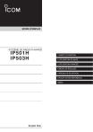 MODE D’EMPLOI SYSTÈME DE RADIO IP AVANCÉ IP501H IP503H 1 AVANT UTILISATION 2 UTILISATION DE BASE 3 UTILISATION AVANCÉE 4 MODE DE RÉGLAGE 5 PRODUITS EN OPTION 6 POUR VOTRE RÉFÉRENCE INDEX TABLE DES MATIÈRES 1. AVANT UTILISATION………………………………1-1 5. PRODUITS EN OPTION……………………………5-1 ■ Fixer l’antenne……………………………………… 1-2 ■ Fixer la dragonne…………………………………… 1-2 ■ Fixer la pince de ceinture………………………… 1-2 ■ Fixer le bloc-batterie……………………………… 1-2 ■ Allumer/régler le niveau audio…………………… 1-3 ■ Description du panneau…………………………… 1-4 ■ Icônes et indications……………………………… 1-5 ■ À propos du fonctionnement des touches……… 1-6 ■ Signal d’alerte de faible niveau de batterie……… 1-7 ■ Fonction de verrouillage des touches…………… 1-7 ■ Produits en option………………………………… 5-2 ■ Temps de chargement normal et durée de vie de la batterie…………………………………… 5-3 ■ Mises en garde relatives au bloc-batterie……… 5-4 ■ Charger à l’aide du BC-202IP2 en option……… 5-6 ■ Charger à l’aide du BC-211 en option…………… 5-6 ■ Charger à l’aide du BC-218 en option…………… 5-7 ■ Insérer le IP501H/IP503H dans le BC-218…… 5-7 ■ Utilisation du BluetoothMD…………………… 5-8 ■ Description du HM-215/BC-218……………… 5-10 ■ Chargement du VS-3…………………………… 5-11 ■ Appariement du IP501H/IP503H au BC-218 ou VS-3…………………………………… 5-12 ■ Connexion et déconnexion……………………… 5-15 ■ Supprimer un appareil Bluetooth de la liste d’appariement…………………………………… 5-21 ■ Initialiser la liste d’appariement du IP501H/IP503H…………………………………… 5-22 ■ Initialiser la liste d’appariement du BC-218…… 5-23 ■ Initialiser la liste d’appariement du VS-3……… 5-24 ■ Installer le MBA-7/MBF-1 sur une surface plane…………………………………… 5-25 ■ LC-185 (pour BP-272)…………………………… 5-28 ■ Lors du branchement de l’équipement en option………………………………………… 5-29 2. FONCTIONNEMENT DE BASE……………………2-1 ■ Émettre et recevoir………………………………… 2-2 ■ Utiliser le carnet d’adresses……………………… 2-4 ■ Utiliser l’historique d’appels……………………… 2-5 3. FONCTIONNEMENT AVANCÉ……………………3-1 ■ Envoyer un message (Appel message)………… 3-2 ■ Consulter les messages reçus…………………… 3-3 ■ Appel de statut……………………………………… 3-3 ■ À propos de l’appel de groupe (Talkgroup, ou groupe d’appel)………………………………… 3-4 ■ Sélectionner un numéro de groupe d’appel avec la touche [FUNC]……………………………… 3-5 ■ Sélectionner un numéro de groupe d’appel avec la touche [Address]…………………………… 3-5 ■ À propos de la touche [Option]…………………… 3-6 ■ Enregistrement……………………………………… 3-7 ■ Fonction d’alerte de poche……………………… 3-10 ■ Fonction P-Bell…………………………………… 3-10 ■ À propos de la fonction [VOX]………………… 3-11 ■ Fonction d’appel d’urgence…………………… 3-12 ■ Fonction travailleur isolé………………………… 3-13 ■ Fonction d’alerte en cas d’accident…………… 3-13 ■ Recherche de l’opérateur réseau……………… 3-14 6. POUR VOTRE RÉFÉRENCE………………………6-1 ■ Dépannage………………………………………… 6-2 ■ Spécifications……………………………………… 6-4 4. MODE DE RÉGLAGE…………………………………4-1 ■ Passer en mode de réglage de base…………… 4-2 ■ Passer en mode de réglage avancé……………… 4-2 ■ Utilisation en mode de réglage…………………… 4-3 ■ Liste d’éléments du mode de réglage…………… 4-4 i AVANT UTILISATION Section 1 ■ Fixer l’antenne...................................................................... 1-2 ■ Fixer la dragonne................................................................. 1-2 ■ Fixer la pince de ceinture..................................................... 1-2 ■ Fixer le bloc-batterie............................................................. 1-2 ■ Allumer/régler le niveau audio.............................................. 1-3 ■ Description du panneau....................................................... 1-4 ■ Icônes et indications............................................................. 1-5 ■ À propos de l’utilisation des touches.................................... 1-6 ■ Signal d’alerte de faible niveau de batterie.......................... 1-7 ■ Fonction de verrouillage des touches................................... 1-7 1-1 1 AVANT UTILISATION ■ Fixer l’antenne ■ Fixer la pince de ceinture LRetirez le bloc-batterie avant de fixer ou de retirer la pince de ceinture. Tenez cette partie pour tourner. Pince de ceinture Bloc-batterie Glissez la pince de ceinture dans le sens de la flèche jusqu’à ce qu’elle se cale en place en émettant un « clic ». Retirez la pince de ceinture MISE EN GARDE : • NE JAMAIS transporter l’émetteur-récepteur en le tenant par l’antenne. • Émettre sans antenne pourrait endommager le circuit interne. Soulevez la languette q et faites glisser la pince de ceinture dans la direction de la flèche w. REMARQUE : N’utilisez que l’antenne fournie. ■ Fixer la dragonne ■ Fixer le bloc-batterie Chargez entièrement le bloc-batterie avant la