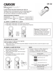 CP-32 CARSON® MagniFlash™ Loupe/lampe de poche éclairée par LED, 9x Félicitations pour avoir sélectionné votre nouvelle MagniFlash ! Afin d'obtenir des performances optimales, veuillez suivre les instructions d'utilisation et d'entretien appropriés . SPÉCIFICATIONS DU PRODUIT Dimensions : 13.5 x 6 x 2.54 cm 3 AAA (non inclus) Piles : Accessoires : Tour de cou et étui 9x Grossissement : Diamètre de l'objectif : 38mm (1.5") 68g Poids : ALLUMER LA LUMIÈRE DE LA LOUPE 1. Faites glisser l'interrupteur vers le haut pour l’allumer . correct polarity. Reattachenbattery door when through. 2. the Faites glisser l'interrupteur position centrale pour l'éteindre . — ++ — — — + — + + — + 1 Remarque : L'interrupteur doit être en position centrale pour éteindre la lumière. Si vous faites glisser l'interrupteur tout en bas, il allumera la lampe de poche . _J UTILISATION DE LA LOUPE Placez la loupe sur l'objet que vous regardez . Pour de meilleurs résultats : • Selon votre vision, vous devrez peut-être déplacer la loupe plus près ou plus loin jusqu'à ce que l'objet soit au point . ===--=-----=----=----7=~=-=-=-==ALLUMER LA LAMPE DE POCHE 1. Faites glisser l'interrupteur vers le bas pour allumer la lampe de poche . 2. Faites glisser l'interrupteur vers le haut pour allumer la loupe . 3. L'interrupteur doit être en position centrale pour éteindre la lumière . SOINS Nettoyer à l'aide d’un chiffon nettoyant en microfibre . N'utilisez pas d'abrasifs, de nettoyants chimiques ou de solvants . I~===========---= Service clients : Si vous rencontrez des problèmes, veuillez nous contacter . Nous serons très heureux de vous assister . N f2I [email protected] [email protected] CJ ** [email protected] Pour plus d’information par rapport à la garantie, visitez www.carson.com/warranty www.carson.com Carson Optical 2070 5th Avenue, Ronkonkoma, NY 11779 Tel: 631-963-5000 ">