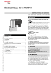 Électrovanne gaz VG 6 – VG 15/10 INSTRUCTIONS DE SERVICE Cert. Version 02.25 · Edition 02.25 · FR · 03251389 1 SÉCURITÉ DE, EN, FR, NL, IT, ES, DA, SV, NO, PT, EL, TR, CS, PL, RU, HU – www.docuthek.com 1.1 Lire les instructions de service avant utilisation Sommaire 1 Sécurité . . . . . . . . . . . . . . . . . . . . . . . . . . . . . . . 1 2 Vérifier l’utilisation . . . . . . . . . . . . . . . . . . . . . . . 2 3 Montage . . . . . . . . . . . . . . . . . . . . . . . . . . . . . . 2 4 Câblage . . . . . . . . . . . . . . . . . . . . . . . . . . . . . . . 2 5 Vérifier l’étanchéité . . . . . . . . . . . . . . . . . . . . . . 3 6 Remplacer la commande magnétique . . . . . . . . 3 7 Maintenance . . . . . . . . . . . . . . . . . . . . . . . . . . . 4 8 Aide en cas de défauts . . . . . . . . . . . . . . . . . . . 4 9 Caractéristiques techniques . . . . . . . . . . . . . . . 5 10 Durée de vie prévue . . . . . . . . . . . . . . . . . . . . . 5 11 Logistique . . . . . . . . . . . . . . . . . . . . . . . . . . . . 5 12 Mise au rebut . . . . . . . . . . . . . . . . . . . . . . . . . 6 13 Certifications . . . . . . . . . . . . . . . . . . . . . . . . . 6 Veuillez lire attentivement ces instructions de service avant le montage et la mise en service. Remettre les instructions de service à l’exploitant après le montage. Cet appareil doit être installé et mis en service conformément aux normes et règlements en vigueur. Vous trouverez ces instructions de service également sur le site www.docuthek.com. 1.2 Légende 1 , 2 ,3 , a , b , c = étape ➔ = remarque 1.3 Responsabilité Notre société n’assume aucune responsabilité quant aux dommages découlant du non-respect des instructions de service et d’une utilisation non conforme de l’appareil. 1.4 Conseils de sécurité Les informations importantes pour la sécurité sont indiquées comme suit dans les présentes instructions de service : DANGER Vous avertit d’un danger de mort. AVERTISSEMENT Vous avertit d’un éventuel danger de mort ou risque de blessure. ATTENTION Vous avertit d’éventuels dommages matériels. L’ensemble des tâches ne peut être effectué que par du personnel qualifié dans le secteur du gaz. Les travaux d’électricité ne peuvent être effectués que par du personnel qualifié. 1.5 Modification, pièces de rechange Toute modification technique est interdite. Utiliser uniquement des pièces de rechange d’origine. 2 VÉRIFIER L’UTILISATION Électrovanne gaz assurant la sécurité du gaz ou de l’air sur des équipements consommant du gaz ou de l’air. Cette fonction n’est garantie que pour les limites indiquées, voir page 5 (9 Caractéristiques techniques). Toute autre utilisation est considérée comme non conforme. 2.1 Code de type VG Électrovanne gaz 6–15/10 Diamètre nominal K Raccord fileté à bague conique pour tube de 8 mm, fourni séparément R Taraudage Rp 01 pu maxi. 100 mbar 03 pu maxi. 360 mbar 05 pu maxi. 500 mbar 18 pu maxi. 1,8 bar T Tension secteur 220/240 V CA, 50/60 Hz Q Tension secteur 120 V CA, 50/60 Hz 6 Raccordement avec embase normalisée à 3 pôles et connecteur G Modèle peu bruyant 2.2 Désignation des pièces – Un fonctionnement continu en cas de températures élevées accélère l’usure des matériaux élastomères. – Ne pas monter ou stocker l’appareil en plein air. – Respecter la température ambiante maxi. – voir la plaque signalétique. – Respecter la pression amont maxi. – voir la plaque signalétique. ➔ Position de montage : commande magnétique noire placée à la verticale ou couchée à l’horizontale, pas à l’envers. ➔ Le matériau d’étanchéité et les impuretés comme les copeaux ne doivent pas pénétrer dans le corps de la vanne. ➔ Installer un filtre en amont de chaque installation. ➔ Utiliser seulement un matériau d’étanchéité approuvé. ➔ Veiller à un espace libre suffisant pour le montage et le réglage. VG 6K pour raccords à bague de serrage ➔ Joint biconique ( 5) et vis intermédiaire ( 4) sont fournis. 2 1 3 Ø 8 mm 2 5 O 4 e l 3 1 4 4 CÂBLAGE AVERTISSEMENT Danger de mort par électrocution ! Avant de travailler sur des éléments conducteurs, mettre ceux-ci hors tension ! En fonctionnement, la commande magnétique chauffe. Température de surface d’environ 85 °C (environ 185 °F). Elster GmbH Osnabrück, Germany VG 3 MONTAGE AVERTISSEMENT Afin que la vanne VG ne subisse pas de dommages lors du montage et durant le service, il y a lieu de tenir compte des dispositions suivantes : ➔ Utiliser un câble résistant à la température (> 80 °C/176 °F). ➔ Câblage selon EN 60204-1. 1 Mettre l’installation hors tension. 2 Fermer l’alimentation gaz. ➔ Afin de repositionner le connecteur pour le raccordement électrique, la commande magnétique peut être tournée. Pour ce faire, desserrer les deux vis sans les dévisser complètement. FR-2 VG 6 – VG 15/10 · Edition 02.25 1 Corps 2 Commande magnétique 3 Connecteur 4 VG 6K : vis intermédiaire 5 VG 6K : joint biconique 2.3 Plaque signalétique Tension nominale, consommation électrique, position de montage, pression amont maxi. pu, température ambiante, type de protection et fluide : voir plaque signalétique. N2 ≤ 1,5 xp u max 6 ➔ Conduite non étanche : contrôler le joint d’étanchéité. Vérifier l’étanchéité interne 7 Fermer l’électrovanne. ➔ Une fois que la commande magnétique est dans la position correcte, resserrer fermement les vis. AVERTISSEMENT Attention ! Le compartiment gaz a été ouvert. Observer les recommandations suivantes pour qu’il n’y ait pas de dommages : – Vérifier l’étanchéité, voir page 3 (5 Vérifier l’étanchéité). 3 4 0 0 8 N2 ≤ 1,5 x pu max 9 Après 60 s, augmenter la pression d’essai à ≤ 1,5 x pu max.. 0 5 0 2 1 1 = N (-), 2 = LV1V2 (+) 7 6 8 Assemblage dans l’ordre inverse. 10 N2 ca. 6 mbar ➔ Système étanche : ouvrir la conduite. ➔ Appareil 