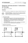 Supports anti-basculement - Instructions de montage Supports anti-basculement - Instructions de montage Doc : A06954 rev01, PN : 6515201 REMARQUE Les instructions suivantes ne s'appliquent qu'au chargeur de batterie Micropower SL. Lisez les instructions. Le manuel contient des consignes importantes de sécurité et d'utilisation. Consultez et suivez le manuel fourni avec le chargeur de batterie et les instructions données ici. MISE EN GARDE • • UNE MAUVAISE FIXATION PEUT PROVOQUER UNE INSTABILITÉ ET DES DOMMAGES. VÉRIFIEZ SI LES VIS SONT ADAPTÉES LORS DE LA FIXATION AU SOL. SI VOUS AVEZ BESOIN DE CONSEILS SUR LES SYSTÈMES DE VIS APPROPRIÉS, CONTACTEZ UN REVENDEUR LOCAL SPÉCIALISÉ. LE CHARGEUR DE BATTERIE EST LOURD, UTILISEZ UN ÉQUIPEMENT DE LEVAGE AFIN DE LE SOULEVER ET LE DÉPLACER. 1. Desserrez les quatre pieds. 2. Insérez les supports anti basculement et serrez. 1 Supports anti-basculement - Instructions de montage 3. Fixez les supports anti-basculement au sol. Les vis pour la fixation au sol ne sont pas fournies. Numéro de pièce pour les supports anti-basculement (4 pièces incluses) : 8580265 Vous pourrez trouver de plus amples informations et de la documentation sur le Centre d'assistance Micropower : https://micropower.docfactory.com Micropower Group AB Gullhallavägen 20C, SE-352 50 Växjö, Suède Téléphone : +46 (0)470-727400 Assistance: +46 (0)10 811 00 80 e-mail : [email protected] www.micropower-group.com Micropower Group US 150 Marybill Drive Troy, Ohio, 45373 Téléphone: 937-606-2793 ext. 222 Assistance: +1 888 230 60 57 e-mail: [email protected] www.micropower-group.com 2 ">