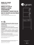 MANUEL DE L'USAGER RENSEIGNEMENTS IMPORTANTS À L'INTÉRIEUR, À CONSERVER POUR L'USAGER Ce manuel vous donne de l'information pour : MODÈLE HY-PLUS-SE MARMITE À VAPEUR ATMOSPHÉRIQUE AUTOCUISEUR À CONVECTION SUR BASE DE CHAUFFE-EAU ÉLECTRIQUE · Pour les modèles : HY-6SE et HY-10SE · Capacité : 6 ou 10 tables de marmite à vapeur (12 po x 20 po x 2-1/2 po) CE MANUEL DOIT ÊTRE CONSERVÉ AFIN DE POUVOIR S'Y RÉFÉRER PLUS TARD. VEUILLEZ LIRE, COMPRENDRE ET SUIVRE ATTENTIVEMENT LES INSTRUCTIONS ET AVERTISSEMENTS CONTENUS DANS CE MANUEL. MEASURE DE SÉCURITÉ Ne pas entreposer ni utiliser d’essence ni autres vapeurs ou liquides inflammables à proximité de cet appareil ou tout autre appareil. AVERTISSEMENT L’installation, le réglage, la modification, la réparation ou l’entretien incorrects de cet appareil peuvent causer des dommages matériels, des blessures ou la mort. Lire attentivement les instructions d’installation, de fonctionnement et d’entretien avant de procéder à son installation ou entretien. AVISEZ IMMÉDIATEMENT LE TRANSPORTEUR DE TOUT DOMMAGE Le destinataire a la responsabilité d'inspecter le conteneur dès la réception et de déterminer la présence de tout dommage, incluant les dommages non apparents. Groen suggère de faire mention sur le bordereau de livraison de tout soupçon de dommage. Il est de la responsabilité du destinataire de présenter une demande d'indemnité avec le transporteur. Nous vous recommandons de le faire sans délai. Entretien ou questions concernant la fabrication? Contactez-nous au 888-994-7636. Information contained in this document is known to be current and accurate at the time of printing/creation. Reference our product line website for the most updated product information and specifications. © 2023 Electrolux Professional, Inc. All Rights Reserved. NUMÉRO DE PIÈCE 174332 VER A (09/23) 888-994-7636, fax 888-864-7636 unifiedbrands.net CE MANUEL DOIT ÊTRE CONSERVÉ AFIN DE POUVOIR S'Y RÉFÉRER PLUS TARD. VEUILLEZ LIRE, COMPRENDRE ET SUIVRE ATTENTIVEMENT LES INSTRUCTIONS ET AVERTISSEMENTS CONTENUS DANS CE MANUEL. POUR VOTRE SÉCURITÉ NE PAS RANGER OU UTILISER DE CARBURANT OU AUTRES VAPEURS OU LIQUIDES INFLAMMABLES À PROXIMITÉ DE CET OU TOUT AUTRE APPAREIL. AVERTISSEMENT UNE INSTALLATION, UN AJUSTEMENT, UNE MODIFICATION, UN SERVICE OU UN ENTRETIEN INADÉQUAT PEUT CAUSER DES DOMMAGES À LA PROPRIÉTÉ, DES BLESSURES CORPORELLES OU ENTRAÎNER LA MORT. VEUILLEZ LIRE LES DIRECTIVES D'INSTALLATION, DE FONCTIONNEMENT ET D'ENTRETIEN AU COMPLET AVANT D'EFFECTUER L'INSTALLATION OU L'ENTRETIEN DE CET APPAREIL. AVISEZ IMMÉDIATEMENT LE TRANSPORTEUR DE TOUT DOMMAGE LE DESTINATAIRE A LA RESPONSABILITÉ D'INSPECTER LE CONTENEUR DÈS LA RÉCEPTION ET DE DÉTERMINER LA PRÉSENCE DE TOUT DOMMAGE, INCLUANT LES DOMMAGES NON APPARENTS. NOUS SUGGÉRONS DE FAIRE MENTION SUR LE BORDEREAU DE LIVRAISON DE TOUT SOUPÇON DE DOMMAGE. IL EST DE LA RESPONSABILITÉ DU DESTINATAIRE DE PRÉSENTER UNE DEMANDE D'INDEMNITÉ AVEC LE TRANSPORTEUR. NOUS VOUS RECOMMANDONS DE LE FAIRE SANS DÉLAI. IMPORTANT - À LIRE EN PREMIER - IMPORTANT AVERTISSEMENT : L'APPAREIL DOIT ÊTRE INSTALLÉ PAR DU PERSONNEL QUALIFIÉ POUR LES TRAVAUX D'ÉLECTRICITÉ ET DE PLOMBERIE. UNE MAUVAISE INSTALLATION PEUT CAUSER DES BLESSURES AU PERSONNEL AINSI QUE DES DOMMAGES À L'ÉQUIPEMENT. L'INSTALLATION DOIT ÊTRE CONFORME AUX CODES APPLICABLES. AVIS : N'INSTALLEZ PAS L'APPAREIL D'UNE MANIÈRE QUI POURRAIT OBSTRUER LES FENTES LATÉRALES DU CÔTÉ DROIT, OU À MOINS DE 12 PO (30 CM) D'UNE SOURCE DE CHALEUR TELLE QU'UNE BRAISIÈRE, UNE FRITEUSE, UN GRILLOIR TYPE CHARBON DE BOIS OU UNE BOUILLOIRE. AVIS : METTEZ L'APPAREIL À NIVEAU DE L'AVANT VERS L'ARRIÈRE OU PENCHEZ-LE LÉGÈREMENT VERS L'ARRIÈRE POUR ÉVITER DES PROBLÈMES DE DRAINAGE. AVERTISSEMENT : POUR ÉVITER TOUTE BLESSURE ET TOUT DOMMAGE, VEUILLEZ SUIVRE EXACTEMENT LE SCHÉMA DE CÂBLAGE LORS DU RACCORDEMENT D'UN APPAREIL. UNE MISE À LA MASSE ÉLECTRIQUE EST NÉCESSAIRE. MISE EN GARDE : LE DRAIN DOIT ÊTRE CERTIFIÉ POUR L'EAU BOUILLANTE. N'UTILISEZ PAS DE TUYAUTERIE EN PLASTIQUE. AVERTISSEMENT : NE RACCORDEZ PAS LE DRAIN DIRECTEMENT AU COLLECTEUR PRINCIPAL DU BÂTIMENT. DES DOMMAGES À L'ÉQUIPEMENT POURRAIENT S'EN SUIVRE. AVERTISSEMENT : IL POURRAIT ÊTRE DANGEREUX DE BLOQUER LE DRAIN. IMPORTANT : UNE CONNEXION DE VIDANGE INADÉQUATE ANNULERA LA GARANTIE. AVERTISSEMENT : LORSQUE VOUS OUVREZ UNE PORTE, PLACEZ-VOUS DE FAÇON À ÊTRE LOIN DE LA VAPEUR QUI SORTIRA DE L'APPAREIL. TOUT CONTACT AVEC LA VAPEUR PEUT CAUSER DES BRÛLURES. AVERTISSEMENT : AVANT DE NETTOYER L'EXTÉRIEUR DE L'AUTOCUISEUR, DÉBRANCHEZ L'ALIMENTATION ÉLECTRIQUE. N'UTILISEZ PAS D'EAU OU DE SOLUTION DE NETTOYAGE SUR LES BOUTONS DE CONTRÔLE OU SUR LES COMPOSANTS ÉLECTRIQUES. NE NETTOYEZ AUCUNE PARTIE DE L'APPAREIL AU TUYAU D'ARROSAGE OU À LA VAPEUR. DES BLESSURES SÉRIEUSES POURRAIENT SURVENIR. AVERTISSEMENT : LAISSEZ LES CHAMBRES DE CUISSON REFROIDIR AVANT DE LES NETTOYER. LES SURFACES CHAUDES PEUVENT CAUSER DES BRÛLURES. AVERTISSEMENT : VEUILLEZ LIRE ET SUIVRE ATTENTIVEMENT LES DIRECTIVES INDIQUÉES SUR L'ÉTIQUETTE DE CHAQUE AGENT DE NETTOYAGE UTILISÉ. UN CONTACT DIRECT AVEC CERTAINS AGENTS PEUT CAUSER DES BLESSURES. AVERTISSEMENT : NE MÉLANGEZ AUCUN AGENT DE DÉTARTRAGE (ACIDE) AVEC UN DÉGRAISSEUR (ALCALI) DANS LE GÉNÉRATEUR DE VAPEUR OU SUR LES PAROIS DE L'ENCEINTE DE CUISSON. DES GAZ DANGEREUX POURRAIENT ÊTRE CRÉÉS. AVERTISSEMENT : NE METTEZ NI LES MAINS NI AUCUN OUTIL DANS LA CHAMBRE DE CUISSON TANT QUE LE VENTILATEUR N'A PAS ARRÊTÉ DE TOURNER. LA ROTATION DU VENTILATEUR POURRAIT CAUSER DES BLESSURES. AVERTISSEMENT : N'UTILISEZ PAS L'APPAREIL SI LES PANNEAUX AMOVIBLES DU CÔTÉ DROIT NE SONT PAS INSTALLÉS CORRECTEMENT. DES DOMMAGES À L'APPAREIL POURRAIENT SURVENIR. MISE EN GARDE : NE DÉPOSEZ PAS L'ARMOIRE DU CHAUFFE-EAU DIRECTEMENT AU-DESSUS D'UN DRAIN OU ÉVIER DE PLANCHER. L'HUMIDITÉ OU L'EAU PROVENANT DU DRAIN POURRAIENT 