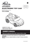 EN IN240200185V02_US_CA 370-315V80 ● Suitable for 3+ years ● Maximum user weight: 30kg ● Adult assembly required 3+ years 1050*640*485mm 2 PART PART NO NAME PICTURE Q,ty (pcs) REMARKS PART PART NO NAME PICTURE Q,ty (pcs) REMARKS 1 Vehicle body 1 2 Windshield 1 3 Seat A 1 4 Seat B 1 5 Gear box 2 6 Driving wheel 2 7 Wheel 2 8 Steering wheel 1 Car 1 pair 10 1 pair Left & right 6 Placed in the rear and front axle 9 window 11 Tail wing 13 M8 Nut Left & right M10 12 washer 1 4 Trim Placed in the rear and front axle 3 Assembly package PART PART NO NAME 14 Wheel hub PICTURE Q,ty (pcs) PART REMARKS PART NO NAME 4 Rear view mirror 15 PICTURE Q,ty (pcs) REMARKS 1 pair Left & right Placed in the Seat B 16 Screw M4x10 6 17 Screw M3.5x14 2 Instruction 1 19 Charger 1 21 Spanner 2 18 manual Remote 20 control 1 Not included AAA1.5V battery 4 5 6 Driving wheel *2 12 M10 Washer *6 Wheel hub *4 Gear box *2 Wheel*2 Car window *2 Tail wing *1 M8 Nut *4 5 7 9 11 13 Trim *2 17 M3.5X14Screw *2 15 Rear view mirror*2 16 M4X10 Screw *6 14 10 8 Steering wheel *1 Seat B *1 4 Seat A *1 3 Windshield *1 2 Vehicle body *1 1 6 3. Install the tail wing and steering wheel. As shown in the picture, press the tail wing downward to fix it. As shown in the picture, connect the steering wheel and gauge board middle connector. As shown in the picture, press and hold the button ,then install the steering wheel to the corresponding places. NOTE:When installing the steering wheel, it's better to put the line plug into the slot of fixed parts, to avoid the steering wheel nip the wire. 7 8 9 10 11 3+ 12 13 14 15 16 17 18 19 20 FR IN240200185V02_US_CA 370-315V80 ● Convient aux enfants de 3+ ans ● Poids maximal de l'utilisateur: 30kg ● Assemblage par un adulte requis 21 3+ ans 1050*640*485mm 22 Aile de queue 23 Placé sur le siège B 24 25 Aile de queue*1 26 3. Installer Aile de queue et le volant. Aile de queue Comme indiqué sur l'image, appuyez sur l'aile de queue vers le bas pour la fixer. 27 28 29 30 Étapes d'assemblage ESPACE COMPLÉMENT IMPORTANT AU MANUEL D'INSTRUCTION Après avoir assemblé chaque roue sur les essieux, veuillez vérifier l'espace entre le filetage de la vis et le dispositif pliable (voir l'image ci-dessous). Si l'espace est trop grand, veuillez ajouter deux ou trois rondelles à l'intérieur de la roue. Mais après avoir serré l'écrou à l'extérieur de la roue, veuillez tourner la roue avec votre doigt pour vérifier si elle peut tourner librement. C'est très important, car si la roue peut tourner librement, c'est bon, mais si l'écrou appuie sur la roue et que la roue ne peut pas tourner librement, le moteur risque de se casser facilement ! Ensuite, vous devez diminuer une ou deux rondelles pour vous assurer que la roue peut tourner librement ! 31 3+ 32 33 34 35 36 Recharge de la moto AVERTISSEMENT ! • PRÉVENIR LES INCENDIES ET LES CHOC ÉLECTRIQUES : - Des gaz explosifs sont créés lors de la charge. Ne pas charger près de sources de chaleur ou de matériaux inflammables. Charger la batterie uniquement dans un endroit bien ventilé. - NE JAMAIS soulever la batterie par les fils ou le chargeur. Cela peut endommager la batterie et causer un incendie. Soulever la batterie uniquement par le boîtier. - Charger la batterie dans un endroit sec uniquement. • Les bornes de la batterie, les bornes et les accessoires associés contiennent du plomb et des composés du plomb, des produits chimiques connus de l'État de Californie pour causer le cancer et des problèmes de reproduction. Se laver les mains après manipulation. • Ne pas ouvrir la batterie. La batterie contient de l'acide plombique et d'autres produits toxiques et corrosifs. • Ne pas ouvrir le chargeur. Les fils exposés et les circuits à l'intérieur du boîtier peuvent causer des chocs électriques. Seuls les adultes peuvent manipuler ou charger la batterie. NE PERMETTEZ JAMAIS à un enfant de manipuler ou de charger la batterie. La batterie est lourde et contient de l'acide plombique (électrolyte). • Ne pas faire tomber la batterie. Cela pourrait endommager définitivement la batterie ou causer de graves blessures. • Avant de charger la batterie, vérifiez l'usure ou les dommages de la batterie, du chargeur, du cordon d'alimentation et des connecteurs. NE CHARGEZ PAS la batterie si des dommages aux pièces sont survenus. • Ne pas permettre à la batterie de se décharger complètement. Rechargez la batterie après chaque utilisation ou une fois par mois si elle n'est pas utilisée régulièrement. • Ne pas charger la batterie à l'envers. • Toujours fixer la batterie avec le support. La batterie peut tomber et blesser un enfant si le véhicule se renverse. • Une surveillance adulte est recommandée pour les jeunes enfants. • Le jouet doit être utilisé avec prudence, car il faut de l'habileté pour éviter les chutes ou les collisions pouvant causer des blessures à l'utilisateur ou à des tiers. • La prise d'entrée de charge se trouve EN DESSOUS DU SIÈGE. • L'INTERRUPTEUR D'ALIMENTATION doit être placé en position OFF lors de la charge. • Avant la première utilisation, vous devez charger la batterie pendant 8 à 12 heures. Ne rechargez pas la batterie pendant plus de 20 heures afin d'éviter une surchauffe du chargeur. • Lorsque le véhicule commence à fonctionner lentement, rechargez la batterie. • Après chaque utilisation ou une fois par mois, le temps de recharge minimum est de 8 à 12 heures, pas plus de 20 heures. AVERTISSEMENT ! Ce produit est doté d'une PROTECTION DE CHARGE : Lors de la charge, toutes les fonctions seront coupées ! 1. Trouvez la prise d'entrée de charge sous le siège. 2. Branchez le port du chargeur dans la prise d'entrée. 3. Branchez la fiche du chargeur dans une prise murale. La batterie commencera à se charger. 37 Guide de dépannage PROBLÈME : Le véhicule ne fonctionne pas. CAUSE POSSIBLE : La batterie est peut-être déchargée. Après chaque utilisation, o