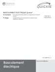 Au Fournisseur: Ce manuel doit être remis à l’usager de ce fauteuil roulant. À l’Usager: Veuillez lire tout le manuel et le conserver pour référence ultérieure. Manuel d ’instructions P/N 252999 Rev. B Basculement électrique Manuel d'utilisation BASCULEMENT ÉLECTRIQUE I. INTRODUCTION 252999 Rev. B 2 BASCULEMENT ÉLECTRIQUE II. TABLE DES MATIÈRES 3 252999 Rev. B BASCULEMENT ÉLECTRIQUE 7 III. VOTRE UNITÉ ET SES COMPOSANTS 8 Basculement électrique 2 1 3 4 5 6 2 CARACTÉRISTIQUES TECHNIQUES DU DISPOSITIF DE BASCULEMENT ÉLECTRIQUE 252999 Rev. B 4 BASCULEMENT ÉLECTRIQUE IV. AVIS – À LIRE AVANT UTILISATION 5 252999 Rev. B BASCULEMENT ÉLECTRIQUE V. INTERFERENCE ELECTROMAGNETIQUE 252999 Rev. B 6 BASCULEMENT ÉLECTRIQUE VI. AVERTISSEMENTS D’ORDRE GÉNÉRAL 7 252999 Rev. B BASCULEMENT ÉLECTRIQUE VI. AVERTISSEMENTS D’ORDRE GÉNÉRAL VII. BATTERIES ET CHARGEUR 252999 Rev. B 8 BASCULEMENT ÉLECTRIQUE VIII. UTILISATION ET ENTRETIEN 9 252999 Rev. B BASCULEMENT ÉLECTRIQUE IX. CONSIGNES D’UTILISATION 252999 Rev. B 10 BASCULEMENT ÉLECTRIQUE X. RÉPARATION CHEZ LE DÉTAILLANT AGRÉÉ ET RÉGLAGE XI. GARANTIE DE SUNRISE LIMITÉ 11 252999 Rev. B Sunrise Medical S.r.l. Via Riva, 20 – Montale 29122 Piacenza Italia Tel.: +39 0523 573111 www.SunriseMedical.it Sunrise Medical GmbH Kahlbachring 2-4 D-69254 Malsch Deutschland Tel.: +49 (0) 7253/980-0 Fax: +49 (0) 7253/980-222 www.SunriseMedical.de Sunrise Medical AG Erlenauweg 17 CH-3110 Münsingen Schweiz/Suisse/Svizzera Tel +41 (0)31 958 3838 www.SunriseMedical.ch Sunrise Medical Ltd. Thorns Road Brierley Hill West Midlands DY5 2LD England Phone: 0845 605 66 88 Fax: 0845 605 66 89 www.SunriseMedical.co.uk Sunrise Medical AS Delitoppen 3 1540 Vestby Norge Telefon: +47 66 96 38 00 [email protected] www.SunriseMedical.no Sunrise Medical S.L. Polígono Bakiola, 41 48498 Arrankudiaga – Vizcaya España Tel.: +34 (0) 902142434 Fax: +34 (0) 946481575 www.SunriseMedical.es Sunrise Medical AB Neongatan 5 431 53 Mölndal Sweden Tel.: +46 (0)31 748 37 00 [email protected] www.SunriseMedical.se Sunrise Medical Poland Sp. z o.o. ul. Elektronowa 6, 94-103 Łódź Polska Telefon: + 48 42 275 83 38 Fax: + 48 42 209 35 23 E-mail: [email protected] www.Sunrise-Medical.pl MEDICCO s.r.o. H – Park, Heršpická 1013/11d, 639 00 Brno Czech Republic Tel.: (+420) 547 250 955 Fax: (+420) 547 250 956 www.medicco.cz [email protected] Bezplatná linka 800 900 809 Sunrise Medical B.V. Defensiedok 20 3433 NE Nieuwegein The Netherlands T: +31 (0)30 – 60 82 100 F: +31 (0)30 – 60 55 880 E: [email protected] www.SunriseMedical.nl Sunrise Medical Aps Mårkærvej 5-9 2630 Taastrup Denmark +45 70 22 43 49 [email protected] www.SunriseMedical.dk Sunrise Medical HCM B.V. Vossenbeemd 104 5705 CL Helmond The Netherlands T: +31 (0)492 593 888 E: [email protected] www.SunriseMedical.nl www.SunriseMedical.eu (International) Sunrise Medical Australia 11 Daniel Street Wetherill Park NSW 2164 Australia Ph: +61 2 9678 6600 Email: [email protected] www.SunriseMedical.com.au Sunrise Medical S.A.S ZAC de la Vrillonnerie 17 Rue Mickaël Faraday 37170 Chambray-Lès-Tours Tel : + 33 (0) 2 47 55 44 00 Email: [email protected] www.SunriseMedical.fr Sunrise Medical (US) LLC North American Headquarters 12002 Volunteer Blvd. Mount Juliet, TN 37122, USA (800) 333-4000 (800) 300-7502 www.SunriseMedical.com © 2025 Sunrise Medical (US) LLC 252999 Rev. B Sunrise Medical Canada Inc. 1000 Creditstone Rd., Unit #2 Concord, ON, L4K 4P8 Canada Phone: 1-800-263-3390 Fax: 1-800-561-5834 www.SunriseMedical.ca ">