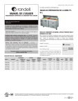 NUMÉRO DE PIÈCE PP MNL2105 RÉV A (08/23) Ce manuel vous donne de l’information pour : TABLES DE PRÉPARATION DE LA SÉRIE PTW-L MANUEL DE L’USAGER RENSEIGNEMENTS IMPORTANTS À CONSERVER POUR L’USAGER 888-994-7636, télécopieur 888-864-7636 unifiedbrands.net CE MANUEL DOIT ÊTRE CONSERVÉ AFIN DE POUVOIR S’Y RÉFÉRER PLUS TARD. VEUILLEZ LIRE, COMPRENDRE ET SUIVRE ATTENTIVEMENT LES INSTRUCTIONS ET AVERTISSEMENTS CONTENUS DANS CE MANUEL. POUR VOTRE SECURITE Ne pas ranger ou utiliser de carburant ou autres vapeurs ou liquides inflammables à proximité de cet ou tout autre appareil. VEUILLEZ CONSERVER CE MANUEL AFIN DE POUVOIR VOUS Y RÉFÉRER PLUS TARD ATTENTION R290 réfrigérant inflammable utilisé. Une installation, ajustement, modification, service ou entretien inadéquat peuvent causer des dommages à la propriété, des blessures corporelles ou entraîner la mort. Veuillez lire les directives d’installation, de fonctionnement et d’entretien au complet avant d'effectuer l'installation ou l'entretien de cet appareil. AVIS : À cause de son programme d'amélioration continue de produit, Randell se réserve le droit d'effectuer sans préavis des modifications à la conception et aux caractéristiques. AVIS : Veuillez lire attentivement ce manuel au complet avant l'installation. Si certaines procédures recommandées ne sont pas suivies, les réclamations de garantie seront refusées. NOTIFIER VOTRE OPERATEUR POUE LES DOMMAGES Le destinataire a la responsabilité d’inspecter le conteneur dès la réception et de déterminer la présence de tout dommage, incluant les dommages non apparents. Randell suggère de faire mention sur le bordereau de livraison de tout soupçon de dommage. Il est de la responsabilité du destinataire de présenter une demande d'indemnité avec le transporteur. Nous vous recommandons de le faire sans délai. NUMÉRO DE MODÈLE_____________________ NUMÉRO DE SÉRIE _______________________ NUMÉRO DE SÉRIE DATE D'INSTALLATION ____________________ DESCRIPTION DE L'ÉQUIPEMENT MODÈLE PT48-18W-L LONGUEUR 48 PO UNITÉ ENSEMBLE AVEC PLANCHE À DÉCOUPER 33 PO 36,125 PO DESCRIPTION Le numéro de série se trouve sur le côté gauche de l'armoire ou sur la paroi arrière la plus proche du compartiment du compresseur, sous le rail du tiroir. Un exemple est montré ici. Pour toutes questions sur la fabrication ou le service, contactez le 888-994-7636. PROFONDEUR NUMÉRO DE MODÈLE SURFACE DE TRAVAIL COUVERTURE GÉNÉRALE OUVERTE CAPACITÉ DU PAN 1/6 DE LA TAILLE 34,75 PO 49 PO HAUTEUR PORTES STOCKAGE CU. FT. HP VOLT / CYCLE / PHASE AMPS PRISE NEMA POIDS EXPED. 18 (2) 18 PO 10,1 1/5 115/60/1 3,5 5-15P 411 (1) 21 PO, (1) 27 PO 14,7 1/4 115/60/1 3,5 5-15P 456 PT60-24W-L 60 PO 33 PO 36,125 PO 34,75 PO 49 PO 24 PT72-30W-L 72 PO 33 PO 36,125 PO 34,75 PO 49 PO 30 (2) 27 PO 19,2 1/4 115/60/1 3,5 5-15P 502 36 (1) 18 PO, (2) 27 PO 24,15 1/4 115/60/1 3,5 5-15P 565 PT84-36W-L 84 PO 33 PO 36,125 PO 34,75 PO 49 PO Information contained in this document is known to be current and accurate at the time of printing/creation. Reference our product line website for the most updated product information and specifications. © 2023 Electrolux Professional, Inc. All Rights Reserved. LISTÉE IMPORTANT - À LIRE EN PREMIER - IMPORTANT TUBES DE REFRIGERANT A PROXIMITE COUVERCLE INTÉRIEUR DE L'ÉVAPORATEUR DANGER RISK OF FIRE OR EXPLOSION. FLAMMABLE REFRIGERANT USED. DO NOT USE MECHANICAL DEVICES TO DEFROST REFRIGERATOR. DO NOT PUNCTURE REFRIGERANT TUBING. RISQUE D’INCENDIE OU D’EXPLOSION. INFLAMMABLE RÉFRIGÉRANT UTILISÉ. NE PAS UTILISER DE DISPOSITIFS MÉCANIQUES POUR DÉGIVRER LE RÉFRIGÉRATEUR. NE FAIRE AUCUN TUBE RÉFRIGÉRANT DE PONCTION. SB6.1.2 RIESGO DE INCENDIO O EXPLOSIÓN. REFRIGERANTE INFLAMABLE UTILIZADO. NO UTILICE DISPOSITIVOS MECÁNICOS PARA DESCONGELAR EL REFRIGERADOR. NO PERFORE LA TUBERÍA DEL REFRIGERANTE. PP LBL1701 REV B WARNING ALERTE DO NOT REMOVE PANEL - HIGH VOLTAGE QUALIFIED PERSONNEL ONLY NE PAS RETIRE LE PANNEAU - HAUTE TENSION PERSONNEL QUALIFIÉ SEULEMENT NO RETIRE EL PANEL - ALTA TENSIÓN CALIFICADO PERSONAL CAUTION ATTENTIÓN MOVING PARTS, DO NOT OPERATE WITH COVER REMOVED PIÉCES MOBILES NE PAS FAIRE FONCTIONNER SANS COUVERCLE LAS PIEZAS DE MOVIMIENTO NO FUNCIONAN CON LA CUBIERTA RETIRADA EXTÉRIEUR DE L'UNITÉ CAUTION RISK OF FIRE OR EXPLOSION DUE TO PUNCTURE OF REFRIGERANT TUBING; FOLLOW HANDLING INSTRUCTIONS CAREFULLY. FLAMMABLE REFRIGERANT USED. MISE EN GARDE RISQUE D’INCENDIE OU D’EXPLOSION EN RAISON DE LA PERFORATION DU TUBE RÉFRIGÉRANT; SUIVEZ ATTENTIVEMENT LES INSTRUCTIONS DE MANIPULATION. RÉFRIGÉRANT INFLAMMABLE UTILISÉ. PRECAUCIÓN RIESGO DE INCENDIO O EXPLOSIÓN DEBIDO A LA PERFORACIÓN DE LA TUBERÍA DE REFRIGERANTE; SIGA CUIDADOSAMENTE LAS INSTRUCCIONES DE MANEJO. REFRIGERANTE SB6.1.5 PP LBL1705 REV B INFLAMABLE UTILIZADO. LABEL DIMENSION: 6.25 in x 2.8 in COMPARTIMENT DE LA MACHINE ET DE LA PLAQUE SIGNALETIQUE A PROXIMITE LABEL DIMENSION: 9 in x 3.25 in RISK OF FIRE OR EXPLOSION. DISPOSE OF PROPERLY IN ACCORDANCE WITH FEDERAL OR LOCAL REGULATIONS. FLAMMABLE REFRIGERANT USED. CAUTION MISE EN GARDE RISQUE D’INCENDIE OU D’EXPLOSION. ÉLIMINER (or DISPOSER) CORRECTEMENT CONFORMÉMENT AUX RÉGLEMENTATIONS FÉDÉRALES OU LOCALES. RÉFRIGÉRANT INFLAMMABLE UTILISÉ. PP LBL1704 REV B PRECAUCIÓN RIESGO DE INCENDIO O EXPLOSIÓN. DESÉCHELO ADECUADAMENTE CONFORME A REGLAMENTOS FEDERALES O LOCALES. REFRIGERANTE INFLAMABLE UTILIZADO. SB6.1.4 LABEL DIMENSION: 6 in x 2.75 in DANGER RISK OF FIRE OR EXPLOSION. FLAMMABLE REFRIGERANT USED. TO BE REPAIRED ONLY BY TRAINED SERVICE PERSONNEL. DO NOT PUNCTURE REFRIGERANT TUBING. DANGER RISQUE D’INCENDIE OU D’EXPLOSION. RÉFRIGÉRANT INFLAMMABLE UTILISÉ. POUR ÊTRE RÉPARÉ QUE PAR UN TECHNICIEN QUALIFIÉ. NE PAS PERFORER LE TUBE RÉFRIGÉRANT. PELIGRO RIESGO DE INCENDIO O EXPLOSIÓN. REFRIGERANTE INFLAMABLE UTILIZADO. DEBE SER REPARADO SOLAMENTE POR PERSONAL DE SERVICIO CAPACITADO