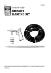 V1.1 9233057 Please read and understand all instructions before use. Retain this manual for future reference. 9233057 Siphon-Feed Abrasive Blasting Gun Kit V1.1 TABLE OF CONTENTS ................................................................................................................. ............................................................................................................................ ................................................................................................................ ...................................................................................................... ...................................................................... ........................................................................................ .................................................................................. .................................................................................................................... ................................................................................................... ............................................................................................. ..................................................................................................................... ................................................................................................... ...................................................................................................................... ........................................................................................................ ....................................................................................................... ................................................................................................................ ............................................................................................................. 2 For technical questions call 1-800-665-8685 V1.1 Siphon-Feed Abrasive Blasting Gun Kit 9233057 INTRODUCTION SAFETY WARNING! Read and understand all instructions before using this tool. The operator must follow basic precautions to reduce the risk of personal injury and/or damage to the equipment. HAZARD DEFINITIONS Visit www.princessauto.com for more information 3 9233057 Siphon-Feed Abrasive Blasting Gun Kit V1.1 WORK AREA PERSONAL SAFETY WARNING! Wear personal protective equipment approved by the Canadian Standards Association (CSA) or American National Standards Institute (ANSI). PERSONAL PROTECTIVE EQUIPMENT 4 For technical questions call 1-800-665-8685 V1.1 Siphon-Feed Abrasive Blasting Gun Kit 9233057 PERSONAL PRECAUTIONS SPECIFIC SAFETY PRECAUTIONS WARNING! DO NOT let comfort or familiarity with product (gained from repeated use) replace strict adherence to the tool safety rules. If you use this tool unsafely or incorrectly, you can suffer serious personal injury. Visit www.princessauto.com for more information 5 9233057 Siphon-Feed Abrasive Blasting Gun Kit V1.1 ABRASIVE BLASTING PRECAUTIONS DANGER! Do not use sand or silicate particulate dust as an abrasive. Sand or silica particulate dust can result in the lethal lung disease known as silicosis, when inhaled over a period of time as short as several weeks or as long as 5 to 10 years. Silicosis causes shortness of breath, cough, fever and bluish skin (cyanosis). Seek immediate medical attention if these symptoms appear. Silicosis can kill you if untreated. 6 For technical questions call 1-800-665-8685 V1.1 Siphon-Feed Abrasive Blasting Gun Kit 9233057 AIR TOOL PRECAUTIONS AIR HOSE PRECAUTIONS Visit www.princessauto.com for more information 7 9233057 Siphon-Feed Abrasive Blasting Gun Kit V1.1 COMPRESSOR/TANK PRECAUTIONS DANGER! Do not use an air tank beyond its expiration date. A tank rupture or explosion may kill or cause a serious injury to yourself or a bystander. Disable and discard the air tank according to the your municipality by-laws. UNPACKING WARNING! Do not operate the tool if any part is missing. Replace the missing part before operating. Failure to do so could result in a malfunction and personal injury. 8 For technical questions call 1-800-665-8685 V1.1 Siphon-Feed Abrasive Blasting Gun Kit 9233057 IDENTIFICATION KEY ASSEMBLY & INSTALLATION Visit www.princessauto.com for more information 9 9233057 Siphon-Feed Abrasive Blasting Gun Kit V1.1 SELECTING ABRASIVE MEDIA MATERIAL TYPES RECOMMENDED MEDIA NOT RECOMMENDED MEDIA 10 For technical questions call 1-800-665-8685 V1.1 Siphon-Feed Abrasive Blasting Gun Kit 9233057 OPERATION NOTICE! It is recommended that operation be tested on a sample workpiece ahead of time to ensure settings and results are as desired. CARE & MAINTENANCE WARNING! Before performing any maintenance, disconnect from the air source and discharge any residual pressure. Visit www.princessauto.com for more information 11 9233057 Siphon-Feed Abrasive Blasting Gun Kit V1.1 WARNING! Only qualified service personnel should repair the tool. An improperly repaired tool may present a hazard to the user and/or others. CLOGGING WEAR REPLACING THE NOZZLES STEEL NOZZLE JET NOZZLE 12 For technical questions call 1-800-665-8685 V1.1 Siphon-Feed Abrasive Blasting Gun Kit 9233057 CLEANING ABRASIVE SUPPLY HOSE DISPOSAL TROUBLESHOOTING Problem(s) Excessive dust while blasting Possible Cause(s) 1. Abrasive media may be worn 2. Suggested Solution(s) 1. Replace media 2. Tighten the fitting and make sure air lines are secure Loose air line or fitting connection Uneven blasting action Moisture is present while blasting Check air line to make sure no moisture is present Inadequate speed or inefficiency of blast 1. Abrasive media may be worn 1. Replace media 2. 2. Pressure too low 3. Worn nozzle Increase pressure while not exceeding max. pressure (see Specifications) 3. Replace nozzle Visit www.princessauto.com for more information 13 9233057 Siphon-Feed Abrasive Blasting Gun Kit V1.1 PARTS BREAKDOWN 14 Fo