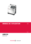 MANUEL DE L'UTILISATEUR FR Original ASM 310 Détecteur de fuites Exclusion de responsabilité Ce manuel de l’utilisateur décrit l’ensemble des modèles et variantes de votre produit. Veuillez noter qu’il est possible que votre produit ne dispose pas de toutes les caractéristiques d’équipement décrites dans ce document. Pfeiffer Vacuum adapte en permanence et sans avis préalable ses produits afin qu’ils soient à la fine pointe de la technologie. Veuillez prendre en compte qu’il y avoir des divergences entre le manuel de l’utilisateur en ligne et la manuel de l’utilisateur imprimé fourni avec votre produit. En outre, Pfeiffer Vacuum décline toute responsabilité ou obligation pour tout dommage résultant de l’utilisation du produit en contradiction avec son utilisation conforme à l’usage prévu ou en cas d’utilisation explicitement définie comme étant une mauvaise utilisation prévisible. Droits d’auteur (Copyright) Ce document est la propriété intellectuelle de Pfeiffer Vacuum et tous les contenus de ce document sont protégés par le droit d'auteur. Ils ne peuvent être copiés, modifiés, reproduits ou publiés sans l'autorisation écrite préalable de Pfeiffer Vacuum. Nous nous réservons le droit de modifier les données techniques et les informations contenues dans ce document. 2/108 Table des matières Table des matières 1 Au sujet de ce manuel 1.1 Validité 1.1.1 Produits concernés 1.1.2 Documents applicables 1.2 Groupe cible 1.3 Conventions 1.3.1 Pictogrammes 1.3.2 Instructions dans le texte 1.3.3 Etiquettes - Marquage 1.3.4 Abréviations 7 7 7 7 7 7 7 8 8 9 2 Sécurité 2.1 Information générale sur la sécurité 2.1.1 Consignes de sécurité 2.1.2 Précautions 2.2 Usage conforme à la destination 2.3 Utilisation non conforme prévisible 11 11 11 12 13 13 3 Transport et stockage 3.1 Réception du produit 3.2 Déballage/Emballage 3.3 Manutention 3.4 Transport 3.5 Stockage 14 14 14 16 17 18 4 Description du produit 4.1 Identification du produit 4.1.1 Contenu de la livraison 4.2 Interface de raccordement 4.3 Description du panneau de contrôle 19 19 19 19 20 5 Installation 5.1 Installation du détecteur 5.2 Raccordement de la purge et de l’entrée d’air 5.2.1 Equipement standard 5.2.2 Raccordement à une ligne de gaz neutre (purge) 5.3 Raccordement du refoulement 5.4 Raccordement électrique 5.5 Raccordement de la pièce/installation à tester 21 21 22 22 22 23 23 24 6 Mise en service 6.1 Démarrage du détecteur 6.2 Mise hors tension 25 25 25 7 Fonctionnement 7.1 Conditions d'utilisation 7.2 Conditions préalables pour optimiser l'utilisation 7.3 Surveillance de fonctionnement 7.4 Lancement/Arrêt d'un test 7.5 Calibration 7.5.1 Type de calibration 7.5.2 Calibration en test sous vide avec une fuite calibrée interne 7.5.3 Calibration en test sous vide avec une fuite calibrée externe 7.5.4 Calibration en test en reniflage avec une fuite calibrée externe 7.5.5 Calibration en test en reniflage sur concentration 7.6 Fonction Zéro 7.7 Ecran tactile 26 26 26 26 27 28 28 29 30 30 31 32 32 3/108 Table des matières 7.7.1 Navigation 7.7.2 Ecran principal (Home) 7.7.3 Ecran graphique 7.7.4 Ecran graphique : paramètres du graphe 7.7.5 Ecran graphique : enregistrement 7.7.6 Ecran graphique : historique du graphe 7.7.7 Ecran graphique : sauvegarde et effacement 7.7.8 Ecran graphique : visualisation 7.7.9 Détail d'une mesure 7.7.10Fonction zoom 7.7.11Barre de touches de fonction 4/108 33 34 35 38 39 39 40 41 42 43 44 8 Menu Réglages 8.1 Menu Mesure 8.1.1 Gaz traceur 8.1.2 Seuils 8.1.3 Facteur de correction 8.1.4 Paramétrage fuite calibrée 8.1.5 Valeur cible 8.2 Menu Test 8.2.1 Méthode de test 8.2.2 Mode de test 8.2.3 Type de sonde 8.2.4 Fin de cycle 8.2.5 Entrée d’air 8.2.6 Fonction Mémo 8.2.7 Activation du Zéro 8.2.8 Régénération 8.2.9 Mode Massive 8.2.10Contrôle de la calibration 8.2.11Fonction calibration 8.2.12Temporisation de démarrage 8.3 Menu Configuration 8.3.1 Unité - Date - Heure - Langue 8.3.2 Volume sonore 8.3.3 Touches de fonction 8.3.4 Réglages écran 8.3.5 Accès - Mot de passe 8.4 Menu Maintenance 8.4.1 Historique 8.4.2 Informations 8.4.3 Dernières opérations de maintenance 8.4.4 Compteurs avant prochaine maintenance 8.4.5 Maintenance pompe turbo et cellule 8.4.6 Burn-in 8.4.7 Calibration de la jauge Pirani interne 8.4.8 Sauvegarde et chargement des paramètres du détecteur 8.5 Menu Gestionnaire de fichiers 8.6 Menu Avancé 8.6.1 Entrée/Sortie 8.6.2 SAV 47 48 48 49 51 53 54 54 55 55 56 56 56 57 58 59 59 60 61 61 61 62 62 63 64 65 67 67 69 72 72 72 73 73 74 74 76 76 77 9 Guide de dépannage 78 10 Entretien/Remplacement 86 11 Accessoires 87 12 Caractéristiques techniques et dimensions 12.1 Généralités 88 88 Table des matières 12.2 12.3 12.4 12.5 13 Caractéristiques techniques Unités de pression Débits de gaz Dimensions 88 89 89 89 Annexes 13.1 Arborescence du menu Réglages 13.2 Interface de communication Entrées/Sorties 15 broches 13.2.1Caractéristiques du câble 13.2.2Interface 13.2.3Sauvegarde 13.2.4Paramétrage 13.2.5Formules 13.3 Liaison série RS-232 13.3.1Caractéristiques du câble 13.3.2Interface 13.3.3Paramètrage 90 90 100 100 101 101 101 102 103 104 104 104 Déclaration de conformité CE 106 5/108 Liste des tableaux Liste des tableaux Tab. 1: Tab. 2: Tab. 3: Tab. 4: Tab. 5: Tab. 6: Tab. 7: Tab. 8: Tab. 9: Tab. 10: 6/108 Unités de pression et leur conversion Débits de gaz et leur conversion Réglages initiaux : menu 'Mesure' Réglages initiaux : menu 'Test' Réglages initiaux : menu 'Configuration' Réglages initiaux : menu 'Maintenance' Réglages initiaux : menu 'Gestionnaire de fichiers' Réglages initiaux : menu 'Avancé' Réglages initiaux : Touche de fonction - [SWITCH SETPOINT] Réglages initiaux : Ecran graphique - Paramètres du graphe 89 89 91 93 96 98 99 99 99 100 Au sujet de ce manuel 1 Au sujet de ce manuel IMPORTANT À lire attentivement avant utilisation. Gardez le manuel pour 