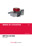 MANUEL DE L'UTILISATEUR FR Traduction d'original MVP 010-3 DC NEO Pompe à diaphragme Cher client, Nous vous remercions d’avoir opté pour un produit Pfeiffer Vacuum. Votre nouvelle pompe à membrane vous aidera pour votre application spécifique grâce à ses performances et à sonbon fonctionnement. La marque Pfeiffer Vacuum, synonyme de techniques du vide performantes, se décline en une gamme exhaustive et variée de produits de grande qualité, assortis d’un service client irréprochable. Forts de cette expérience pratique étendue, nous avons compilé une multitude d’informations qui peuvent contribuer à une implémentation efficace et à votre sécurité personnelle. Sachant que notre produit doit vous permettre d’éviter des arrêts de production coûteux, nous sommes confiants qu’il pourra vous offrir une solution pour une implémentation efficace et fiable de votre application individuelle. Veuillez lire ce mode d’emploi avant de mettre votre produit en service pour la première fois. Si vous avez des questions ou suggestions, n’hésitez pas à nous contacter par e-mail à l’adresse [email protected]. Vous trouverez d’autres modes d’emploi de Pfeiffer Vacuum dans le Centre de téléchargement sur notre site Internet. Exclusion de responsabilité Ce manuel de l’utilisateur décrit l’ensemble des modèles et variantes de votre produit. Veuillez noter qu’il est possible que votre produit ne dispose pas de toutes les caractéristiques d’équipement décrites dans ce document. Pfeiffer Vacuum adapte en permanence et sans avis préalable ses produits afin qu’ils soient à la fine pointe de la technologie. Veuillez prendre en compte qu’il y avoir des divergences entre le manuel de l’utilisateur en ligne et la manuel de l’utilisateur imprimé fourni avec votre produit. En outre, Pfeiffer Vacuum décline toute responsabilité ou obligation pour tout dommage résultant de l’utilisation du produit en contradiction avec son utilisation conforme à l’usage prévu ou en cas d’utilisation explicitement définie comme étant une mauvaise utilisation prévisible. Droits d’auteur (Copyright) Ce document est la propriété intellectuelle de Pfeiffer Vacuum et tous les contenus de ce document sont protégés par le droit d'auteur. Ils ne peuvent être copiés, modifiés, reproduits ou publiés sans l'autorisation écrite préalable de Pfeiffer Vacuum. Nous nous réservons le droit de modifier les données techniques et les informations contenues dans ce document. 2/62 Table des matières Table des matières 1 Au sujet de ce manuel 1.1 Validité 1.1.1 Documents applicables 1.1.2 Variantes 1.2 Groupe cible 1.3 Conventions 1.3.1 Instructions dans le texte 1.3.2 Pictogrammes 1.3.3 Étiquettes sur le produit 1.3.4 Abréviations 8 8 8 8 8 8 8 9 9 10 2 Sécurité 2.1 Information générale sur la sécurité 2.2 Consignes de sécurité 2.3 Mesures de sécurité 2.4 Limites d’utilisation du produit 2.5 Utilisation conforme à l’usage prévu 2.6 Utilisations non conformes prévisibles 2.7 Qualification personnelle 2.7.1 Garantissez la qualification du personnel 2.7.2 Qualification du personnel pour la maintenance et la réparation 2.7.3 Formation avancée avec Pfeiffer Vacuum 11 11 11 14 15 15 15 16 16 17 17 3 Description du produit 3.1 Fonction 3.1.1 Actionneur 3.1.2 Système de pompage 3.1.3 Refroidissement 3.1.4 Lest d’air 3.1.5 Capteur de pression 3.2 Raccordements 3.3 Identification du produit 3.4 Étendue de la livraison 18 18 18 18 18 18 19 19 19 19 4 Transport et stockage 4.1 Transport de la pompe à vide 4.2 Stockage de la pompe à vide 20 20 20 5 Installation 5.1 Installation de la pompe à vide 5.2 Raccordement côté vide 5.3 Raccordement du côté d’échappement 5.4 Raccordement électrique 5.4.1 Mise à la terre de la pompe à vide 5.4.2 Raccordement électrique 21 21 21 21 22 23 23 6 Interfaces 6.1 Interface « remote » 6.1.1 Alimentation de tension 6.1.2 Entrées 6.1.3 Sorties 6.1.4 RS-485 6.2 Interface RS-485 6.3 Interconnexion via raccordement RS-485 6.4 Protocole Pfeiffer Vacuum pour l’interface RS-485 6.4.1 Cadre télégramme 6.4.2 Description du télégramme 25 25 26 26 26 27 27 28 28 28 29 3/62 Table des matières 6.4.3 Télégramme exemple 1 6.4.4 Télégramme exemple 2 6.4.5 Data types 4/62 29 29 29 7 Ensemble de paramètres 7.1 Généralités 7.2 Instructions de réglage 7.3 Requêtes d’état 7.4 Entrées des valeurs de référence 31 31 31 32 33 8 Fonctionnement 8.1 Mise en service de la pompe à vide 8.2 Mettre en marche la pompe à vide 8.3 Fonctionnement de la pompe à membrane avec le lest d'air 8.4 Configuration des connexions avec le jeu de paramètres Pfeiffer Vacuum 8.4.1 Configuration des sorties numériques 8.4.2 Sélection des interfaces 8.4.3 Configuration des accessoires 8.5 Modes de fonctionnement 8.5.1 Fonctionnement normal 8.5.2 Mode standby 8.5.3 Mode de réglage de la vitesse de rotation 8.5.4 Commande de soupape de lest d’air 8.6 Détermination de la pression efficace avec des facteurs de correction 8.7 Surveillance des opérations 8.7.1 Affichage du mode de travail via diodes électroluminescentes 8.7.2 Surveillance de la température 8.8 Mise hors tension de la pompe à vide 35 35 35 36 36 37 37 37 38 38 39 39 39 40 41 41 42 42 9 Maintenance 9.1 Consignes de maintenance 9.2 Liste de contrôle pour les inspections et l’entretien 9.3 Remplacement des membranes et des vannes 9.3.1 Montage/démontage du tuyau flexible d’interconnexion 9.3.2 Démontage du chapeau de diaphragme et des vannes 9.3.3 Nettoyage et remplacement des diaphragmes et des vannes 9.3.4 Montage du chapeau de diaphragme et des vannes 43 43 44 45 45 46 46 47 10 Mise hors service 48 11 Recyclage et mise au rebut 11.1 Informations générales sur la mise au rebut 11.2 Mise au rebut des pompes à diaphragme 49 49 49 12 Dysfonctionnements 12.1 Généralités 12.2 Codes d’erreur 50 50 51 13 Solutions de service de Pfeiffer Vacuum 53 14 