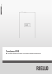 03/2020 cod. 20151303 rev. 4 Condexa PRO HU UTASÍTÁSOK A RENDSZER FELELŐSÉNEK, TELEPÍTŐJÉNEK ÉS MŰSZAKI SZERVIZSZOLGÁLAT TERMÉKKÍNÁLAT MODELL Condexa PRO 35 P Condexa PRO 50 P Condexa PRO 57 P Condexa PRO 70 P Condexa PRO 90 Condexa PRO 100 Condexa PRO 115 Condexa PRO 135 Kedves technikus, gratulálunk Önnek, hogy egy olyan R hőmodult talált, amely hosszú távon képes a maximális jó körülményeket biztosítani, nagyon megbízható, hatékony, kiváló minőségű és biztonságos. Ezzel a füzettel szeretnénk tájékoztatást adni Önnnek a szükségesnek ítélt információkról a készülék helyes és könnyebb telepítéséhez anélkül, hogy megkérdőjeleznénk technikai szaktudását és képességét. KÓD 20115221 20115222 20115223 20115224 20115225 20115226 20115228 20115229 Jó munkát, és köszönjük még egyszer. Riello S.p.A. MEGFELELŐSÉG A Condexa PRO hőmodulok megfelelnek az alábbiaknak: − 2016/426/EU rendelet − a hatásfok követelményről szóló 92/42/EGK irányelv és a 1993. augusztus 26-i Köztársasági Elnöki Rendelet, 412. sz. (****) − 2014/30/EU Elektromágneses Összeférhetőség Irányelv − 2014/35/EU Kisfeszültség Irányelv − 2009/125/EK sz. Energiát használó készülékek környezetbarát tervezése irányelv − 2017/1369/EU rendelet Energiacímkézés − A bizottság felhatalmazáson alapuló rendelete (EU) sz. 811/2013 − A bizottság felhatalmazáson alapuló rendelete (EU) sz. 813/2013 − EN 15502-1 Gáztüzelésű kazánok. 1. rész: Általános követelmények és vizsgálatok − EN 15502-2/1 A C típusú és a legfeljebb 1000 kW névleges bemenő hőterhelésű B2, B3 és B5 típusú kazánok egyedi előírásai − SSIGA gázirányelvek G1 − AICAA tűzvédelmi követelmények − CFST LPG irányelv 2. része − KÜLÖNBÖZŐ kantonális és önkormányzati követelmények a levegő minőségéről és az energiatakarékosságról. TARTOZÉKOK A tartozékok teljes listájához és a párosításukkal kapcsolatos információkhoz kérjük, nézze meg a Katalógus-t. A termék élettartamának végén nem kerülhet a városi hulladékba, hanem egy szelektív hulladékgyűjtéssel foglalkozó létesítménybe kell vinni. MAGYAR 2 TARTALOMJEGYZÉK 1 ÁLTALÁNOS TULAJDONSÁGOK . . . . . . . . . . . . . . . . . . . . . 4 1.1 1.2 1.3 1.4 1.5 1.6 1.7 1.8 1.9 1.10 1.11 3.1.3 Belépés jelszóval . . . . . . . . . . . . . . . . . . . . . . . . . . . . . . . . . . . . . . . 51 3.1.4 Állítsa be a fűtési paramétereket . . . . . . . . . . . . . . . . . . . . . . . . . . . 51 3.1.5 A használati meleg víz paraméterek beállítása . . . . . . . . . . . . . . . 54 3.1.6 Óránkénti program . . . . . . . . . . . . . . . . . . . . . . . . . . . . . . . . . . . . . . 55 3.1.7 Hőmodul információk . . . . . . . . . . . . . . . . . . . . . . . . . . . . . . . . . . . . 58 3.2 Ellenőrzések az első üzembe helyezés során és után . . . . . . . . 59 3.3 Hibajegyzék . . . . . . . . . . . . . . . . . . . . . . . . . . . . . . . . . . . . . . . . . . . . 60 3.3.1 Állandó hibák . . . . . . . . . . . . . . . . . . . . . . . . . . . . . . . . . . . . . . . . . . . 60 3.3.2 Ideiglenes hibák . . . . . . . . . . . . . . . . . . . . . . . . . . . . . . . . . . . . . . . . 61 3.3.3 Figyelmeztetések . . . . . . . . . . . . . . . . . . . . . . . . . . . . . . . . . . . . . . . 61 3.4 Átalakítás egyik gáztípusról a másikra . . . . . . . . . . . . . . . . . . . . . . 62 3.5 Beállítások . . . . . . . . . . . . . . . . . . . . . . . . . . . . . . . . . . . . . . . . . . . . . 65 3.6 Ideiglenes kikapcsolás vagy rövid időszakokra . . . . . . . . . . . . . . . 66 3.7 Kikapcsolás hosszabb időszakra . . . . . . . . . . . . . . . . . . . . . . . . . . 66 3.8 Kijelző kártyacsere . . . . . . . . . . . . . . . . . . . . . . . . . . . . . . . . . . . . . . 67 3.9 Ellenőrző kártyacsere . . . . . . . . . . . . . . . . . . . . . . . . . . . . . . . . . . . . 68 3.10 Karbantartás . . . . . . . . . . . . . . . . . . . . . . . . . . . . . . . . . . . . . . . . . . . 69 3.10.1 "Szerviz emlékeztető" funkció . . . . . . . . . . . . . . . . . . . . . . . . . . . . . 69 3.11 Belső alkatrészek tisztítása és szétszerelése . . . . . . . . . . . . . . . . 70 3.11.1 Kondenzürítő szifon tisztítása . . . . . . . . . . . . . . . . . . . . . . . . . . . . . 74 3.12 Esetleges rendellenességek és hibalehárítás . . . . . . . . . . . . . . . . 75 Általános figyelmeztetések . . . . . . . . . . . . . . . . . . . . . . . . . . . . . . . . 4 Alapvető biztonsági szabályok . . . . . . . . . . . . . . . . . . . . . . . . . . . . . 4 A készülék leírása . . . . . . . . . . . . . . . . . . . . . . . . . . . . . . . . . . . . . . . . 5 Biztonsági berendezések . . . . . . . . . . . . . . . . . . . . . . . . . . . . . . . . . . 5 Azonosítás . . . . . . . . . . . . . . . . . . . . . . . . . . . . . . . . . . . . . . . . . . . . . . 6 Szerkezet . . . . . . . . . . . . . . . . . . . . . . . . . . . . . . . . . . . . . . . . . . . . . . . 7 Műszai adatok . . . . . . . . . . . . . . . . . . . . . . . . . . . . . . . . . . . . . . . . . . 10 Keringtető szivattyúk . . . . . . . . . . . . . . . . . . . . . . . . . . . . . . . . . . . . . 12 Hidraulikus kör . . . . . . . . . . . . . . . . . . . . . . . . . . . . . . . . . . . . . . . . . . 13 Hőmérséklet-érzékelők elhelyezése . . . . . . . . . . . . . . . . . . . . . . . . 13 Kapcsolótábla . . . . . . . . . . . . . . . . . . . . . . . . . . . . . . . . . . . . . . . . . . 14 2 FELSZERELÉS . . . . . . . . . . . . . . . . . . . . . . . . . . . . . . . . . . . . . 15 2.1 A termék átvétele . . . . . . . . . . . . . . . . . . . . . . . . . . . . . . . . . . . . . . . 15 2.1.1 Címkék elhelyezése . . . . . . . . . . . . . . . . . . . . . . . . . . . . . . . . . . . . . 15 2.2 Méretek és súlyok . . . . . . . . . . . . . . . . . . . . . . . . . . . . 