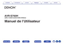 Connexions Lecture Réglages Conseils . Contents AVR-S760H AMPLI-TUNER AUDIO/VIDÉO RÉSEAU Manuel de l’Utilisateur Panneau avant Affichage Panneau arrière 1 Télécommande Index Annexe Contents Connexions Lecture Réglages 8 9 9 10 10 11 15 16 16 19 21 24 Accessories Insertion des piles Portée de la télécommande Caractéristiques Audio haute qualité Haute performance Fonctionnement aisé Nomenclature et fonctions Panneau avant Affichage Panneau arrière Télécommande Panneau avant Affichage Panneau arrière Annexe Connexion d’un téléviseur Connexion 1 : Téléviseur équipé d’une borne HDMI et compatible avec la fonction ARC (Audio Return Channel) / eARC (Enhanced Audio Return Channel) Connexion 2 : Téléviseur équipé d’une borne HDMI et incompatible avec la fonction ARC (Audio Return Channel) / eARC (Enhanced Audio Return Channel) Connexion 3 : Téléviseur non équipé d’une borne HDMI Connexion d’un dispositif de lecture Connexion d’un décodeur (Tuner satellite/TV par câble) Connexion d’un lecteur multimédia Connexion d’un lecteur Blu-ray Disc ou d’un lecteur DVD Connexion d’une console de jeu ou d’un appareil de lecture compatible avec le 8K Connexion d’une platine Connecter un dispositif mémoire USB au port USB Connexion d’antennes FM/AM Connexion à un réseau domestique (LAN) LAN filaire LAN sans fil Connexion du cordon d’alimentation Connexions Installation des enceintes Branchement enceintes Avant le branchement des enceintes Configuration de l’enceinte et paramétrages de l’“Affect.Amplis” Branchement d’enceintes 5.1 canaux Branchement d’enceintes 7.1 canaux Branchement d’enceintes multi-zones Conseils 28 35 35 39 40 41 47 2 Télécommande Index 48 49 50 51 52 53 54 55 56 57 58 59 61 61 62 63 Contents Connexions Lecture Réglages Lecture Utilisation basique Mise sous tension Sélection de la source d’entrée Réglage du volume Coupure temporaire du son (Sourdine) Lecture avec les lecteurs Blu-ray Disc/DVD Lecture du contenu d’un dispositif mémoire USB Lecture des fichiers d’un dispositif mémoire USB Écouter de la musique sur un périphérique Bluetooth Lecture de musique à partir d’un périphérique Bluetooth Appariement avec d’autres périphériques Bluetooth Reconnexion à cet appareil à partir d’un périphérique Bluetooth Écoute de l’audio avec un casque Bluetooth Écoute de l’audio avec un casque Bluetooth Reconnexion à un casque Bluetooth Déconnexion d’un casque Bluetooth Panneau avant Affichage Panneau arrière Conseils Annexe 78 Écoute de diffusion FM/AM 79 Écoute de diffusion FM/AM 81 Réglage par saisie de la fréquence (Accord direct) 81 Recherche RDS 82 Recherche PTY 83 Recherche TP 83 Texte Radio 84 Modification du mode de syntonisation (Mode d'accord) Réglage des stations et préréglage automatique des stations 84 (Préréglage auto) 85 Préréglage de la station radio actuelle (Mém.Préréglages) 85 Écoute des stations préréglées Saisie d’un nom pour la station émettrice préréglée (Nom préréglé) 86 87 Saut des stations radio préréglées (Passer prérégl.) 88 Annulation de Passer préréglage 89 Écoute de Radio Internet 90 Écoute de Radio Internet Lecture de fichiers stockés sur un ordinateur ou un stockage NAS 91 Lecture de fichiers stockés sur un ordinateur ou un stockage NAS 92 95 Obtenir HEOS App 96 Compte HEOS 97 Lecture depuis des services de diffusion de musique 100 Écouter la même musique dans plusieurs pièces 65 65 65 66 66 66 67 68 71 72 73 74 75 76 77 77 3 Télécommande Index Contents Connexions Lecture Réglages 104 Fonction AirPlay 105 Lecture de titres de votre iPhone, iPod touch ou iPad 105 Lecture de la musique iTunes avec cet appareil Lisez un morceau depuis votre iPhone, votre iPodtouch ou votre 106 iPad sur plusieurs appareils synchronisés (AirPlay 2) 107 Fonction Spotify Connect 107 Lecture de la musique Spotify avec cet appareil 108 Fonctions pratiques 109 Ajout des Favoris HEOS 109 Lecture des Favoris HEOS 110 Suppression des Favoris HEOS 110 Réglage de l’audibilité des dialogues et voix (Amélior. Dialogues) Ajuster le volume de chaque canal pour le faire correspondre à la 111 source d’entrée (Réglage niv. Canal) 112 Réglage du tonalité (Tonalité) 113 Réglage du retard audio (Délai audio) Affichage de la vidéo voulue lors de la lecture audio (Sélect.vidéo) 114 Lecture de la même musique dans toutes les zones (Stéréo tt 115 zones) Modification des paramètres d’enceinte pour les adapter à 116 l’environnement d’écoute (Présélection des HP) Panneau avant Affichage Panneau arrière Conseils Annexe Sélection d’un mode d’écoute Sélection d’un mode d’écoute Lecture directe Lecture surround auto Description des types de mode audio Mode son qui peut être sélectionné pour chaque signal d’entrée Fonction de contrôle HDMI Procédure de réglage Fonction de minuterie sommeil Utilisation de la minuterie sommeil Fonction de sélection rapide plus Solliciter le paramétrage Modification des réglages Fonction de verrouillage du panneau Désactivation de toutes les opérations de touche Désactivation de toutes les opérations de touche sauf VOLUME Annulation de la fonction de verrouillage du panneau Fonction de verrouillage à distance Désactivation de la fonction de capteur de la télécommande Activation de la fonction du capteur à distance Fonction de contrôle Internet Contrôle de l’appareil à partir d’un contrôle Web Lecture dans la ZONE2 (différente pièce) Connexion de ZONE2 Lecture dans ZONE2 4 Télécommande Index 117 118 119 120 121 125 130 130 131 132 133 134 135 137 137 137 138 139 139 139 140 140 142 142 143 Contents Connexions Lecture Réglages Réglages Panneau avant Affichage Panneau arrière Annexe Entrées Affect entrée Rennomer.Sources Masquer sources Niv.source Enceintes Conf. Audyssey® Procédure pour les réglages des enceintes (Conf. Audyssey®) Message d’er