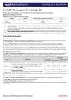 NOTICE D’UTILISATION VetMAX™ Toxinogenic P. multocida Kit PCR temps réel TaqMan® pour la détection de Pasteurella multocida toxinogène Référence Catalogue PMTP50 Partie Nº 100020410 Pub. Nº MAN0008845 Rév. B.0 Technique Espèce(s) Acides nucléiques isolés à partir des matrices Test PCR temps réel (ADN) – Duplex – IPC endogène Porcins Ecouvillons nasaux et amygdaliens Colonies Poumons Individuel AVERTISSEMENT ! Lire les fiches de données de sécurité (FDS) et suivre les consignes de manipulation. Porter des lunettes de sécurité, des gants et des vêtements appropriés. Les fiches de données de sécurité (FDS) sont disponibles à l’adresse thermofisher.com/support. AVERTISSEMENT ! RISQUES BIOLOGIQUES POTENTIELS. Lire les informations de sécurité relatives aux risques biologiques du produit disponibles sur thermofisher.com. Porter des lunettes de sécurité, des gants et des vêtements appropriés. Informations sur le produit Description du produit Applied Biosystems™ VetMAX™ Toxinogenic P. multocida Kit est un outil de diagnostic moléculaire permettant la détection des souches toxinogènes de Pasteurella multocida par la méthode de PCR en temps réel. Chaque échantillon d’ADN obtenu après extraction est analysé en monocupule : la même cupule est utilisée pour la détection spécifique de l’ADN bactérien des souches toxinogènes de Pasteurella multocida et pour la détection d’un IPC (Internal Positive Control). La positivité de l’IPC traduit à la fois l’efficacité de l’extraction et l’absence d’inhibiteur dans les échantillons. Il est utilisable sur ADN bactériens extraits à partir d’écouvillons nasaux et amygdaliens, de colonies bactériennes et de poumons. Les protocoles complets d’extractions des ADN bactériens à partir de ces matrices sont disponibles sur demande au Support Technique. Réactifs du kit et conservation Le VetMAX™ Toxinogenic P. multocida Kit se présente sous la forme d’un coffret contenant les différents réactifs pour la détection en duplex de Pasteurella multocida toxinogène et d’un contrôle interne IPC. À réception, le kit doit être conservé dans sa totalité entre −30°C et −10°C. Après première utilisation d’un composant, le conserver selon les recommandations suivantes : Conservation Volume (50 réactions) A réception Après première utilisation 3 - Mix PMT (Tube vert) Mix pour PCR TaqMan®. Contient : • Le système de détection pour la cible Pasteurella multocida toxinogène, comprenant une sonde TaqMan® marquée FAM™ – TAMRA™. • Le système de détection pour l’IPC, comprenant une sonde TaqMan® marquée VIC™ – TAMRA™. • Le tampon et l’enzyme de PCR temps réel. 2 × 500 µL −30°C à −10°C 2°C à 8°C 4a – EPC PMT (Tube marron) External Positive Control : Contrôle positif en Pasteurella multocida. Il s’agit d’acides nucléiques déjà extraits à amplifier lors de la PCR temps réel. 90 µL −30°C à −10°C −30°C à −10°C Article Description Témoins d’extraction et d’amplification Le VetMAX™ Toxinogenic P. multocida Kit contient 1 témoin permettant la validation de l’amplification des ADN bactériens : 4a - EPC PMT : contrôle positif en Pasteurella multocida toxinogène Contrôle positif déjà extrait à amplifier lors de la PCR temps réel. Un résultat positif compris dans l’intervalle accepté de Ct permet de valider l’amplification de la cible Pasteurella multocida toxinogène par PCR temps réel. Réservé à l’usage vétérinaire. Usage in vitro exclusivement. La validation de l’extraction des acides nucléiques pour chaque échantillon s’effectue grâce à la détection d’un IPC endogène (Internal Positive Control), présent dans chaque échantillon. Un résultat IPC positif avec une valeur comprise dans l’intervalle accepté de Ct dans un échantillon permet de valider l’extraction de cet échantillon qu’il soit positif ou négatif pour le pathogène recherché : élimination des faux négatifs et vérification de l’effet des inhibiteurs. Il est recommandé de réaliser deux contrôles négatifs pour valider le bon déroulement de l’analyse : NCS : contrôle négatif d’extraction C’est un témoin composé des réactifs utilisés lors de l’extraction, sans ajout d’échantillon (le volume d’échantillon peut être remplacé par le tampon utilisé lors de la préparation des échantillons ou par de l’eau DNase/RNase-free), qui subit le même traitement que les échantillons : extraction des acides nucléiques puis PCR temps réel. Un résultat négatif en Pasteurella multocida toxinogène et en IPC endogène permet de valider l’absence de contamination au cours de l’extraction et de la PCR temps réel. NC : contrôle négatif d’amplification Il s’agit du mix d’amplification déposé dans la plaque au moment de la préparation de la PCR temps réel, complété de 5 µL d’eau DNase/RNase-free pour ajuster la réaction à 25 µL. Un résultat négatif pour Pasteurella multocida toxinogène et IPC permet de valider l’absence de contamination au cours de la préparation des réactions pour la PCR temps réel. Matériel et réactifs requis pour la PCR temps réel non fournis dans le kit Sauf indication contraire, tous les produits sont disponibles sur thermofisher.com. • Micropipettes de précision (gamme de 1 µL à 1000 µL) avec pointes DNase/RNase-free à filtre • Eau DNase/RNase-free • Tampon TE 1X • Tampon PBS 1X • Un thermocycleur de PCR temps réel capable de détecter les fluorophores suivants : – FAM™ (maximum d’émission : λ515 nm) – VIC™ (maximum d’émission : λ554 nm) • Consommables de qualité optique compatibles avec le thermocycleur utilisé : – – Plaques PCR 96 puits, barrettes PCR (8 ou 12 puits), microtubes ou capillaires Films ou bouchons adaptés à la fermeture Procédure d’analyse Le volume réactionnel d
