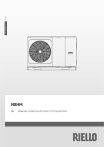 06/2022 cod. 20192830 rev. 0 NXHM FR MANUEL D'INSTALLATION ET D'UTILISATION Gamme Description Code A2WHPR32M/004 20191936 A2WHPR32M/006 Description RIELLO Puissance NXHM 004 4kW 20191940 NXHM 006 6kW A2WHPR32M/008 20191942 NXHM 008 8kW A2WHPR32M/010 20191943 NXHM 010 10kW A2WHPR32M/012 20191944 NXHM 012 12kW A2WHPR32M/014 20191945 NXHM 014 14kW A2WHPR32M/016 20191946 NXHM 016 16kW A2WHPR32M/012T 20191947 NXHM 012T 12kW T A2WHPR32M/014T 20191948 NXHM 014T 14kW T A2WHPR32M/016T 20191949 NXHM 016T 16kW T 1 PRÉCAUTIONS DE SÉCURITÉ 5 2 DESCRIPTION PLAQUE SIGNALÉTIQUE 5 3 INTRODUCTION GÉNÉRALE 8 4.1 4.2 Accessoires fournis avec l’unité Accessoires disponibles auprès du fournisseur ACCESSOIRES 9 5 AVANT L’INSTALLATION 9 6 INFORMATIONS IMPORTANTES SUR LE FLUIDE FRIGORIGÈNE 10 LIEU D’INSTALLATION 10 PRÉCAUTIONS D’INSTALLATION 12 7 7.1 7.2 8 8.1 8.2 8.3 8.4 9 Sélection d’un emplacement dans les climats froids Sélection d’un emplacement dans les climats chauds Dimensions Exigences d’installation Position du trou de vidange Espace requis pour l’entretien 9 9 11 11 12 12 12 13 9.1 9.2 9.3 9.4 Application 1 Application 2 Système parallèle Volume nécessaire pour le stockage inertiel EXEMPLES TYPIQUES D’APPLICATION 14 10 APERÇU DE L’UNITÉ 20 11 DÉMARRAGE ET CONFIGURATION 45 10.1 Démontage de l’unité 10.2 Composants principaux 10.3 Boîtier de commande électronique 10.4 Tuyau d’eau 10.5 Remplissage d’eau 10.6 Isolation des tuyaux d’eau 10.7 Câblage sur place 11.1 Aperçu des réglages des commutateurs DIP 11.2 Premier démarrage à basses températures ambiantes extérieures 11.3 Contrôles avant utilisation 11.4 Pompe de circulation 11.5 Réglages 14 16 19 20 20 21 22 30 32 32 32 45 45 45 46 47 12 MODE TEST ET CONTRÔLES FINAUX 56 13 ENTRETIEN ET SERVICE 56 14 DÉPANNAGE 57 12.1 Contrôles finaux 12.2 Essai de fonctionnement (manuel) 14.1 Consignes générales 14.2 Symptômes généraux 14.3 Paramètres de fonctionnement 14.4 Codes d’erreur 15 SPÉCIFICATIONS TECHNIQUES 15.1 Général 15.2 Données techniques 15.3 Performances basées sur la zone climatique 15.4 Spécifications techniques électriques 16 INFORMATIONS D’ENTRETIEN FRANÇAIS 4 La déclaration de conformité du produit est consultable et téléchargeable sur le site. Reportez-vous aux instructions au dos de la couverture du manuel. REMARQUE IMPORTANTE Merci d’avoir acheté l’un de nos produits. Avant d’utiliser l’appareil, lire attentivement ce manuel et le conserver pour une utilisation future. 56 56 57 57 58 59 Gamme 64 Code 64 64 65 67 67 3 Description Puissance 20191845 A2WHPR32M/004 4 kW 20191846 A2WHPR32M/006 6 kW 20191847 A2WHPR32M/008 8 kW 20191848 A2WHPR32M/010 10 kW FRANÇAIS 4/6 kW 8/10/12/14/16 kW Disposition interne: 12~16 kW (triphasé) par exemple 4/6 kW Système de commande électrique Bornier Système hydraulique Système de refroidissement 8/10/12/14/16 kW Retirer l’élément de protection après l’installation Éliminer le support de transport 12/14/16 kW REMARQUE Les images de ce manuel sont fournies à titre indicatif uniquement. Se référer au produit réel. Unité Capacité du réchauffeur de réserve Monophasée Triphasée 10 12 14 16 12 14 3 kW (monophasé) ou 9 kW (triphasé) Réchauffeur de réserve (en option) L’unité de série est sans réchauffeur de réserve. 4 6 3 kW (monophasé) 8 4 16 1 PRÉCAUTIONS DE SÉCURITÉ Les précautions énumérées ici sont divisées selon les types suivants. Elles sont très importantes, il faut donc les suivre attentivement. La signification des symboles DANGER, AVERTISSEMENT, ATTENTION et REMARQUE est expliquée ci-dessous. FRANÇAIS INFORMATIONS Lire attentivement ces instructions avant l’installation. Garder ce manuel à portée de main pour référence future. Une installation incorrecte de l’appareil ou des accessoires peut provoquer un choc électrique, un court-circuit, une fuite, un incendie ou d’autres dommages à l’appareil. Veiller à n’utiliser que des accessoires fabriqués par le fournisseur qui sont spécifiquement conçus pour l’appareil et à faire effectuer l’installation par un professionnel. Toutes les activités décrites dans ce manuel doivent être effectuées par un technicien agréé. Lors de l’installation de l’unité ou de l’exécution d’activités d’entretien, veiller à porter des équipements de protection individuelle appropriés, tel que des gants et des lunettes de sécurité. Contacter le revendeur pour tout type d’assistance. Risque d’incendie/ matières inflammables b AVERTISSEMENT: L’entretien ne doit être effectué que conformément aux instructions fournies par le fabricant de l’appareil. b b b L’entretien et les réparations qui nécessitent l’assistance d’autres personnes qualifiées doivent être effectués sous la supervision de la personne compétente pour l’utilisation de fluides frigorigènes inflammables. DANGER: Indique une situation dangereuse imminente qui, si elle n’est pas évitée, entraînera des blessures graves, voire la mort. AVERTISSEMENT: Indique une situation potentiellement dangereuse qui, si elle n’est pas évitée, peut entraîner des blessures graves, voire la mort. ATTENTION: Indique une situation potentiellement dangereuse qui, si elle n’est pas évitée, peut entraîner des blessures légères ou modérées. Il est également utilisé pour avertir des pratiques dangereuses. REMARQUE: Indique des situations qui pourraient causer des dommages à l’appareil ou aux biens uniquement. Explication des symboles affichés sur le monobloc Ce symbole indique que l’appareil en question a utilisé un fluide frigorigène inflammable. Si le fluide AVERTISSEMENT frigorigène a fui et a été exposé à une source d’inflammation externe, il existe un risque d’incendie. ATTENTION ATTENTION ATTENTION Ce symbole indique que le manuel d’utilisation doit être lu attentivement. Ce symbole indique que le perso