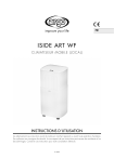 FR ISIDE ART WF C L I MAT I S E U R M O B I LE ( LO CA L) INSTRUCTIONS D’UTILISATION Lire attentivement ces instructions avant de mettre en marche l’appareil ou avant toute opération d’entretien. Se conformer aux consignes de sécurité. Le non-respect de ces instructions peut causer des accidents et/ou des dommages. Conserver ces instructions pour toute consultation ultérieure. V 12/24 L’appareil est chargé d’un gaz inflammable R290. Avant d’installer et utiliser l’appareil, lisez le manuel de l’operateur. Avant d’installer l’appareil, lisez le manuel d’installation. Pour toute réparation, contacter toujours un centre d’assistance et suivre à la lettre à ce qui est contenu dans le manuel de service. LE RÉFRIGÉRANT R290 • • A fin de remplir ses fonctions, le climatiseur a un circuit frigorifique interne où circule un liquide réfrigérant écologique R290 = 3 GWP (Potentiel de réchauffement de la planète). C’est un réfrigérant inflammable et sans odeur, avec d’excellentes propriétés thermodynamiques qui offrent une haute efficacité énergétique. Attention: Compte tenu de l’inflammabilité de ce réfrigérant, il est recommandé de suivre scrupuleusement les consignes de sécurité indiquées dans ce manuel. Ne pas tenter d’accélérer le dégivrage et respecter les recommandations pour nettoyage de l’appareil. Respecter scrupuleusement les instructions du fabricant pour les réparations: toujours contacter un centre d’assistance authorizé. Toutes les réparations effectuées par un personnel non qualifié pourraient être dangereuses. L’appareil doit être installé et stocké dans une pièce où aucune flamme nue n’est présente en permanence (par exemple : flammes nues, un appareil à gaz en marche ou un poêle électrique en marche). Ne pas percer ou brûler l’appareil. L’appareil doit être installé, utilisé et stocké dans un local dont la surface au plancher est supérieure à 9 m2 car l’appareil contient un gaz inflammable R290. Attention, les réfrigérants n’ont aucune odeur. V 12/24 44 INFORMATIONS GÉNÉRALES SUR LE FONCTIONNEMENT ET SUR LA SÉCURITÉ • Cet appareil est un climatiseur local, conçu pour un usage exclusivement domestique • Utiliser ce climatiseur uniquement comme décrit dans cette notice d’utilisation. • S’assurer que le type d’alimentation électrique est conforme à la tension • requise (250V~/50 Hz). • Style de Fusible 4T, 31TC, 334, L3CT, 4F ou RTI-10, l’électricité passant par le fusible ne peut pas être susdit 2A ou 3,15A. • Cet appareil n’est pas prévu pour être utilisé par des enfants âgés de moins de 8 ans et par personnes dont les capacités physiques, sensorielles ou mentales sont réduites, ou des personnes dénuées d’expérience ou de connaissance, sauf si elles ont pu bénéficier d’une surveillance ou après avoir reçu des instructions concernates l’utilisation sûre de l’appareil et à la compréhension des dangers inhérents. • Les enfants ne devraient pas jouer avec l’appareil. • Le nettoyage et l’entretien destinés à être effectuée par l’utilisateur ne doit pas être effectué par des enfants sans surveillance. • Vérifier que l’installation électrique est en mesure de fournir le courant nécessaire au fonctionnement du climatiseur, en plus du courant normalement absorbé par les autres appareils du domicile (appareils électroménagers, éclairage). Se reporter aux données d’absorption maximale indiquées sur la plaque signalétique du climatiseur. • Le raccordement au réseau électrique doit être effectué conformément aux normes d’installation en vigueur. • Vérifier que les disjoncteurs automatiques et les soupapes de protection de l’installation sont en mesure de supporter un courant initial de démarrage de 6 A (normalement pendant une durée inférieure à 1 seconde). • La prise de l’installation doit toujours être équipée d’une mise à la terre efficace. • S’assurer que la fiche est bien insérée à fond dans la prise. Ne pas utiliser de prise multiple. Ne pas toucher la fiche avec les mains mouillées. S’assurer que la fiche est propre. • Ne pas utiliser la fiche d’alimentation pour allumer/éteindre le climatiseur: utiliser la touche ON/OFF de la télécommande ou du V 12/24 45 panneau de commande. • Éviter d’installer le climatiseur dans des pièces où il risquerait d’être aspergé par de l’eau (ex: buanderies). • Avant d’effectuer toute opération de déplacement ou de nettoyage de l’appareil, vérifier que la fiche d’alimentation est débranchée de la prise de courant. • Ne pas déplacer le climatiseur lorsque celui-ci est en marche ; éteindre tout d’abord l’appareil, puis contrôler le réservoir de collecte de la condensation et le vider éventuellement. • Pour déconnecter l’appareil, placer la télécommande sur OFF et débrancher la fiche de la prise. Tirer uniquement sur la fiche. Ne pas tirer sur le cordon. • Ne pas utiliser l’appareil si le câble ou la fiche sont endommagés. Si le câble d’alimentation est endommagé, il doit être remplacé par le fabricant ou son service d’assistance technique ou en tout cas par une personne de qualification similaire, afin d’éviter tout risque. • L’appareil doit être installé conformément aux réglementations nationales en matière de câblage. • Tenez l’unité loin du feu, des sources de feu possibles, des objets inflammables ou explosifs. • Ne laissent pas l’unité sans surveillance tandis qu’il fonctionne, éteindre l’unité et le déconnecter. • Si le tuyau de drainage est utilisé, la température ambiante ne doit pas être inférieure à 0 °C. Il peut causer la fuite d’eau au climatiseur. • Ne pas éclabousser ou verser de l’eau sur le climatiseur. PRUDENCE! • Ne pas insérer d’objets dans le climatiseur : cela peut s’avérer très dangereu