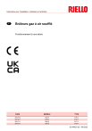 Instructions pour l’installation, l’utilisation et l’entretien F Brûleurs gaz à air soufflé Fonctionnement à une allure CODE MODÈLE TYPE 3751918 3751617 3751717 3751817 GAS 3 GAS 4 GAS 5 GAS 6 519 T1 516 T1 517 T1 518 T1 20144820 (6) - 06/2022 Traduction des instructions d’origine Index 1 Déclarations................................................................................................................................................................................ 3 2 Informations et avertissements généraux ............................................................................................................................... 4 3 4 5 6 2.1 2.1.1 2.1.2 2.1.3 2.1.4 Informations sur le manuel d’instructions .................................................................................................................... 4 Introduction.................................................................................................................................................................. 4 Dangers génériques .................................................................................................................................................... 4 Autres symboles.......................................................................................................................................................... 4 Livraison de l’équipement et du manuel d’instructions correspondant........................................................................ 5 2.2 Garantie et responsabilité ........................................................................................................................................... 5 Sécurité et prévention................................................................................................................................................................ 6 3.1 Avant propos ............................................................................................................................................................... 6 3.2 Formation du personnel .............................................................................................................................................. 6 Description technique du brûleur............................................................................................................................................. 7 4.1 Modèles disponibles.................................................................................................................................................... 7 4.2 Catégories du brûleur - pays de destination................................................................................................................ 7 4.3 Données techniques.................................................................................................................................................... 7 4.4 Données électriques.................................................................................................................................................... 8 4.5 Dimensions d’encombrement...................................................................................................................................... 8 4.6 Materiel fourni.............................................................................................................................................................. 8 4.7 Plages de travail.......................................................................................................................................................... 9 4.8 4.8.1 Chaudière d’essai...................................................................................................................................................... 10 Chaudières commerciales......................................................................................................................................... 10 4.9 Description du brûleur ............................................................................................................................................... 11 4.10 Boîte de contrôle RMG88.......................................................................................................................................... 12 Installation ................................................................................................................................................................................ 13 5.1 Indications concernant la sécurité pour l’installation ................................................................................................. 13 5.2 Manutention............................................................................................................................................................... 13 5.3 Contrôles préliminaires.............................................................................................................................................. 13 5.4 Position de fonctionnement ....................................................................................................................................... 14 5.5 5.5.1 5.5.2 5.5.3 Préparation de la chaudière ...................................................................................................................................... 14 Perçage de la plaque chaudière................................................................................................................................ 14 Longueur de la buse.................................................................................................................................................. 14 Fixation du brûleur à la chaudière ............................................................................................................................. 15 5.6 Positionnement sonde-électrode..........................................................
