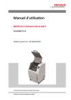 Manuel d'utilisation BROYEUR À DISQUES OSCILLANTS PULVERISETTE 9 Valable à partir de : 09.500x/00229 Lire les instructions avant de commencer tout travail ! Traduction du manuel d'utilisation d'origine Fritsch GmbH Broyage et Granulométrie Industriestraße 8 D - 55743 Idar - Oberstein Téléphone : +49 6784 70-0 Courriel : [email protected] Internet : www.fritsch-france.fr Édition 01/2024 indice 007 Certifications et conformité CE Certifications et conformité CE Certification Fritsch GmbH a été certifiée par SGS-TÜV Saar GmbH. Un audit a établi que la société Fritsch GmbH satisfait aux exigences de la norme DIN EN ISO 9001:2015. Conformité CE La déclaration de conformité jointe décrit les directives auxquelles l'appareil FRITSCH répond afin qu'il soit dûment autorisé à porter le sigle de conformité CE. 3 Table des matières Table des matières 1 Structure. . . . . . . . . . . . . . . . . . . . . . . . . . . . . . . . . . . . . . . . . . . . . . . . . . . 6 2 Consignes de sécurité et utilisation. . . . . . . . . . . . . . . . . . . . . . . . . . . . . . 7 2.1 Exigences vis-à-vis de l'utilisateur. . . . . . . . . . . . . . . . . . . . . . . . . . . . . . . . 7 2.2 Utilisation conforme. . . . . . . . . . . . . . . . . . . . . . . . . . . . . . . . . . . . . . . . . . . 8 2.2.1 Fonctionnement. . . . . . . . . . . . . . . . . . . . . . . . . . . . . . . . . . . . . . . . . . . . 9 2.3 Devoirs de l'exploitant. . . . . . . . . . . . . . . . . . . . . . . . . . . . . . . . . . . . . . . . . 9 2.4 Mentions de danger et symboles utilisés. . . . . . . . . . . . . . . . . . . . . . . . . . 10 2.5 Consigne pour la sécurité de l'appareil. . . . . . . . . . . . . . . . . . . . . . . . . . . 12 2.6 Dispositifs de protection. . . . . . . . . . . . . . . . . . . . . . . . . . . . . . . . . . . . . . . 13 2.6.1 Possibilités d'ouverture du capot (1). . . . . . . . . . . . . . . . . . . . . . . . . . . 14 2.7 Endroits dangereux. . . . . . . . . . . . . . . . . . . . . . . . . . . . . . . . . . . . . . . . . . . 15 2.8 Sécurité électrique. . . . . . . . . . . . . . . . . . . . . . . . . . . . . . . . . . . . . . . . . . . . 15 2.8.1 Généralités. . . . . . . . . . . . . . . . . . . . . . . . . . . . . . . . . . . . . . . . . . . . . . . . 15 2.8.2 Protection contre le redémarrage. . . . . . . . . . . . . . . . . . . . . . . . . . . . . 15 2.8.3 Protection en cas de surcharge. . . . . . . . . . . . . . . . . . . . . . . . . . . . . . . . 15 Caractéristiques techniques. . . . . . . . . . . . . . . . . . . . . . . . . . . . . . . . . . . . 16 3.1 Dimensions. . . . . . . . . . . . . . . . . . . . . . . . . . . . . . . . . . . . . . . . . . . . . . . . . . 16 3.2 Poids. . . . . . . . . . . . . . . . . . . . . . . . . . . . . . . . . . . . . . . . . . . . . . . . . . . . . . . 16 3.3 Bruit de fonctionnement. . . . . . . . . . . . . . . . . . . . . . . . . . . . . . . . . . . . . . . 16 3.4 Tension. . . . . . . . . . . . . . . . . . . . . . . . . . . . . . . . . . . . . . . . . . . . . . . . . . . . . 16 3.5 Intensité absorbée. . . . . . . . . . . . . . . . . . . . . . . . . . . . . . . . . . . . . . . . . . . . 16 3.6 Degré de protection. . . . . . . . . . . . . . . . . . . . . . . . . . . . . . . . . . . . . . . . . . . 16 3.7 Puissance absorbée. . . . . . . . . . . . . . . . . . . . . . . . . . . . . . . . . . . . . . . . . . . 16 3.8 Fusibles électriques dans l'appareil de commande. . . . . . . . . . . . . . . . . . 17 3.9 Matériau. . . . . . . . . . . . . . . . . . . . . . . . . . . . . . . . . . . . . . . . . . . . . . . . . . . . 17 3.10 Granulométrie finale. . . . . . . . . . . . . . . . . . . . . . . . . . . . . . . . . . . . . . . . . . 17 Installation. . . . . . . . . . . . . . . . . . . . . . . . . . . . . . . . . . . . . . . . . . . . . . . . . . 18 4.1 Transport. . . . . . . . . . . . . . . . . . . . . . . . . . . . . . . . . . . . . . . . . . . . . . . . . . . . 18 4.2 Déballage. . . . . . . . . . . . . . . . . . . . . . . . . . . . . . . . . . . . . . . . . . . . . . . . . . . 18 4.3 Mise en place. . . . . . . . . . . . . . . . . . . . . . . . . . . . . . . . . . . . . . . . . . . . . . . . 18 4.4 Sécurité pour le transport. . . . . . . . . . . . . . . . . . . . . . . . . . . . . . . . . . . . . . 19 4.5 Conditions ambiantes. . . . . . . . . . . . . . . . . . . . . . . . . . . . . . . . . . . . . . . . . 20 4.6 Raccordement électrique. . . . . . . . . . . . . . . . . . . . . . . . . . . . . . . . . . . . . . 20 Mise en service. . . . . . . . . . . . . . . . . . . . . . . . . . . . . . . . . . . . . . . . . . . . . . 22 5.1 Mise en marche. . . . . . . . . . . . . . . . . . . . . . . . . . . . . . . . . . . . . . . . . . . . . . 22 5.2 Test de fonctionnement. . . . . . . . . . . . . . . . . . . . . . . . . . . . . . . . . . . . . . . . 22 5.3 Mise à l'arrêt. . . . . . . . . . . . . . . . . . . . . . . . . . . . . . . . . . . . . . . . . . . . . . . . . 22 3 4 5 4 Table des matières 6 Travailler avec l'appareil. . . . . . . . . . . . . . . . . . . . . . . . . . . . . . . . . . . . . . . 23 6.1 Préparation d'un broyage. . . . . . . . . . . . . . . . . . . . . . . . . . . . . . . . . . . . . . 24 6.1.1 Garnitures de broyage. . . . . . . . . . . . . . . . . . . . . . . . . . . . . . . . . . . . . . . 24 6.1.2 Broyage par voie sèche. . . . . . . . . . . . . . . . . . . . . . . . . . . . . . . . . . . . . . 24 6.1.3 Broyage par voie humide (broyage dans une suspension). . . . . . . . . . 25 6.1.4 Remplissage de la garniture de broyage. . . . . . . . . . . . . . . . . . . . . . . . 25 6.1.5 Utilisation de la garniture de broyage. . . . . . . . . . . . . . . . . . . . . . . . . . 26 6.1.6 Blocage de la garniture de broyage. . . . . . . . . . . . . . . . . . . . . . . . . . . . 26 6.2 Menu. . . . . . . . . . . . . . . . . . . . . . . . . . . . . . . . . . . . . . . . . . . . . . . . . . . . . . . 29 6.2.1 Appel / Enregistrement d'un programme. . . . . . . . . 