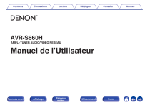 Connexions Lecture Réglages Conseils . Contents AVR-S660H AMPLI-TUNER AUDIO/VIDÉO RÉSEAU Manuel de l’Utilisateur Panneau avant Affichage Panneau arrière 1 Télécommande Index Annexe Contents Connexions Lecture Réglages 8 9 9 10 10 10 14 15 15 18 20 23 Accessories Insertion des piles Portée de la télécommande Caractéristiques Audio haute qualité Haute performance Fonctionnement aisé Nomenclature et fonctions Panneau avant Affichage Panneau arrière Télécommande Panneau avant Affichage 27 29 29 32 Panneau arrière Annexe Connexion d’un téléviseur Connexion 1 : Téléviseur équipé d’une borne HDMI et compatible avec la fonction ARC (Audio Return Channel) / eARC (Enhanced Audio Return Channel) Connexion 2 : Téléviseur équipé d’une borne HDMI et incompatible avec la fonction ARC (Audio Return Channel) / eARC (Enhanced Audio Return Channel) Connexion 3 : Téléviseur non équipé d’une borne HDMI Connexion d’un dispositif de lecture Connexion d’un décodeur (Tuner satellite/TV par câble) Connexion d’un lecteur multimédia Connexion d’un lecteur Blu-ray Disc ou d’un lecteur DVD Connexion d’une console de jeu ou d’un appareil de lecture compatible avec le 8K Connexion d’une platine Connecter un dispositif mémoire USB au port USB Connexion d’antennes FM/AM Connexion à un réseau domestique (LAN) LAN filaire LAN sans fil Connexion du cordon d’alimentation Connexions Installation des enceintes Branchement enceintes Avant le branchement des enceintes Connexion standard Conseils 2 Télécommande Index 33 34 35 36 37 38 39 40 41 42 43 44 46 46 47 48 Contents Connexions Lecture Réglages Lecture Utilisation basique Mise sous tension Sélection de la source d’entrée Réglage du volume Coupure temporaire du son (Sourdine) Lecture avec les lecteurs Blu-ray Disc/DVD Lecture du contenu d’un dispositif mémoire USB Lecture des fichiers d’un dispositif mémoire USB Écouter de la musique sur un périphérique Bluetooth Lecture de musique à partir d’un périphérique Bluetooth Appariement avec d’autres périphériques Bluetooth Reconnexion à cet appareil à partir d’un périphérique Bluetooth Écoute de l’audio avec un casque Bluetooth Écoute de l’audio avec un casque Bluetooth Reconnexion à un casque Bluetooth Déconnexion d’un casque Bluetooth Panneau avant Affichage Panneau arrière Conseils Annexe Écoute de diffusion FM/AM Écoute de diffusion FM/AM Réglage par saisie de la fréquence (Accord direct) Recherche RDS Recherche PTY Recherche TP Texte Radio Modification du mode de syntonisation (Mode d'accord) Réglage des stations et préréglage automatique des stations (Préréglage auto) Préréglage de la station radio actuelle (Mém.Préréglages) Écoute des stations préréglées Saisie d’un nom pour la station émettrice préréglée (Nom préréglé) Saut des stations radio préréglées (Passer prérégl.) Annulation de Passer préréglage Écoute de Radio Internet Écoute de Radio Internet Lecture de fichiers stockés sur un ordinateur ou un stockage NAS Lecture de fichiers stockés sur un ordinateur ou un stockage NAS Obtenir HEOS App Compte HEOS Lecture depuis des services de diffusion de musique Écouter la même musique dans plusieurs pièces 50 50 50 51 51 51 52 53 56 57 58 59 60 61 62 62 3 Télécommande Index 63 64 66 66 67 68 68 69 69 70 70 71 72 73 74 75 76 77 80 81 82 85 Contents Connexions Lecture Fonction AirPlay Lecture de titres de votre iPhone, iPod touch ou iPad Lecture de la musique iTunes avec cet appareil Lisez un morceau depuis votre iPhone, votre iPodtouch ou votre iPad sur plusieurs appareils synchronisés (AirPlay 2) Fonction Spotify Connect Lecture de la musique Spotify avec cet appareil Fonctions pratiques Ajout des Favoris HEOS Lecture des Favoris HEOS Suppression des Favoris HEOS Réglage de l’audibilité des dialogues et voix (Amélior. Dialogues) Ajuster le volume de chaque canal pour le faire correspondre à la source d’entrée (Réglage niv. Canal) Réglage du tonalité (Tonalité) Réglage du retard audio (Délai audio) Affichage de la vidéo voulue lors de la lecture audio (Sélect.vidéo) Panneau avant Affichage Panneau arrière Réglages 89 90 90 Conseils Annexe Sélection d’un mode d’écoute Sélection d’un mode d’écoute Lecture directe Lecture surround auto Description des types de mode audio Mode son qui peut être sélectionné pour chaque signal d’entrée Fonction de contrôle HDMI Procédure de réglage Fonction de minuterie sommeil Utilisation de la minuterie sommeil Fonction de sélection rapide plus Solliciter le paramétrage Modification des réglages Fonction de verrouillage du panneau Désactivation de toutes les opérations de touche Désactivation de toutes les opérations de touche sauf VOLUME Annulation de la fonction de verrouillage du panneau Fonction de verrouillage à distance Désactivation de la fonction de capteur de la télécommande Activation de la fonction du capteur à distance Fonction de contrôle Internet Contrôle de l’appareil à partir d’un contrôle Web 91 92 92 93 94 94 95 95 96 97 98 99 4 Télécommande Index 100 101 102 102 103 106 109 109 110 111 112 113 114 115 115 115 116 117 117 117 118 118 Contents Connexions Lecture Réglages Réglages Panneau avant Affichage Panneau arrière Annexe Entrées Affect entrée Rennomer.Sources Masquer sources Niv.source Enceintes Conf. Audyssey® Procédure pour les réglages des enceintes (Conf. Audyssey®) Message d’erreur Retour aux réglages “Conf. Audyssey®” Config.manuelle Config.Enceintes Distances Niveaux Crossover Graves 120 124 125 125 125 130 131 132 134 137 137 141 142 143 143 145 145 Plan du menu de l’interface graphique Fonctionnement du menu Audio Niveau sub. Paramètres surr. Restorer Volume Audyssey® EQ manuel Vidéo Config.HDMI HDMI Upscaler Affichage écran Economiseur d'écran Format signal 4K/8K Configuration HDCP Format TV Conseils 5 Télécommande Index 146 14