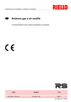 Instructions pour l'installation, l'utilisation et l'entretien F Brûleurs gaz à air soufflé Fonctionnement à deux allures progressif ou modulant CODE MODÈLE TYPE 20014098 - 20014515 RS 250/EV MZ 866 T2 20014490 (4) - 09/2012 Traduction des instructions d’origine Index 1 Déclarations . . . . . . . . . . . . . . . . . . . . . . . . . . . . . . . . . . . . . . . . . . . . . . . . . . . . . . . . . . . . . . . . . . . . . . . . . . . . . . . . . . . 3 2 Informations et avertissements généraux. . . . . . . . . . . . . . . . . . . . . . . . . . . . . . . . . . . . . . . . . . . . . . . . . . . . . . . . . . . 4 3 4 2.1 Informations sur le manuel d'instructions . . . . . . . . . . . . . . . . . . . . . . . . . . . . . . . . . . . . . . . . . . . . . . . . . . . . . . . . . . . . . . 4 2.1.1 Introduction . . . . . . . . . . . . . . . . . . . . . . . . . . . . . . . . . . . . . . . . . . . . . . . . . . . . . . . . . . . . . . . . . . . . . . . . . . . . . . . 4 2.1.2 Dangers génériques . . . . . . . . . . . . . . . . . . . . . . . . . . . . . . . . . . . . . . . . . . . . . . . . . . . . . . . . . . . . . . . . . . . . . . . . 4 2.1.3 Autres symboles . . . . . . . . . . . . . . . . . . . . . . . . . . . . . . . . . . . . . . . . . . . . . . . . . . . . . . . . . . . . . . . . . . . . . . . . . . . 4 2.1.4 Livraison de l'équipement et du manuel d'instructions correspondant . . . . . . . . . . . . . . . . . . . . . . . . . . . . . . . . . . 5 2.2 Garantie et responsabilité . . . . . . . . . . . . . . . . . . . . . . . . . . . . . . . . . . . . . . . . . . . . . . . . . . . . . . . . . . . . . . . . . . . . . . . . . . 5 Sécurité et prévention . . . . . . . . . . . . . . . . . . . . . . . . . . . . . . . . . . . . . . . . . . . . . . . . . . . . . . . . . . . . . . . . . . . . . . . . . . . 6 3.1 Avant-propos . . . . . . . . . . . . . . . . . . . . . . . . . . . . . . . . . . . . . . . . . . . . . . . . . . . . . . . . . . . . . . . . . . . . . . . . . . . . . . . . . . . . 6 3.2 Formation du personnel . . . . . . . . . . . . . . . . . . . . . . . . . . . . . . . . . . . . . . . . . . . . . . . . . . . . . . . . . . . . . . . . . . . . . . . . . . . 6 Description technique du brûleur . . . . . . . . . . . . . . . . . . . . . . . . . . . . . . . . . . . . . . . . . . . . . . . . . . . . . . . . . . . . . . . . . 7 4.1 Désignation des brûleurs. . . . . . . . . . . . . . . . . . . . . . . . . . . . . . . . . . . . . . . . . . . . . . . . . . . . . . . . . . . . . . . . . . . . . . . . . . . 7 4.2 Modèles disponibles . . . . . . . . . . . . . . . . . . . . . . . . . . . . . . . . . . . . . . . . . . . . . . . . . . . . . . . . . . . . . . . . . . . . . . . . . . . . . . 7 4.3 Données techniques . . . . . . . . . . . . . . . . . . . . . . . . . . . . . . . . . . . . . . . . . . . . . . . . . . . . . . . . . . . . . . . . . . . . . . . . . . . . . . 8 4.4 Données électriques . . . . . . . . . . . . . . . . . . . . . . . . . . . . . . . . . . . . . . . . . . . . . . . . . . . . . . . . . . . . . . . . . . . . . . . . . . . . . . 8 4.5 Pays de destination - Catégorie du gaz . . . . . . . . . . . . . . . . . . . . . . . . . . . . . . . . . . . . . . . . . . . . . . . . . . . . . . . . . . . . . . . 9 4.6 Poids du brûleur . . . . . . . . . . . . . . . . . . . . . . . . . . . . . . . . . . . . . . . . . . . . . . . . . . . . . . . . . . . . . . . . . . . . . . . . . . . . . . . . . 9 4.7 Dimensions d'encombrement . . . . . . . . . . . . . . . . . . . . . . . . . . . . . . . . . . . . . . . . . . . . . . . . . . . . . . . . . . . . . . . . . . . . . . . 9 4.8 Matériel fourni . . . . . . . . . . . . . . . . . . . . . . . . . . . . . . . . . . . . . . . . . . . . . . . . . . . . . . . . . . . . . . . . . . . . . . . . . . . . . . . . . . . 9 4.9 Plage de puissance . . . . . . . . . . . . . . . . . . . . . . . . . . . . . . . . . . . . . . . . . . . . . . . . . . . . . . . . . . . . . . . . . . . . . . . . . . . . . . 10 4.10 Chaudière d’essai . . . . . . . . . . . . . . . . . . . . . . . . . . . . . . . . . . . . . . . . . . . . . . . . . . . . . . . . . . . . . . . . . . . . . . . . . . . . . . . 10 4.11 Description du brûleur . . . . . . . . . . . . . . . . . . . . . . . . . . . . . . . . . . . . . . . . . . . . . . . . . . . . . . . . . . . . . . . . . . . . . . . . . . . . 11 4.12 Boîte de contrôle du rapport air/combustible (REC37.400A2) . . . . . . . . . . . . . . . . . . . . . . . . . . . . . . . . . . . . . . . . . . . . . 12 4.13 Servomoteurs . . . . . . . . . . . . . . . . . . . . . . . . . . . . . . . . . . . . . . . . . . . . . . . . . . . . . . . . . . . . . . . . . . . . . . . . . . . . . . . . . . 14 5 Installation . . . . . . . . . . . . . . . . . . . . . . . . . . . . . . . . . . . . . . . . . . . . . . . . . . . . . . . . . . . . . . . . . . . . . . . . . . . . . . . . . . . 15 5.1 Indications concernant la sécurité pour l'installation . . . . . . . . . . . . . . . . . . . . . . . . . . . . . . . . . . . . . . . . . . . . . . . . . . . . . 15 5.2 Manutention. . . . . . . . . . . . . . . . . . . . . . . . . . . . . . . . . . . . . . . . . . . . . . . . . . . . . . . . . . . . . . . . . . . . . . . . . . . . . . . . . . . . 15 5.3 Contrôles préliminaires . . . . . . . . . . . . . . . . . . . . . . . . . . . . . . . . . . . . . . . . . . . . . . . . . . . . . . . . . . . . . . . . . . . . . . . . . . . 15 5.4 Position de fonctionnement . . . . . . . . . . . . . . . . . . . . . . . . . . . . . . . . . . . . . . . . . . . . . . . . . . . . . . . . . . . . . . . . . . . . . . . . 15 5.5 Préparation de la chaudière . . . . . . . . . . . . . . . . . . . . . . . . . . . . . . . . . . . . . . . . . . . . . . . . . . . . . . . . . . . . . . . . . . . . . . . 16 5.5.1 Perçage de la plaque de la chaudière . . . . . . . . . . . . . . . . . . . . . . . . . . . . . . . . . . . . . . . . . . . . . . . . . . . . . . . . . 16 5.5.2 Longueur de la buse . . . . . . . . . . .