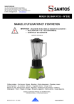 SANTOS SAS : SANTOS : Manuel 140-150 AVENUE ROGERd'utilisation SALENGRO et d’entretien 69120 VAULX-EN-VELIN (LYON) - FRANCE TÉL. 33 (0) 472 37 35 29 - FAX 33 (0) 478 26 58 21 E-Mail :[email protected] www.santos.fr MIXER DE BAR N°33 – N°33E MANUEL D’UTILISATION ET D’ENTRETIEN ! IMPORTANT : documents inclus dans ce manuel et à conserver : • DECLARATION « CE » DE CONFORMITE • CERTIFICAT DE GARANTIE VERSION ORIGINALE Coffee grinders - Fruit juicers - Mixers - Blenders - Drinks dispensers - Planetary mixers Cheese graters - Ice crushers - Mincers - Vegetable slicers – Dough mixer Moulins à café - Presse-fruits - Mixers - Blenders - Distributeurs de boissons - Batteurs mélangeurs - Pétrin - Râpes à fromage - Broyeurs à glaçons - Hache-viande - Coupe-légumes MODELES DEPOSES FRANCE ET INTERNATIONAL INTERNATIONALLY PATENTED MODELS 98133 FR 5.8 - 10 2022 1 / 19 www.santos.fr SANTOS : Manuel d'utilisation et d’entretien SOMMAIRE DECLARATION “CE/UE” DE CONFORMITE ........................................................................... 3 REGLES DE SECURITES ............................................................................................................... 4 CONTRE INDICATIONS ................................................................................................................. 4 INSTALLATION, MANUTENTION ................................................................................................. 5 BRANCHEMENT ELECTRIQUE ; ................................................................................................. 5 1ere MISE EN ROUTE .................................................................................................................... 6 RECYCLAGE DU PRODUIT EN FIN DE VIE ............................................................................... 7 VOTRE MIXER DE BAR N°33 ....................................................................................................... 8 UTILISATION DE L’APPAREIL ................................................................................................... 8 MISE EN ROUTE : .......................................................................................................................... 8 Montage et préparation : .............................................................................................................. 8 NETTOYAGE :................................................................................................................................. 9 STOCKAGE : ................................................................................................................................... 9 MAINTENANCE ............................................................................................................................. 10 Pièces détachées : .......................................................................................................................... 10 Non usage prolongé : ..................................................................................................................... 10 Remplacement du système d'accouplement : ................................................................................. 10 Démontage de la partie motrice (moteur) : (Fig. E) ..................................................................... 11 Montage de la partie motrice (moteur) (Fig. F) :.......................................................................... 11 Démontage de la partie réceptrice (couteaux) : ............................................................................ 12 Montage de la partie réceptrice (couteaux) (Fig. H) : .................................................................. 13 AIDE AU DEPANNAGE ................................................................................................................ 14 L'appareil ne démarre pas :........................................................................................................... 14 L'appareil s'arrête suite à une chauffe moteur : (le bloc moteur est chaud) ................................. 14 L'appareil s'arrête suite à une surcharge : .................................................................................... 14 Le moteur fonctionne mais les couteaux ne tournent pas :............................................................ 15 CARACTERISTIQUES TECHNIQUES DE L’APPAREIL ...................................................... 16 Schéma électrique 110-120V 50/60Hz N°33 ................................................................................ 17 Interrupteur présence bolSchéma électrique 110-120V 50/60Hz N°33E ..................................... 17 Schéma électrique 220-240V 50/60Hz N°33 ................................................................................ 18 Schéma électrique 220-240V 50/60Hz N°33E .............................................................................. 18 CERTIFICAT DE GARANTIE ................................................................................................... 19 PLAQUE SIGNALETIQUE DE L’APPAREIL ........................................................................ 19 98133 FR 5.8 - 10 2022 2 / 19 www.santos.fr SANTOS : Manuel d'utilisation et d’entretien DECLARATION “CE/UE” DE CONFORMITE LE FABRICANT : SANTOS SAS - 140-150, Av. Roger SALENGRO 69120 VAULX-EN-VELIN (LYON) FRANCE Déclare que l’appareil destiné à être mis sur le marché professionnel, désigné ci-après : Désignation : Numéro de type : BLENDER, MIXER 33, 33C, 33E, 33CE est conforme : • aux dispositions réglementaires définies par l’annexe 1 de la directive européenne "machines" n°2006/42/CE, et aux législations nationales la transposant. • aux dispositions réglementaires des directives et règlements européens suivants : o o o o o o N° 2014/35/UE (Directive basse tension) N° 2014/30/UE (Directive CEM) N° 2011/65/UE (Directive RoHS) N° 20