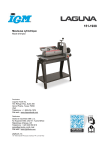 151-1938 Meuleuse cylindrique Mode d'emploi Producteur Laguna Tools Inc. 744 Refuge Way, Suite 200 Grand Prairie, Texas 75050 USA Téléphone : +1 800-234-1976 Site web : www.lagunatools.com Distributeur Outils et machines IGM s.r.o. Ke Kopanině 560, 252 67, Tuchoměřice République tchèque, UE Téléphone : +420 220 950 910 [email protected] : Site web : www.igmtools.com 2025-01-13 151-1938 LAGUNA Ponceuse à tambour FR v2.01.02 A4ob ES DÉCLARATION DE CONFORMITÉ Mon (fabricant) Laguna Tools Inc. 2072 Alton Parkway, Irvine, Californie 92606, ÉtatsUnis Nous déclarons que le produit : Meuleuse cylindrique pour le travail du bois Nom du modèle : 71632, 71938, 71938-D, 72550 Ils répondent aux exigences de sécurité de base de la directive européenne correspondante : - Directive Machines 2006/42/CE - Directive sur la compatibilité électromagnétique 2014/30/EU La société qui compile la documentation technique est basée dans l'UE : Nom : IGM tools and machines s.r.o. Adresse : Ke Kopanině 560, Tuchoměřice, CZ-252 67 Tél : +420 220 950 910 E-mail : [email protected] Les instructions d'installation et de raccordement figurant dans mode d'emploi ainsi que les principes généralement admis de bonne pratique et de protection de la santé conformément à la directive sur les machines doivent être respectés: • EN ISO 12100:2010 Sécurité des machines – Principes généraux de conception / Évaluation et réduction des risques. • EN 60204-1:2006+AC:2010 Sécurité des machines - Équipement électrique des machines, Partie 1 : Généralités • demandes. • EN 13849-1:2015 Sécurité des – Sécurité - Parties connexes des systèmes de commande - Partie 1: Principes généraux de conception • EN 50370-1:2005 Compatibilité électromagnétique (CEM) - Norme de famille de produits machines-outils - Partie 1 : Émissions. • EN 50370-2:2003 Compatibilité électromagnétique (CEM) - Norme de famille de produits machines-outils - Partie 2 : Immunité. • EN 61000-4-2:2009 Électrostatique (ESD) • EN 61000-4-4:2012 Exigences relatives aux transitions électriques rapides (EFT/burst) • EN 61000-4-6 : 2014 Résistance aux interférences des champs de radiofréquences (CS) Il est responsable de la documentation: Responsable de la gestion des produits, Laguna Tools Inc. Nom: Torben Directeur général Helshoj Fonction : Signature de la personne autorisée: Date d'entrée en vigueur: 15 octobre 2021 Lieu: Laguna Tools Inc. 2072 Alton Parkway, Irvine, Californie 92606, États-Unis Téléphone: +1 800 234-1976 Fax: +1 949 474-0150 www.igmtools.com 2 FR – français Mode d'emploi (traduction automatique du manuel original) Cher client, Nous vous remercions de la confiance que vous nous avez témoignée lors de l'achat d'une nouvelle machine LAGUNA. Ce manuel a été préparé à l'intention des propriétaires et des utilisateurs de la rectifieuse cylindrique IGM LAGUNA 1938 SuperMax afin de garantir la sécurité lors de l'installation, de l'utilisation et de l'entretien. Veuillez lire attentivement et en détail les informations contenues dans ce manuel et les documents qui l'accompagnent. Utilisez la machine LAGUNA conformément à ce manuel et aux instructions afin d'obtenir une durée de vie et des performances maximales. Respectez les règles de sécurité au travail. Nous vous souhaitons beaucoup de plaisir à travailler avec la machine LAGUNA. Table des matières 1. Déclaration de conformité 2. Garantie et service de garantie 3. Sécurité Enseignements tirés Instructions générales de sécurité Risques Instructions de mise à la terre 4. Spécifications de la machine 5. Transport et mise en service Transport et installation 6. Mise en place et réglage Réglage de la meuleuse cylindrique Installation et enroulement de la bande abrasive 7. Travailler avec la machine 8. Maintenance 9. Dépannage 10. ASSEMBLAGE DE LA TÊTE 11. SCHÉMA DE CÂBLAGE 12. ASSEMBLAGE DU SUPPORT OUVERT 13. CONVOYEUR ET MOTEUR 1. Déclaration de conformité Nous déclarons que ce produit est conforme à la directive et à la norme énumérées à la page 2 de ce manuel. 2. Garantie et service de garantie IGM tools and machines s.r.o. s'efforce toujours de fournir un produit de qualité et efficace. L'application de la garantie est régie par les conditions générales applicables et les conditions de garantie d'IGM Tools and Machines s.r.o. www.igmtools.com 3 3. Sécurité 3.1 Enseignements tirés Cette machine est conçue uniquement pour le travail du bois et des produits dérivés du bois. L’usinage d’autres matériaux n’est pas autorisé et ne peut être effectué que dans des cas spécifiques après consultation du fabricant. Cette machine n’est pas destinée au meulage avec liquide. Respectez l’âge minimum requis par la législation en vigueur. La machine ne doit être utilisée que dans un état technique irréprochable. En plus du manuel d’utilisation, consultez également les consignes de sécurité et les réglementations spécifiques de votre pays. Vous devez respecter les règles techniques généralement reconnues et les consignes de sécurité applicables à l’utilisation des machines pour le travail du bois et du métal. Le fabricant et le fournisseur déclinent toute responsabilité pour les dommages résultant d’une mauvaise utilisation. Le risque est entièrement assumé par chaque utilisateur. 3.2 Instructions générales de sécurité La machine peut être dangereuse en cas de mauvaise utilisation. Lisez attentivement le manuel d’utilisation dans son intégralité avant d’utiliser la machine et respectez toutes les consignes indiquées dans ce manuel. Protégez ce manuel d’utilisation de la saleté et de l’humidité, et transmettez-le au nouveau propriétaire en cas de revente de la machine. Aucune modification ou transformation de la machine n’est autorisée. Avant chaque journée de travail, vérifiez le bon fonctionnement de la machine e