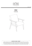 November, DVS51 ARMCHAIR December, 2022 décembre, 2023 DVS51 DVS51 ARMCHAIR FAUTEUIL Assembly Instructions - Important: Instructions montageto–assemble. Important: Carefully unpack and identify each component beforedeattempting Refer to parts list. Please take care when Déballez soigneusement le colisset et the identifiez chaque composant avantIfde tenter montage. Référez-vous à la liste desor assembling the unit and always parts on a clean, soft surface. you require assistance with assembly, parts Assembly Instructions - Important: un any pièces jointe. Veuillez prendre soin lors du montage l’unité et posezwww.officestar.net toujours les piècesorsurcall une information on other products, pleasede visit our website: or surface write us.propre et lisse. Carefully unpack each component Refersouhaitez to partsrecevoir list. Please take care when Si vousand avez identify besoin d’assistance en ce qui before concerneattempting le montage, to les assemble. pièces ou si vous des informations d’autres produits,set veuillez visiter notre Web:soft www.officestar.net, écrivez-nous par courriel ou parassembly, la poste. parts or assembling thesurunit and always the parts on a site clean, surface. If youourequire any assistance with information on other products, please visit our website: www.officestar.net or call or write us. DVS51 ARMCHAIR 1. Ne pas utiliser ce produit à moins que toutes les vis et tous les boulons soient resserrés. 2. Vérifier à tous les trois mois ou au besoin que toutes les vis et tous les boulons sont resserrés.. 3. Éliminer les matériaux de conditionnement d’une manière convenable. Ne pas utiliser la couverture en plastique pour couvrir la tête à cause du risque d’étouffement. 4. Ne pas utiliser ce produit comme un escabeau. 5. Ce produit ne doit servir qu’à l’usage pour lequel il a été conçu. 6. POUR USAGE INTÉRIEUR ET RÉSIDENTIEL SEULEMENT. GARANTIE LIMITÉE que ce produit sera exempt de tout défaut de pièces et de main d’oeuvre tel que OSP Home Furnishings® garantit à l’acheteur originalAssembly Instructions - Important: ® réparera ou remplacera, à sa discrétion, sans frais à l’acheteur original produits décrit ci-dessous. OSP Home Furnishings Carefully unpack and identify each component before attempting to assemble. Refer to parts list. Pleaseseulement, take care les when ou les pièces défectueux/défectueuses durant une période d’un (1) an à compter de la date d’achat. Les pièces de rechange ne peuvent assembling the unit and always set the parts on aInstructions clean, soft surface. If you require any assistance with assembly, parts or Assembly - Important: être fournies que lorsque celles-ci sont disponibles. Les pièces d’articles discontinués peuvent ne pas être disponibles. Cette garantie est information on other products, please visit our website: www.officestar.net or call or write us. effective pour la période de temps applicable à compter de la date d’achat indiquée sur votreRefer reçu detovente Cette garantie est votre Carefully unpack and identify each component before attempting to assemble. partsoriginal. list. Please take care when seul recours pour les défauts de produits et exclut les défauts liés à ou découlant d’un abus ou d’une mauvaise utilisation d’un produit, à assembling unitmodification, and always set the partsd’un on aproduit, clean,etsoft surface.ouIfpièces you require any assistance withcontrairement assembly, parts l’utilisationthe d’une ou d’accessoires, aux produits utilisés, entretenus ou installés aux or directives d’installation, d’entretien ou autres applicables l’entreprise. Il n’existe aucune autre garantie, ou implicite, information on other products, pleasedevisit our website: www.officestar.net or expresse call or write us. autre que celle expressément décrite, y compris, mais sans s’y limiter, toute garantie implicite de qualité marchande ou d’adéquation à un usage particulier. OSP Home Furnishings® ne sera pas tenue responsable des dommages directs ou indirects. Certaines Provinces ne permettent pas l’exclusion ou la limitation des dommages accidentels ou consécutifs, et donc les limitations ou exclusions susmentionnées peuvent ne pas s’appliquer à vous. Cette garantie vous donne des droits légaux spécifiques comme vous pouvez également avoir d’autres droits qui peuvent varier d’une Province à l’autre. Nos normes de qualité sont parmi les meilleures de l’industrie. Parfois, et malgré toutes nos tentatives, il existe des moments où les pièces peuvent être endommagées ou manquantes. Notre service des pièces de rechange fera tout son possible pour remédier rapidement à ce problème. Contactez-nous par courriel [email protected], par télécopieur 905-761-1296 ou par téléphone au numéro sans frais du service des pièces 866-382-9998, du lundi au vendredi de 8h00 à 15h30, heure de l’Est. Pour faire une réclamation de garantie, contacter le service des pièces. Fournir le numéro de modèle, preuve de paiement, et une description du problème. À sa discrétion, OSP Home Furnishings®: (a) fournira des pièces compatibles de produits courants (b) réparera la pièce du client. Le client doit payer d’avance les frais de transport de toute pièce retournée à l’usine. Les frais de transport de retour pour des pièces encore sous garantie seront payés par OSP Home Furnishings®. LISTE DES PIÈCES (1) Dossier (1 PC) (2) Siège (1 PC) (3) Cadre droit (1 PC) (4) Cadre gauche (1 PC) LISTE DU MATÉRIEL ÉT. DESSIN DESCRIPTION TAILLE QUANTITÉ A Boulon 1/4"x2-3/4" 4 PCS B Boulon 5/16"x1-3/4" 4 PCS C Rondelle plate 1/4" 2 PCS D Rondelle 1/4" 2 PCS E Rondelle plate 5/16" 4 PCS F Rondelle 5/16" 4 PCS G Clé Allen 4mm 1 PC ÉTAPE 1 (G) (2) (B) (F) (E) (3) NOTE: NE SERREZ PAS COMPLÈTEMENT LES BOULONS. ÉTAPE 2: (2) (G) (B) (F) (E) (4) NE SERREZ PAS COMPLÈTEMENT LES BOULONS. ÉTAPE 3: (1) 