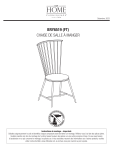 Décembre, 2023 BRY6519 (FT) CHAISE DE SALLE À MANGER Instructions de montage – Important: Déballez soigneusement le colis et identifiez chaque composant avant de tenter un montage. Référez-vous à la liste des pièces jointe. Veuillez prendre soin lors du montage de l’unité et posez toujours les pièces sur une surface propre et lisse. Si vous avez besoin d’assistance en ce qui concerne le montage, les pièces ou si vous souhaitez recevoir des informations sur d’autres produits, veuillez visiter notre site Web: www.officestar.net, ou écrivez-nous par courriel ou par la poste. 1. Ne pas utiliser ce produit à moins que toutes les vis et tous les boulons soient resserrés. 2. Vérifier à tous les trois mois ou au besoin que toutes les vis et tous les boulons sont resserrés. 3. Éliminer les matériaux de conditionnement d’une manière convenable. Ne pas utiliser la couverture en plastique pour couvrir la tête à cause du risque d’étouffement. 4. Ne pas utiliser ce produit comme un escabeau. 5. Ce produit ne doit servir qu’à l’usage pour lequel il a été conçu. 6. POUR USAGE INTÉRIEUR ET RÉSIDENTIEL SEULEMENT. GARANTIE LIMITÉE OSP Home Furnishings® garantit à l’acheteur original que ce produit sera exempt de tout défaut de pièces et de main d’oeuvre tel que décrit ci-dessous. OSP Home Furnishings® réparera ou remplacera, à sa discrétion, sans frais à l’acheteur original seulement, les produits ou les pièces défectueux/défectueuses durant une période d’un (1) an à compter de la date d’achat. Les pièces de rechange ne peuvent être fournies que lorsque celles-ci sont disponibles. Les pièces d’articles discontinués peuvent ne pas être disponibles. Cette garantie est effective pour la période de temps applicable à compter de la date d’achat indiquée sur votre reçu de vente original. Cette garantie est votre seul recours pour les défauts de produits et exclut les défauts liés à ou découlant d’un abus ou d’une mauvaise utilisation d’un produit, à l’utilisation d’une modification, ou d’accessoires, d’un produit, et aux produits ou pièces utilisés, entretenus ou installés contrairement aux directives d’installation, d’entretien ou autres applicables de l’entreprise. Il n’existe aucune autre garantie, expresse ou implicite, autre que celle expressément décrite, y compris, mais sans s’y limiter, toute garantie implicite de qualité marchande ou d’adéquation à un usage particulier. OSP Home Furnishings® ne sera pas tenue responsable des dommages directs ou indirects. Certaines Provinces ne permettent pas l’exclusion ou la limitation des dommages accidentels ou consécutifs, et donc les limitations ou exclusions susmentionnées peuvent ne pas s’appliquer à vous. Cette garantie vous donne des droits légaux spécifiques comme vous pouvez également avoir d’autres droits qui peuvent varier d’une Province à l’autre. Nos normes de qualité sont parmi les meilleures de l’industrie. Parfois, et malgré toutes nos tentatives, il existe des moments où les pièces peuvent être endommagées ou manquantes. Notre service des pièces de rechange fera tout son possible pour remédier rapidement à ce problème. Contactez-nous par courriel [email protected], par télécopieur 905-761-1296 ou par téléphone au numéro sans frais du service des pièces 866-382-9998, du lundi au vendredi de 8h00 à 15h30, heure de l’Est. Pour faire une réclamation de garantie, contacter le service des pièces. Fournir le numéro de modèle, preuve de paiement, et une description du problème. À sa discrétion, OSP Home Furnishings®: (a) fournira des pièces compatibles de produits courants (b) réparera la pièce du client. Le client doit payer d’avance les frais de transport de toute pièce retournée à l’usine. Les frais de transport de retour pour des pièces encore sous garantie seront payés par OSP Home Furnishings®. PIÈCES (A) Corps de Chaise (1 Pc) (B) Base (1 Pc) MATÉRIEL ET. DESSIN DESCRIPTION TAILLE QUANTITÉ 1 Boulon Allen 1/4" x 25mm 4 Pcs + 1 suppl. 2 Rondelle 1/4" x 16mm 4 Pcs + 1 suppl. 3 Clé Allen 4mm 1 Pc ÉTAPE 1 (3) (B) (1) (2) (A) RETOURNER LA CHAISE, APPLIQUER UNE PRESSION FERME POUR ALIGNER, ET SERRER COMPLÈTEMENT TOUS LES BOULONS. ">