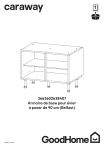 caraway 3663602638407 Armoire de base pour évier à poser de 90 cm (Belfast) V21020 BX220IM Contenu Avant de commencer 04 Consignes de sécurité 04 Assemblage 05 Entretien et maintenance Garantie 10 10 1 AVERTISSEMENT ! Avant de manipuler le produit, il est nécessaire d’avoir lu attentivement et parfaitement compris tous les avertissements de sécurité. x1 Contenu W 15mm D [x26] 30mm F [x2] H [x2] 50mm [x12] K 50mm G J [x4] [x5] [x5] BB 2 x AA 2 x BB CC AA DD 1 x CC AA 1 x DD 1 x EE EE BB X Y Z [x5] [x2] [x2] Avant de commencer • • • • • • • • • • • • • • • 04 Avant de commencer Informations importantes. À lire attentivement. Conserver ces instructions pour consultation ultérieure. Si des pièces sont manquantes ou endommagées, contacter le service client. Les informations concernant votre distributeur se trouvent dans la partie « Adresses » de ce manuel. Ne pas utiliser de couteau pour ouvrir les cartons, car cela peut endommager le contenu. Ne pas se précipiter, lire d’abord les instructions et se familiariser avec les différentes étapes avant de commencer. Placer les fixations dans un bol ou les conserver dans l’emballage afin de ne pas les égarer. Avant de procéder à l’installation, s’assurer que tous les travaux préalables à l’installation, tels que le déplacement des prises électriques, des raccords de gaz et d’eau, ont été réalisés par une personne dûment qualifiée et qu’ils sont conformes à toutes les réglementations locales. S’assurer de disposer de toutes les pièces énumérées. Vérifier tous les emballages car certains composants peuvent ne pas être visibles ; conserver les emballages tant que toutes les pièces n’ont pas été identifiées. Avant de commencer, veiller à disposer des outils adaptés, d’un espace suffisant ainsi que d’une surface propre et sèche pour l’assemblage. Effectuer l’assemblage en suivant les étapes indiquées dans les schémas ci-après, en assemblant une unité à la fois et en plaçant les fixations au même endroit pour éviter de les égarer. Le non-respect de ces instructions peut entraîner des blessures corporelles, endommager le produit ainsi que vos biens. Usage domestique uniquement. ATTENTION : ne pas serrer excessivement les fixations car cela risque d’endommager le produit. Consignes de sécurité • AVERTISSEMENT : afin d’éviter que le produit ne se renverse, il doit être utilisé avec le dispositif d’attache au mur fourni. • AVERTISSEMENT : l’installation doit uniquement être effectuée par une personne compétente. Ce produit peut être dangereux, à l’origine de blessures ou de dégâts matériels s’il n’est pas installé correctement. • Certaines pièces peuvent être dangereuses pour les jeunes enfants. • Garder toutes les pièces hors de portée et ne pas laisser des enfants sans surveillance dans la zone d’assemblage. • Le renversement des meubles peut causer des dommages corporels par écrasement graves, voire mortels. Pour éviter que ce meuble ne se renverse, il doit être fixé au mur en permanence. Les dispositifs de fixation au mur ne sont pas inclus dans la mesure où chaque matériau de mur nécessite des types de dispositifs de fixation différents. Utiliser les dispositifs de fixation adaptés aux murs de votre maison. • Empêcher les enfants de monter ou de s’accrocher aux portes et aux étagères. • En cas de doute quant à l’installation de ce produit, faire appel à un expert. • ATTENTION : toujours s’assurer que le produit est bien fixé avant de l’utiliser. IMPORTANT : CONSERVER CES INFORMATIONS POUR CONSULTATION ULTÉRIEURE : À LIRE ATTENTIVEMENT Assemblage 01 [x6] K 05 GLISSIÈRES DISSIMULÉES 50mm AA K BB CC AA CC AA AA AA BB Assemblage 06 02 [x6] K 50mm K BB BB CC AA AA BB 03 [x4] G 50mm CC CC BB BB G DD G G DD DD G Assemblage 07 04 [x20] D 15mm [x5] W [x5] D X W BB W Assemblage 08 05 [x2] F 30mm 20mm 90° F 06 [x2] D 15mm H [x2] H D H Non Fourni Assemblage 09 07 [x5] J J J J J J EE J EE 08 [x4] D 15mm D [x2] Y Y Y [x2] Z Y Y Z Y D Entretien et maintenance 10 • Nettoyer la surface du produit à l’eau savonneuse avec un chiffon doux et humide. Essuyer avec un chiffon propre. • Éviter : les produits de nettoyage tels que les poudres abrasives, la laine de verre ou les tampons à récurer, ainsi que les produits de nettoyage contenant de l’acétone, du chlore ou des solvants. • Éviter : les nettoyeurs à vapeur • Enlever immédiatement toutes traces de saleté dès leur apparition. • De temps à autre, vérifier que l’ensemble des fixations, ouvertures, glissières, profilés, poignées, supports de fixation, etc. sont bien fixés. Garantie Nous veillons tout particulièrement à sélectionner des matériaux de haute qualité et à utiliser des techniques de fabrication qui nous permettent de créer des produits à la fois design et durables. L’armoire GoodHome s’accompagne d’une garantie fabricant de 25 ans contre tout défaut de fabrication, à compter de la date d’achat (en cas d’achat en magasin) ou de la date de livraison (en cas d’achat en ligne), sans coût supplémentaire. Pour déposer une réclamation au titre de cette garantie, vous devez présenter votre preuve d’achat (ticket de caisse, facture d’achat ou toute autre preuve recevable en vertu de la loi en vigueur). Conserver votre preuve d’achat dans un endroit sûr. Pour que cette garantie soit applicable, le produit que vous avez acheté doit être neuf. La garantie ne s’applique pas aux produits d’occasion ou aux modèles d’exposition. Sauf indication contraire prévue par la loi en vigueur, tout produit de remplacement fourni au titre de la présente garantie ne sera garanti que jusqu’à expiration de la période de garantie initiale. Cette garantie couvre les défaillances et dysfonctionnements matériels, sous réserve que le produit ait été utilisé conformément à 