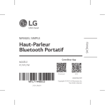 MANUEL SIMPLE FRANÇAIS Haut-Parleur Bluetooth Portatif Contrôleur App MODÈLE PL7/PL7W Android iOS www.lg.com MFL71448053 2101_Rev01 Copyright © 2021 LG Electronics Inc. Tous droits réservés. 2 Voyant d’état de charge Chargé complètement : Vert Éteint / En cours de chargement : Rouge Voyant d’état de la batterie Vert : ≥ 70 % / Orange : > 10 % Le voyant rouge clignotant indique que la batterie doit être chargée. Adaptateur CA (Non fourni) Alimentation Batterie Bluetooth Commandes de lecture Mains libres Volume (Arrière) Marche/Arrêt . . . . . . . . . . . . . . . . . . . . . . . . . . . . . . . Appuyez sur 1 Vérifiez l’état de la batterie . . Maintenir 1 pendant 2 secondes Pour associer votre appareil mobile, sélectionnez LG-PL7(xx) dans la liste des périphériques. (Le témoin Bluetooth: Clignote MARCHE) Prêt à appairer un autre appareil . . . . Maintenir pendant 2 secondes Lecture / Pause . . . . . . . . . . . . . . . . . . . . . . . . Appuyez sur Suivant . . . . . . . . . . . . . . . . . . . . . . . . . . . . . . . . Appuyez sur X 2 Précédent . . . . . . . . . . . . . . . . . . . . . . . . . . . . . Appuyez sur X 3 Répondre / Raccrocher . . . . . . . . . . . . . . . . . . . . . . Appuyez sur Contrôle du volume . . . . . . . . . . . . . . . . . . . . Appuyez sur ou 3 Commande vocale Effets Lumineux Effet sonore Mode Dual Mode Multi Utilisez la commande vocale de votre dispositif intelligent . . . . . . . . . . . . . . . . . . . . . . . . . . . . Maintenir pendant 2 secondes Fête Eau Forêt [JellyBean (personnalisation)] Arrêt . . . . . . . . . . . . . . . . . . . . . . . . . . . . . . . . . . . . . . . . . . . . . .Appuyez sur Pour pouvoir activer l’option JellyBean, vous devez effectuer une personnalisation avec l’app LG XBOOM. ( (Arrêt): Standard / (Marche): SOUND BOOST) . . . . . . . . . . . . . . . . . . . . . . . . . . . . . . Appuyez sur SOUND BOOST. Appuyez sur la touche DUAL de chaque haut-parleur. (LED de mode dual) : Clignotement MARCHE Appuyez sur la touche MULTI de chaque haut-parleur pour sélectionner PRINCIPAL ou AUTRE. Appairages multiples 4 Mode Dual Mode Multi Caractéristiques Remarque importante Alimentation: -- 5 V 0 2 A (adaptateur secteur) -- Batterie rechargeable intégrée Consommation électrique: Reportez-vous à l’étiquette principale. Alimentation BUS (USB): 5 V 0 1,5 A -- Le port USB sert uniquement à charger les appareils portables -- Le chargement d’un appareil mobile via le port USB n’est possible que lorsque le haut-parleur est allumé. -- Le rechargement d’appareil mobile via le port USB est possible lorsqu’on utilise le mode Bluetooth. Dimensions (L x H x P): -- Environ. 245 mm X 98 mm X 98 mm Température de fonctionnement: 5 °C à 35 °C Humidité de fonctionnement: 5 % à 60 % Étanchéité: IPX5 -- Degré de protection contre les jets d’eau. Autonomie de la batterie: environ 24 heures (Varie selon le niveau du volume et le contenu audio.) yy La conception et les caractéristiques sont sujettes à modification sans préavis. yy Faites une recharge totale de l’appareil avant de l’utiliser pour la première fois. yy Il est recommandé d’utiliser un adaptateur secteur 5 V (plus de 2 A) avec cet appareil. yy Pour profiter de plus de fonctionnalités, téléchargez l’application “LG XBOOM” sur votre appareil Bluetooth. y y Réinitialisation En cas de dysfonctionnement du hautparleur, appuyez sur le bouton RESET. Pour plus d'informations, téléchargez le manuel d'utilisation en ligne. http://www.lg.com 5 Consignes de sécurité ATTENTION : AFIN DE RÉDUIRE LE RISQUE DE CHOC ÉLECTRIQUE, NE RETIREZ PAS LE BOÎTIER (NI L’ARRIÈRE). AUCUNE PIÈCE DE CET APPAREIL N’EST SUSCEPTIBLE D’ÊTRE RÉPARÉE PAR L’UTILISATEUR. CONFIEZ L’ENTRETIEN DE L’APPAREIL À DES PERSONNES QUALIFIÉES. Le symbole d’un éclair à l’intérieur d’un triangle sert à avertir l’utilisateur de la présence d’une tension dangereuse non isolée dans le corps de l’appareil, qui peut être suffisamment élevée pour provoquer un risque d’électrocution. Le symbole d’un point d’exclamation à l’intérieur d’un triangle sert à avertir l’utilisateur de la présence d’instructions d’utilisation et de maintenance (entretien) importantes dans la documentation qui accompagne l’appareil. AVERTISSEMENT : yy POUR PRÉVENIR TOUT RISQUE D’INCENDIE OU D’ÉLECTROCUTION, N’EXPOSEZ PAS CET APPAREIL À LA PLUIE OU À L’HUMIDITÉ. 6 yy n’installez pas cet appareil dans un espace confiné tel qu’une bibliothèque ou tout autre meuble similaire. yy Cette enceinte contient des aimants pouvant être nuisibles pour certains types d’objets (carte magnétique, pacemaker, etc.). ATTENTION : yy n’obstruez pas les ouvertures d’aération. Installez l’appareil conformément aux instructions du fabricant. Les fentes et les ouvertures du boîtier servent à assurer la ventilation et le bon fonctionnement de l’appareil, ainsi qu’à le protéger contre la surchauffe. Les ouvertures ne doivent jamais être bloquées en installant l’appareil sur un lit, un canapé, un tapis ou toute autre surface similaire. Cet appareil ne doit pas être placé dans un emplacement fermé tel qu’une bibliothèque ou une étagère, à moins d’assurer une ventilation adéquate ou que les instructions du fabricant l’autorisent. yy l’appareil ne doit pas être exposé à des projections d’eau ou à des éclaboussures, et aucun objet rempli de liquide tel qu’un vase ne doit être posé sur l’appareil. y Ne posez pas sur l’appareil des sources de y flamme nue telle que des bougies allumées. yy Il est recommandé d’utiliser l’adaptateur secteur 5 V (plus de 2 A) avec cet appareil. Si vous n’utilisez pas l’adaptateur recommandé, le chargement n’est pas possible ou la durée de chargement peut différer. yy Pour éviter tout incendie ou choc électrique, n’ouvrez pas l’appareil. Contacte