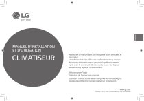 FRANÇAIS MANUEL D’INSTALLATION ET D’UTILISATION CLIMATISEUR Veuillez lire ce manuel dans son intégralité avant d'installer le climatiseur. L'installation doit être effectuée conformément aux normes électriques nationales par un personnel agréé uniquement. Après avoir lu ce manuel attentivement, conservez-le pour pouvoir vous y reporter ultérieurement. Télécommande Filaire Traduction de l’instruction originale Le présent manuel est la version simplifiée du manuel original. Vous pouvez obtenir le manuel original sur www.lg.com. www.lg.com Copyright © 2018 - 2020 LG Electronics Inc. Tous droits réservés. CONSIGNES DE SÉCURITÉ IMPORTANTES CONSIGNES DE SÉCURITÉ IMPORTANTES 2 CONSIGNES DE SÉCURITÉ IMPORTANTES LISEZ TOUTES LES INSTRUCTIONS AVANT D'UTILISER L'APPAREIL. Respectez toujours les précautions suivantes pour éviter les situations dangereuses et garantir un fonctionnement optimal de votre appareil. • L'installation nécessite des compétences spécialisées et doit être réalisée par le service aprèsvente ou par un installateur agréé par notre entreprise. • En cas de problèmes découlant d'une installation réalisée par une personne ne possédant pas les qualifications requises, notre entreprise n'assurera pas le service d'entretien gratuit. • Les consignes de sécurité suivantes visent à prévenir les dangers ou dommages accidentels. Le non-respect de ces instructions peut provoquer des blessures graves ou la mort. ATTENTION ! Le non-respect de ces instructions peut provoquer des blessures ou des dommages matériels. ! Ces précautions et mises en garde servent à attirer l'attention de l'utilisateur sur les dangers possibles. Lisez-les attentivement et appliquez-les à la lettre pour prévenir les accidents. Ces précautions et mises en garde figurent dans le présent manuel et sur le produit lui-même afin de protéger les utilisateurs de tout danger. ! AVERTISSEMENT Installation • Lorsque vous installez l'appareil, faites appel au centre de service après-vente ou à un installateur spécialisé. - À défaut, cela pourrait entraîner un incendie, une décharge électrique, une explosion ou des blessures. • Si vous devez réinstaller l'appareil, adressez-vous au centre de service après-vente ou à un installateur agréé. À défaut, cela pourrait entraîner un incendie, une décharge électrique, une explosion ou des blessures. • N'essayez pas de démonter, réparer ou modifier l'appareil vous-même. Cela pourrait entraîner un incendie ou une décharge électrique. • L'appareil ne doit être alimenté qu'à une très basse tension de sécurité correspondant au marquage sur l'appareil. Utilisation • Ne mettez pas de substances inflammables à proximité de l'appareil. Cela pourrait entraîner un incendie. • Assurez-vous que de l'eau ne pénètre pas dans l'appareil. Cela pourrait entraîner une décharge électrique ou une panne. • Ne soumettez pas l'appareil à des chocs. Cela pourrait entraîner une panne. • Si l'appareil devient humide, adressez-vous au centre de service après-vente ou à un installateur agréé. Cela pourrait entraîner un incendie ou une décharge électrique. • Ne heurtez pas l'appareil avec des objets tranchants et pointus. Cela pourrait endommager les éléments et entraîner une panne. ! ATTENTION Installation • Si une personne autre qu'un professionnel agréé installe, répare ou modifie les produits de climatisation LG Electronics, la garantie est annulée. - Tous les frais de réparation sont alors à la charge du propriétaire. • N'installez pas l'unité dans des atmosphères potentiellement explosives. Utilisation • Ne nettoyez pas l'appareil à l'aide d'un détergent puissant comme le solvant, mais utilisez plutôt un chiffon doux. Cela pourrait entraîner un incendie ou une déformation de l'appareil. • N'appuyez pas trop fort sur l'écran ni sur deux touches à la fois. Cela pourrait entraîner une panne ou un dysfonctionnement de l'appareil. • Ne touchez pas et ne tirez pas sur les fils conducteurs avec les mains mouillées. Cela pourrait entraîner une panne ou une décharge électrique. • Surveillez les enfants afin qu'ils ne jouent pas avec l'appareil. • Cet appareil n'est pas destiné à être utilisé par des personnes (y compris des enfants) souffrant de déficience physique, sensorielle ou mentale, ou manquant d'expérience et de connaissances, à moins qu'elles ne soient accompagnées ou qu'elles aient reçu des instructions relatives à l'utilisation de l'appareil de la part d'une personne responsable de leur sécurité. Surveillez les enfants afin qu'ils ne jouent pas avec l'appareil. FRANÇAIS AVERTISSEMENT ! 3 4 GUIDE RAPIDE DESCRIPTION DES COMPOSANTS DESCRIPTION DES COMPOSANTS 5 GUIDE RAPIDE h Pour plus de détails, veuillez vous référer au manuel d’installation et d’utilisation. Instructions pour l'utilisateur Afficheur • Mise en marche/arrêt : appuyez sur la touche . • Changement de mode de fonctionnement : appuyez sur la touche . Touche de fonction auxiliaire Touche de contrôle du débit d'air Touche de réglage et d'annulation Touche de réglage des fonctions Refroidissement Déshumidification Chauffage Touche marche/arrêt Touche de programmation Auto Ventilation • Changement de la vitesse du ventilateur : appuyez sur la touche . Touche de sélection du mode de fonctionnement Touches haut/bas/ gauche/droite Touche de vérification de la température ambiante Touche de sortie Récepteur de la télécommande sans fil • Changement du réglage de température : Touche de réglage de la vitesse du ventilateu Afficheur : indique l'état de fonctionnement et des réglages. Touche de ventilation : permet de synchroniser le fonctionnement du climatiseur et du ventilateur. Touche de réglage des fonctions : permet de sélectionner les fonctions supplémentaires. Touche de contrôle du débit d'air : permet de sélectionner le débit d'air. To