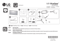 www.lg.com 24GN600 32GN600 27GN600 24GN60T 32GK60W a + or ou o b 24GN600 24GN60T 27GN600 32GN600 32GK60W English Depending on country / Français Selon les pays / Español En función del país English Quick Setup Guide Please read this manual carefully before operating your set and retain it for future reference. Lea atentamente este manual antes de poner en funcionamiento el equipo y consérvelo para futuras consultas. *MBM67467122* (2105-REV05) Printed in China English It is recommended that use the supplied components. Français Il est recommandé d’utiliser les composants fournis. Español Se recomienda utilizar los componentes suministrados. www.lg.com English You can download manuals from the LGE website. Français Vous pouvez télécharger les guides pour ce produit à partir du site Web de LGE. Español Puede descargar los manuales del sitio web de LGE. 1 3 24GN600 24GN60T 2 4 1 3 27GN600 32GN600 32GK60W 2 4 (for 24GN600,24GN60T,27GN600) English • Using a DVI to HDMI / DP (DisplayPort) to HDMI cable may cause compatibility issues. • Make sure to use the supplied cable. Otherwise, this may cause the device to malfunction. Français • L'utilisation d'un câble DVI à HDMI/DP (DisplayPort) à HDMI peut présenter des problèmes de compatibilité. • Assurez-vous d’utiliser le câble fourni avec le produit. Le non-respect de cette consigne peut entraîner un dysfonctionnement du périphérique. Español • El uso de un cable de DVI a HDMI / DP (DisplayPort) a HDMI puede causar problemas de compatibilidad. • Asegúrese de utilizar el cable suministrado con el producto. De lo contrario, puede provocar que el dispositivo no funcione correctamente. or ou o Dimensions (Width x Height x Depth) Kg With Stand English 24GN600 24GN60T 27GN600 32GN600 32GK60W With Stand Without Stand 540.8 x 408.9 x 180.5 (mm) 21.2 x 16 x 7.1 (inches) 540.8 x 323.8 x 42.8 (mm) 21.2 x 12.7 x 1.6 (inches) 614.2 x 454.2 x 224.8 (mm) 614.2 x 364.8 x 51.7 (mm) 24.1 x 17.8 x 8.8 (inches) 24.1 x 14.3 x 2.0 (inches) 714.7 x 515.1 x 224.8 (mm) 714.7 x 428 x 77.5 (mm) 28.1 x 20.2 x 8.8 (inches) 28.1 x 16.8 x 3.0 (inches) Français 3.5 kg (7.7 lbs) 5.8 kg (12.7 lbs) 5.1 kg (11.2 lbs) 5.9 kg (12.9 lbs) 5.2 kg (11.4 lbs) Socle non inclus Socle inclus 2560 x 1440 @120 Hz Socle non inclus 24GN600 24GN60T 540,8 x 408,9 x 180,5 (mm) 21,2 x 16 x 7,1 (po) 540,8 x 323,8 x 42,8 (mm) 21,2 x 12,7 x 1,6 (po) 4,0 kg (8,8 lb) 3,5 kg (7,7 lb) 27GN600 614,2 x 454,2 x 224,8 (mm) 24,1 x 17,8 x 8,8 (po) 614,2 x 364,8 x 51,7 (mm) 24,1 x 14,3 x 2,0 (po) 5,8 kg (12,7 lb) 5,1 kg (11,2 lb) 32GN600 32GK60W 714,7 x 515,1 x 224,8 (mm) 28,1 x 20,2 x 8,8 (po) 714,7 x 428 x 77,5 (mm) 5,9 kg (12,9 lb) 5, 2 kg (11,4 lb) 1920 x 1080 @ 144 Hz 28,1 x 16,8 x 3,0 (po) Pie incluido 1920 x 1080 @ 144 Hz Résolution recommandée Poids Dimensiones (ancho x alto x profundo) Español Without Stand 4.0 kg (8.8 lbs) Dimensions (largeur x hauteur x profondeur) Socle inclus Recommend Resolution Weight Resolución recomendada Peso Pie no incluido Pie incluido 2560 x 1440 @120 Hz Pie no incluido 24GN600 24GN60T 540,8 x 408,9 x 180,5 (mm) 540,8 x 323,8 x 42,8 (mm) 4,0 kg 3,5 kg 27GN600 614,2 x 454,2 x 224,8 (mm) 614,2 x 364,8 x 51,7 (mm) 5,8 kg 5,1 kg 32GN600 32GK60W 714,7 x 515,1 x 224,8 (mm) 714,7 x 428 x 77,5 (mm) 5,9 kg 5, 2 kg 1 920 x 1 080 @144 Hz 24GN600/24GN60T: 19 V 32GN600/32GK60W: 19 V Potencia requerida Salida Especificaciones de Adaptador de ca/cc Entrada 2,0 A 3,3 A 24GN600/24GN60T: 19 V 32GN600/32GK60W: 19 V 27GN600: 19 V 2,1 A 3,42 A 100-240 V ~ 50/60 Hz 1,1 A o 1,2 A 100-240 V ~ 50/60 Hz 1,2 A o 1,4 A o 1,5 A 100-240 V ~ 50/60 Hz 1,5 A o 1,6 A 2,4 A 27GN600: 19 V 2,53 A 2 560 x 1 440 @120 Hz ">