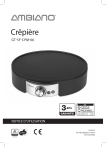 Crêpière GT-SF-CPM-06 ans GARANTIE SAV 01 40 82 92 26 (gratuitement) Mail : gt-support @zeitlos-vertrieb.de AN FR 2006050119547 14/2025 NOTICE D’UTILISATION 14/2025 AN FR 2006050119547 PO51032998 ID 1111293154 Sommaire Sommaire 2 Généralités Introduction Déclaration de conformité UE Utilisation conforme 3 3 3 3 Composants / Contenu de l’emballage 4 Sécurité 5 Consignes générales de sécurité 5 Risques pour les enfants et les personnes dont les facultés sont limitées 5 Risques liés à l’utilisation d’appareils électriques 6 Risques liés à l’utilisation de la crêpière 7 Explication des symboles et autres informations 10 2 Installation et montage Avant la première utilisation 11 11 Utilisation Utilisation de la crêpière 13 13 Pannes et solutions 16 Maintenance, nettoyage et entretien 17 Conseils et recettes 18 Recette de base de pâte à crêpes 18 Crêpe au jambon et au fromage 19 Données techniques 20 Recyclage 20 Carte de garantie 23 Généralités Introduction Nous vous remercions d’avoir choisi un crêpière Ambiano. Vous venez d’acquérir un produit de qualité qui satisfait aux normes de performance et de sécurité les plus élevées. Afin de manipuler correctement l’appareil et de garantir sa longévité, nous vous recommandons de respecter les indications suivantes. Veuillez lire attentivement cette notice d’utilisation et notamment les consignes de sécurité avant la mise en service de l’appareil. Vous y trouverez un certain nombre de recommandations importantes et utiles qui doivent être comprises et observées par tous les utilisateurs avant la mise en service. Conservez cette notice d’utilisation et donnez-la avec l’appareil si vous le remettez à une autre personne. Déclaration de conformité UE La conformité du produit aux normes prescrites par la loi est garantie. Vous trouverez la déclaration de conformité intégrale sur Internet sous www.gt-support.de. L’appareil répond aux exigences de la loi sur la sécurité des produits. Ceci est prouvé par le sigle GS de l’institut de contrôle indépendant : ID 1111293154 Utilisation conforme L’appareil est exclusivement réservé à la préparation de crêpes/ galettes. De plus, l’appareil n’est pas destiné à une utilisation professionnelle mais uniquement à une utilisation privée. Il ne peut être utilisé par les employés de magasins, bureaux et autres établissements industriels, dans les propriétés agricoles, ou par les clients d’hôtels, motels et autres types d’hébergement comme les chambres d’hôtes. Toute autre utilisation ou modification de l’appareil n’est pas conforme et est strictement interdite. Nous ne pouvons être tenus responsables des dommages survenus à la suite d’une utilisation non conforme ou incorrecte. Éditeur de la notice : Globaltronics GmbH & Co. KG Bei den Mühren 5 20457 Hamburg Allemagne [email protected] 3 Composants / Contenu de l’emballage C A D B E F A) B) C) D) E) F) G) Plaque chauffante Thermostat Voyant d’alimentation secteur Voyant de fonctionnement Spatule à crêpes Râteau à crêpes Notice d’utilisation et carte de garantie (non illustrées) Sous réserve de modifications techniques et visuelles. 4 B C D Sécurité Veuillez lire et respecter les consignes de ­sécurité énoncées ciaprès. Le non-respect de ces consignes peut engendrer des risques d’accident et de blessures, ainsi que des dommages matériels ou des dysfonctionnements de l’appareil. Consignes générales de sécurité Risques pour les enfants et les personnes dont les facultés sont limitées - Les enfants âgés de plus de 8 ans et les personnes dont les facultés physiques, sensorielles ou mentales sont limitées ou les personnes manquant d’expérience et/ ou de connaissances sont autorisés à utiliser cet appareil, à condition qu’ils soient surveillés ou qu’ils aient été instruits quant à son usage sûr et qu’ils aient compris les dangers en résultant. - Le nettoyage et l’entretien de l’appareil ne doivent pas être effectués par des enfants de moins de 8 ans. Passé cet âge, les enfants peuvent réaliser ces opérations s’ils sont surveillés. Les enfants de moins de 8 ans doivent être tenus à distance de l’appareil et du cordon. - Les enfants ne doivent pas jouer avec l’appareil. Les enfants ne sont pas conscients du danger inhérent à l’utilisation d’appareils électriques. Par conséquent, utilisez et conservez l’appareil hors de portée des enfants de moins de 8 ans. Ne laissez pas pendre le cordon électrique afin d’éviter que quelqu’un ne tire dessus. - Conservez l’emballage hors de portée des enfants Risque d’asphyxie ! 5 Risques liés à l’utilisation d’appareils électriques - Branchez l’appareil uniquement sur une prise secteur avec terre, installée de manière conforme et dont la tension de secteur respecte la plaque signalétique. - Si le cordon électrique est endommagé, seul un atelier spécialisé désigné par le constructeur est autorisé à le remplacer afin d’éviter tout risque de blessure, d’accident ou de dégâts à l’appareil. - Veillez à ce que la prise secteur se trouve à proximité de l’appareil et soit facilement accessible de façon à ce que l’appareil puisse être rapidement débranché en cas d’accident. - Seuls des ateliers spécialisés et habilités sont autorisés à effectuer les réparations. Les appareils réparés par un personnel non spécialisé représentent un danger pour l’utilisateur. 6 - Ne laissez pas l’appareil sans surveillance pendant qu’il fonctionne afin d’éviter tout accident. - Afin d’éviter tout accident, n’utilisez jamais la même prise secteur avec terre pour brancher simultanément plusieurs appareils ménagers (par exemple sur une triplite). - Ne plongez jamais l’appareil dans l’eau et ne l’utilisez pas en plein air, car ce dernier ne doit en aucun cas être exposé à la pluie
