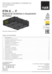 Instructions d‘installation, d‘utilisation et de maintenance Français ETA K ... F Appareil de ventilation à récupération de chaleur Made in EU 2018 Exemple de configuration présenté TABLE DES MATIÈRES 1. 2. 3. 4. 5. 6. 7. 8. 9. 10. 11. 12. 13. 14. 15. 16. 17. 18. 19. AVANT-PROPOS. . . . . . . . . . . . . . . . . . . . . . . . . . . . . . .163737 . . . . . . . . . . . . . . . . . . . . . . . . . . . . . . . . . . . . . . . . . . . . . . 2 INFORMATIONS ESSENTIELLES . . . . . . . . . . . . . . . . . . . . . . . . . . . . . . . . . . . . . . . . . . . . . . . . . . . . . . . . . . . . . . . . 2 CONSIGNES ESSENTIELLES DE SÉCURITÉ . . . . . . . . . . . . . . . . . . . . . . . . . . . . . . . . . . . . . . . . . . . . . . . . . . . . . . . 3 CONSIGNES À RESPECTER . . . . . . . . . . . . . . . . . . . . . . . . . . . . . . . . . . . . . . . . . . . . . . . . . . . . . . . . . . . . . . . . . . . . 8 INFORMATION SUR LES PRODUITS . . . . . . . . . . . . . . . . . . . . . . . . . . . . . . . . . . . . . . . . . . . . . . . . . . . . . . . . . . . . . 8 CONTENU DE LA LIVRAISON . . . . . . . . . . . . . . . . . . . . . . . . . . . . . . . . . . . . . . . . . . . . . . . . . . . . . . . . . . . . . . . . . 10 CARACTÉRISTIQUES TECHNIQUES . . . . . . . . . . . . . . . . . . . . . . . . . . . . . . . . . . . . . . . . . . . . . . . . . . . . . . . . . . . . 11 DIMENSIONS . . . . . . . . . . . . . . . . . . . . . . . . . . . . . . . . . . . . . . . . . . . . . . . . . . . . . . . . . . . . . . . . . . . . . . . . . . . . . . 14 TRANSPORT ET STOCKAGE . . . . . . . . . . . . . . . . . . . . . . . . . . . . . . . . . . . . . . . . . . . . . . . . . . . . . . . . . . . . . . . . . . 15 INSTALLATION ET MONTAGE . . . . . . . . . . . . . . . . . . . . . . . . . . . . . . . . . . . . . . . . . . . . . . . . . . . . . . . . . . . . . . . . . 16 BRANCHEMENT ÉLECTRIQUE. . . . . . . . . . . . . . . . . . . . . . . . . . . . . . . . . . . . . . . . . . . . . . . . . . . . . . . . . . . . . . . . . 20 MISE EN SERVICE . . . . . . . . . . . . . . . . . . . . . . . . . . . . . . . . . . . . . . . . . . . . . . . . . . . . . . . . . . . . . . . . . . . . . . . . . . 23 FONCTIONNEMENT . . . . . . . . . . . . . . . . . . . . . . . . . . . . . . . . . . . . . . . . . . . . . . . . . . . . . . . . . . . . . . . . . . . . . . . . . 24 ENTRETIEN ET NETTOYAGE . . . . . . . . . . . . . . . . . . . . . . . . . . . . . . . . . . . . . . . . . . . . . . . . . . . . . . . . . . . . . . . . . . 40 INTERFACE DE COMMUNICATION MODBUS . . . . . . . . . . . . . . . . . . . . . . . . . . . . . . . . . . . . . . . . . . . . . . . . . . . . . 43 EXTENSION ET TRANSFORMATION . . . . . . . . . . . . . . . . . . . . . . . . . . . . . . . . . . . . . . . . . . . . . . . . . . . . . . . . . . . . 53 DURÉE DE VIE ET ÉLIMINATION . . . . . . . . . . . . . . . . . . . . . . . . . . . . . . . . . . . . . . . . . . . . . . . . . . . . . . . . . . . . . . . 53 RECHERCHE ET ÉLIMINATION DES PANNES . . . . . . . . . . . . . . . . . . . . . . . . . . . . . . . . . . . . . . . . . . . . . . . . . . . . . 53 PLANS DE CÂBLAGE . . . . . . . . . . . . . . . . . . . . . . . . . . . . . . . . . . . . . . . . . . . . . . . . . . . . . . . . . . . . . . . . . . . . . . . . 57 ruck Ventilatoren GmbH Max-Planck-Str. 5 D-97944 Boxberg-Windischbuch Tél. +49 7930 9211-300 Fax. +49 7930 9211-166 [email protected] www.ruck.eu Les instructions d‘origine ont été rédigées en allemand. Mise à jour des informations print 10.02.2025 Sous réserve de modifications FR 1. AVANT-PROPOS Chers clients, Merci d‘avoir choisi notre appareil. Avant d‘utiliser l‘appareil, lisez attentivement les instructions d‘installation, d‘utilisation et de maintenance. Si vous avez des questions, veuillez contacter : (Coordonnées cf. page 1) Les données fournies dans ces instructions d’installation, d’utilisation et de maintenance ne concernent que la description du produit. Une déclaration relative à une propriété ou une qualification précise pour une certaine application ne peut être déduite de nos données. Les données fournies ne dispensent pas l‘utilisateur de ses propres évaluations et examens. Tous les droits sont la propriété du fabricant, même dans le cas de demandes de protection. Tout pouvoir de disposition, tel que les droits de copie et de transfert, nous appartient. 2. INFORMATIONS ESSENTIELLES Ces instructions de service comprennent des informations essentielles pour procéder au montage sûr et conforme de l‘appareil, pour son transport, sa mise en service, son utilisation, son entretien, son démontage et l‘élimination de pannes simples. L‘appareil a été fabriqué conformément aux règles de l‘art dans le domaine technique. Il existe toutefois un risque de dommages aux personnes et aux biens en cas de non-respect des consignes de sécurité et avertissements de base mentionnés ci-après. ■■ Lisez attentivement et intégralement ces instructions de service avant d‘utiliser l‘appareil. ■■ Conservez les instructions de service de façon à ce qu‘elles soient accessibles en permanence à tous les utilisateurs. ■■ Si vous transmettez l‘appareil à un tiers, remettez-lui toujours les instructions de service. 2.1. Autres documents applicables Outre les instructions d‘installation, d‘utilisation et de maintenance, vous devez respecter les données et documents suivants relatifs à l’appareil : Plaque signalétique 2 | ETA K ... F Normes applicables ■■ DIN VDE 0100-100 ■■ DIN EN 60204-1 ■■ DIN EN ISO 13857 ■■ DIN EN ISO 12100 ■■ VDMA 24186-1 Documents disponibles sur www.ruck.eu ■■ Instructions d‘installation, d‘utilisation et de maintenance ■■ Déclaration de conformité ■■ Déclaration d‘incorporation CE (Directive 2006/42/ CE) ■■ Protocole de mise en service (formulaire) ■■ Textes d’appels d’offres ■■ Dessins cotés ■■ Dessin technique format