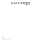 870 8.5 Manual en Español Latino Americano: http://www.schwinnfitness.com GUIDE D'ASSEMBLAGE/GUIDE DU PROPRIÉTAIRE TABLE DES MATIÈRES Précautions de sécurité importantes 3 Étiquettes d'avertissement de sécurité/numéro de série 6 Instructions de mise à la terre 7 Procédures d'arrêt d'urgence 7 Spécifications 8 Pièces9 Quincaillerie10 Outils10 Avant l'assemblage 10 Assemblage11 Déplacement de l'appareil 22 Dépliage de l'appareil 23 Mise à niveau de l'appareil 24 Caractéristiques25 Caractéristiques de la console 26 Fonctionnement34 Démarrage 34 Mode Démarrage/Repos 35 Programme Quick Start (démarrage rapide) 36 Profils d'utilisateur 36 Programmes de profil 39 Affichage de comparaison des rythmes 43 Affichage de cote de condition physique 44 Pause ou arrêt 45 Résultats/Mode récupération 46 Statistiques GOAL TRACK 46 Mode de configuration de la console 48 Entretien49 Nettoyage 49 Ajustement de la courroie de marche 50 Alignement des courroies de marche 50 Lubrification des courroies de marche 51 Pièces d'entretien 54 Dépannage56 Garantie59 Pour valider la couverture de garantie, veuillez garder votre preuve d'achat originale et prendre note des informations suivantes : Numéro de série __________________________ Date d'achat ____________________ Pour enregistrer la garantie de votre produit, rendez-vous sur : www.schwinnfitness.com/register Ou composez le 1 (800) 605-3369 Si vous avez des questions ou si vous éprouvez des problèmes avec votre produit, veuillez composer le 1 (800) NAUTILUS (628–8458). Nautilus, inc., 1 (800) NAUTILUS/1 (800) 628-8458, www.NautilusInc.com – Service à la clientèle : Amérique du Nord (800) 6053369, [email protected] | À l'extérieur des États-Unis www.nautilusinternational.com | Imprimé en Chine | © 2016 Nautilus, Inc. | ® indique les marques de commerce enregistrées aux États-Unis. Ces marques peuvent être enregistrées dans d’autres pays ou être autrement protégées par la common law. Schwinn, le logo Schwinn Quality, Schwinn 870, Schwinn Connect, Nautilus, Bowflex, et Universal sont des marques de commerce détenues par ou utilisées avec l’autorisation de Nautilus, Inc. | Polar®, OwnCode® , iTunes®, GoogleTM, MyFitnessPal®, Under Armour®, WD-40® et Lube-N-Walk® sont des marques déposées de leurs propriétaires respectifs. La marque et les logos Bluetooth® sont des marques de commerce sous propriété Bluetooth SIG, Inc., et toute utilisation de telles marques par Nautilus, Inc. est sous licence. 2 PRÉCAUTIONS DE SÉCURITÉ IMPORTANTES Lorsque vous utilisez un appareil électrique, des précautions de base doivent toujours être suivies, y compris : Cette icône indique une situation susceptible d'être dangereuse, laquelle, si elle n'est pas évitée, peut entraîner la mort ou des blessures graves. Veuillez vous conformer aux avertissements suivants : Lisez et assimilez tous les avertissements apposés sur cet appareil. Lisez attentivement et assimilez les instructions d'assemblage. Lisez et assimilez entièrement ce guide. Conservez le Guide pour consultation future. Pour réduire les risques de décharge électrique ou d'utilisation non supervisée de l'appareil, débranchez toujours le cordon d'alimentation de la prise de courant murale et de l'appareil immédiatement après utilisation et avant de le nettoyer. ! fin de réduire les risques de brûlures, d'électrocution ou de blessures corporelles, lisez A et assimilez dans son intégralité le Guide du propriétaire. Le non-respect de ces directives peut entraîner une électrocution sérieuse ou mortelle ou d'autres blessures graves. • Toujours éloigner les enfants et toute autre personne de l'appareil que vous assemblez, en tout temps. • Ne connectez pas le module d'alimentation à l'appareil avant d'y être invité; • L'appareil ne doit jamais être laissé sans surveillance lorsqu'il est branché. Débranchez-le de la prise électrique lorsqu'il n'est pas utilisé et avant d'installer ou de retirer des pièces. • Avant chaque utilisation, inspectez cet appareil afin de détecter des dommages au cordon d'alimentation, à la prise d'alimentation électrique, des pièces lâches ou des signes d'usure. Dans ces conditions, ne l'utilisez pas. Communiquez avec le service à la clientèle de Nautilus pour obtenir des renseignements relatifs à la réparation. Non destiné à des personnes souffrant de conditions médicales si ces conditions peuvent empêcher l'utilisation sécuritaire du tapis roulant ou présentent un risque de blessure pour l'utilisateur. • • • N'échappez pas ou n'insérez pas d'objets dans les ouvertures de l'appareil. N'utilisez jamais ce tapis roulant si les ouvertures d'aération sont bloquées. Assurez-vous que les ouvertures ne sont pas obstruées par de la poussière, des cheveux ou autres. • N'assemblez pas cet appareil à l'extérieur ou dans un endroit humide ou mouillé. • Assurez-vous que l'assemblage est fait dans un espace de travail adéquat, loin des endroits passants et de toute personne. • Certains composants de l'appareil sont lourds et encombrants. Faites appel à une deuxième personne pour procéder aux étapes d'assemblage qui concernent ces pièces. Ne réalisez pas seul les étapes d'assemblage nécessitant le levage d'objets lourds ou des mouvements difficiles. • Placez l'appareil sur une surface solide, de niveau et horizontale. • Ne tentez pas de modifier la conception ou la fonctionnalité de cet appareil. Cela peut compromettre la sécurité de cet appareil et annulera la garantie. • Si des pièces de rechange sont nécessaires, utilisez exclusivement des pièces de rechange et la quincaillerie de marque Nautilus. Le fait de ne pas utiliser de pièces de rechange authentiques pourrait engendrer un risque pour les utilisateurs, empêcher l'appareil de fonctionner correctement et annuler la garantie. • N'utilisez pas l'appareil tant qu'il n'est pas complètement asse