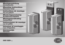 All manuals and user guides at all-guides.com Montageanleitung Umrissleuchte Mounting Instructions Clearance lamp Instructions de montage Feu de gabarit Monteringsanvisning Breddmarkeringslykta Montagehandleiding Contourlicht Instrucciones de montaje Luz de gálibo Istruzioni di montaggio Luce d’ingombro Asennusohje Äärivalot 005 020-... All manuals and user guides at all-guides.com Lieferumfang Kit includes Fourniture Leveransomfattning Inhoud set Volumen del suministro Dotazione die fornitura Osaluettelo 005 020-00 005 020-03 005 020-04 005 020-07 005 020-08 005 020-01 005 020-06 005 020-09 005 020-14 005 020-02 005 020-11 005 020-12 2 005 020-05 005 020-13 All manuals and user guides at all-guides.com Der Anbau muss nach ECE R48 erfolgen. Le montage est à réaliser selon ECE R48. Il montaggio deve avvenire secondo la direttiva ECE R48. El montaje debe efectuarse conforme a la norma ECE R48. Schutzklasse IP 54 K Classe de protection IP 54 K Classe di protezione IP 54 K Protección IP 54 K Installation must take place in accordance with ECE R48. Inbouw dient plaats te vinden in overeenstemming met ECE R48. Monteringen ska utföras i enlighet med ECE-R48. Valo on asennettava ECE R48:n mukaan. Protection IP 54 K Beschermklasse IP 54 K Skyddsklasser IP 54 K Kotelointiluokka IP 54 K 3 Benötigtes Werkzeug Tools required Outillage nécessaire Nödvändiga verktyg Noodzakelijk gereegschap Herramientas necesarias Ø 3 / 5 / 6,5 mm Utensili necessari Tarvittavat työkalut SW 8 All manuals and user guides at all-guides.com 005 020-00, 005 020-03, 005 020-04, 005 020-07, 005 020-08 Ø3 mm 4 Ø5 mm 6.3 mm Ø3 mm 1.5 All manuals and user guides at all-guides.com 005 020-01 005 020-02 005 020-06 005 020-11 005 020-09 005 020-12 M6 3,5 Nm 005 020-14 Ø 6,5 mm M6 1,0 Nm 5 Ø 6,5 mm All manuals and user guides at all-guides.com 005 020-05 005 020-13 Ø3 mm Ø5 mm 6 Ø3 mm All manuals and user guides at all-guides.com Zubehör Accessories Accessoires Tillbehör Toebehoren Accesorios Lichtgehäuse Boddy/Lens Boîtier lumineux Lyktglas Lamphuis Plástico-carcasa Plastica Lasi rot/weiß red/white rouge/blanc röd/vit rood/Wit rojo/blanco rosso/bianco punainen/valkoinen Accessori Lisätarvikkeet rood/zwart rojo/negro rosso/nero punainen/musta rot/schwarz red/black rouge/noir röd/svart 7 9 9EL 132 215-001 9EL 132 215-011 12 V 24 V 8GP 002 067-121 8GP 002 067-241 All manuals and user guides at all-guides.com © Hella KG a A Hueck & Co., D-59552 Lippstadt 460 903-40 10.07 ">