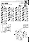 G4910741 MONTAGE HANDLEIDING INSTRUCTIONS DE MONTAGE - ASSEMBLY INSTRUCTION - MONTAGE ANLEITUNG - STRUZIONI DI MONTAGGIO INSTRUÇÕES DE MONTAGEM - INSTRUCCIONES DE MONTAJE - MONTAŽU UPUTE YORK KO6 commode - commode - commode 90min 8x30 A 12 B G460086 E 4 3 2 M4x28 L 12 2 G4602121 P 6 G4401258 R T 8 2 G430101 M4x12 4 G460858 W G460357 6 G4401256 S 8 V 3.5x16 O G430100 G460859 Y 6 4 G460266 K G4600781 12 H 4 G470013 7x50 N G4608717 U 3 6 G470007 G G4608832 2 D 8 G440107 J G4201605 Q 4 G440102 G4608831 M C G460252 F G460265 I 8 G460249 4x40 6.3x10.5 X 2 G4201606 8 G470077 4 G460811 5 KG 1 5 9 15 13a 13b 5 14 14 3 10 4 12 8 7 6 6 2 11 12-2014 11 NL ONDERHOUDSTIPS F Oppervlakte kunststofdecor houtstructuur. Onderhoud: met lichte vochtige doek reinigen en hierna direct droog wrijven. De meubels zijn niet voor vochtige ruimten (bad, keuken etc.) bestemd. Vocht op het bovenblad direct opnemen. Montagetekening opbergen. Het meubel moet door een vakkundig persoon, zoals in de handleiding staat beschreven worden gemonteerd. Door verkeerde montage kunnen gevaren ontstaan. D CONSEILS D' ENTRETIEN Panneaux de particules revêtus d'un film polymère. Entretien: utiliser un chiffon légèrment humide et repasser de suite avec un autre sec. Meuble inadapté aux pièces humides (bain, cuisine etc.). Toute trace de liquide est à essuyer immédiatement. Notice de montage à conserver. Le meuble doit être monté par une personne spécialisée en la matière, conformément à l'instruction de montage. En cas d'erreur de montage, des dangers peuvent se manifester. HINWEISE FÜR DIE PFLEGE Oberflächen Kunststoff-Dekor Holznachbildung. Pflegehinweis: Mit leicht feuchtem Tuch reinigen, sofort trocken nachwischen. Möbel nicht für Feuchträume geeignet (Bad, Küche etc.). Nässe auf Oberfläche unverzüglich wegwischen. Aufbauanleitung aufbewahren. Das Möbel muss durch eine fachkundige Person entsprechend der Aufbauanleitung montiert werden. Bei fehlerhafter Montage kann es zo Gefahren kommen. EN ADVISE ON MAINTENANCE All surfaces in laminated wood colour finishes. Maintenance: clean with slightly moistened cloth, wipe dry immediately. Not suited for damp locations (kitchen, bathroom etc.). Wipe off wetness at once. Retain manual instruction. The unit must be put together by a specialist according to the assembly instructions. Hazards may arise in case of incorrect assembly. 0 10 20 30 40 50 60 mm 1 O+P+N A O+P C O+P+N A C 4x O+P 7 O+P N I+2xK C A O+P N N + A C 1x N 8x30 A 4 C G460086 3.5x16 K 2 G470013 YORK KO6 4 I G460252 7x50 N 6 G4600781 1 G4608831 O 6 G4401258 P 6 G4401256 12-2014 2 B D I+2xK Y G 9 E D Y G T+2xX B 11 E 1x 2x B 2x 2 G460249 4x40 D 2 E G470007 3.5x16 K 2 G470013 2 G G460265 T 2 I G440107 1 6.3x10.5 X G460858 2 G470077 1 G4608831 Y 2 G460811 3 2x 7 YORK KO6 12-2014 4 D B I+2xK D B Y G 10 Y G E U+2xX 11 E 1x B 2x 2x 2 G460249 4x40 D 2 E G470007 3.5x16 K 2 G G460265 2 G470013 U 2 I G440107 1 G460859 6.3x10.5 X 2 G470077 1 G4608831 Y 2 G460811 5 A A 12 A A 8x30 A 4 G460086 YORK KO6 12-2014 6 12 2x 7 15 YORK KO6 12-2014 8 H H B B 1 B B H H 4x B 4 H G460249 4 G460266 9 T+2xX C C 13b A U+2xX 13a C C A 180° A 13a 4x A 8x30 A 4 G460086 C 4 G460252 YORK KO6 T 1 G460858 U 1 G460859 6.3x10.5 X 4 G470077 12-2014 10 13b 13a 2 1 1 4x 11 4x YORK KO6 12-2014 12 12xQ 12x 90° Q 12 G4608717 13 D D 4x40 D 2 G470007 YORK KO6 12-2014 14 S S 14 5 S 2x S S 8x 8 G430101 15 R R 3 R R 4x R 4 G430100 YORK KO6 12-2014 16 R 4 R R R 4x R 4 G430100 17 4 3 2x 1 2 YORK KO6 12-2014 18 8 19 F 6 F 2x F 4 G440102 YORK KO6 12-2014 20 2xV W 'CLICK' 6 M 1 L 6 M4x28 L 2 M G4602121 V 2 3 G4201605 M4x12 4 W G460357 2 2 G4201606 21 J+2xK J+2xK 2 J+2xK 3x J 3 G4608832 YORK KO6 3.5x16 K 6 G470013 12-2014 22 2 'CLICK' YORK KO6 12-2014 YORK KO6 CARTE SAV - SERVICE CARD - SERVICEKARTE GEGEVENS AANKOPER INFORMATIONS ACHETEUR - BUYER INFORMATION - KAUFER INFORMATIONEN WINKEL AANKOOPDATUM MAGASIN - SHOP - GESCHÄFT DATE DE L'ACHAT - DATE OF PURCHASE - KAUFDATUM PLAATS REFERENTIE LIEU - TOWN - ORT REFERENCE - REFERENCE - REFERENZ SERVICE SERVICE PAGINA KLEUR COULEUR - COLOR - FARBE 1 T5322685 2 T5222568 3 T5322696 4 T5322697 5 G4311262 6 G4807607 7 T5322687 8 T5323014 9 T5322689 10 T5322690 11 T5222564 5 9 15 13a 13b 5 14 14 11 3 10 4 12 7 6 12 T5322694 13 T5322701 14 G100896 L 493 B348 15 G100946 L 1107 B757 8 11 6 2 TOELICHTING EXPLICATIONS - EXPLANATION - ERKLARUNG 12-2014 1 YORK KO6 CARTE SAV - SERVICE CARD - SERVICEKARTE GEGEVENS AANKOPER INFORMATIONS ACHETEUR - BUYER INFORMATION - KAUFER INFORMATIONEN WINKEL AANKOOPDATUM MAGASIN - SHOP - GESCHÄFT DATE DE L'ACHAT - DATE OF PURCHASE - KAUFDATUM PLAATS REFERENTIE LIEU - TOWN - ORT REFERENCE - REFERENCE - REFERENZ SERVICE SERVICE PAGINA KLEUR COULEUR - COLOR - FARBE 8x30 A B G460086 E C G460249 I Q O G4600781 U P S G430100 G4401256 T G430101 M4x12 V G460859 G4602121 G4401258 R G4608717 W G460357 M4x28 L G470013 7x50 N G460266 3.5x16 K G4608832 G4201605 H G440107 J M G470007 G G440102 G4608831 D G460252 F G460265 4x40 G460858 6.3x10.5 X G4201606 G470077 Y TOELICHTING EXPLICATIONS - EXPLANATION - ERKLARUNG 12-2014 G460811 ">