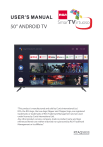 USER’S MANUAL 50” ANDROID TV “This product is manufactured and sold by Curtis International Ltd. RCA, the RCA logo, the two dogs (Nipper and Chipper) logo, are registered trademarks or trademarks of RCA Trademark Management and are used under license by Curtis International Ltd. Any other product, service, company, trade or product name and logo referenced herein are neither endorsed nor sponsored by RCA Trademark Management or its affiliates.” RTAQ5033 TABLE OF CONTENTS IMPORTANT SAFETY INSTRUCTIONS PRECAUTIONS AND REMINDERS BUTTON CONTROL AND PERIPHERAL CONNECTION OPERATING INSTRUCTIONS SPECIFICATIONS TROUBLESHOOTING WARRANTY CARD 1 IMPORTANT SAFETY INSTRUCTIONS Stand & screws(set) x1 2 PRECAUTIONS AND REMINDERS If you are going to clean the product,Unplug the TV,use soft fabric,no water,never chemicals. 3 IMPORTANT INFORMATION 4 ATTACTHING OR REMOVING THE STAND 4 5 IDENTIFYING FRONT AND REAR PANEL 200mm x 200mm 12 12 6 7 CONNECTION SUGGESTIONS USB LAN OPTICAL USB HDMI 4 HDMI 3 HDMI 2 8 AV IN RF W R R R Y Y W W Y USB LAN OPTICAL USB HDMI 4 HDMI 3 9 HDMI 2 AV IN RF USB LAN OPTICAL USB HDMI 4 HDMI 3 HDMI 2 AV IN RF HDMI 10 Optical... USB LAN OPTICAL USB HDMI 4 HDMI 3 HDMI 2 AV IN OPTICAL OPTICAL OPTICAL 11 RF BUTTON CONTROL AND PERIPHERAL CONNECTION BUTTON CONTROL Middle key In the standby mode, press to turn on the TV. In the boot state, long press to shut down. Under the menu page , function equivalent to the OK key. Up and down keys In the non-menu page, you can adjust the TV channel under the program addition and subtraction; Under the menu page, you can move the cursor up and down. Left and right keys In the non-menu page,Under the menu page, press the left and right keys to adjust the volume addition and subtraction. PERIPHERAL CONNECTION USB LAN OPTICAL 1 2 USB 3 HDMI 4 HDMI 3 HDMI 2 AV IN RF 4 5 6 7 8 USB HDMI1(ARC) HEADPHONE 9 10 11 1. LAN 2. Optical out terminal. 3/9. to access media function of TV. (Support format: TXT for Text. MP3 for music. JPG, JPEG, BMP and PNG for photo. MP4, 3GPP, AVI, MKV and ASF for movie.) 4. HDMI4 input terminal. 5. HDMI3 input terminal. 6. HDMI2 input terminal. 7. AV input terminal. 8. RF antenna. 10. HDMI1(ARC) input terminal. 11. Earphone terminal. 12 OPERATING INSTRUCTIONS USING THE REMOTE CONTROL 1. POWER: 2. INPUT: INPUT 3. 4. CC 5. CC: Press to select the CC mode. 6. 7. S.MODE INFO P.MODE : 8. OK 9. 10. 11. S.MODE: 12. INFO: 13. P.MODE: 14. 15. 16. 17. 18. Press to open the search interface. 19. VOL+/-: + + VOL CH - - 1 2 3 4 5 6 7 8 9 0 20. CH+/CH-: 21. NUMERIC KEY: 22. 23. 24. 13 INITIAL SETUP The first you turn your TV, the setup wizard will guide you through setting up basic settings. Please according to the Text Tip to First Time Setup. If you are using an infrared remote control, please ignore the Text Tip and press the back button to exit this page. Agree to Google to get the location information of your device to get more features,choose "YES" to accept. This function is used for he Bluetooth remote control pair code. By agreeing to automatically send diagnostic information to Google to improve discriminative power, choose "YES" to accept. Press / to select the system language and press OK to confirm the language. Connect your Android phone to your TV,select "Continue" to continue the connection,and choose "Skip" to skip this step. 1.Your device is powered by Android TV and press the key to select the browsing feature. 2.You can get more apps from Google Play and press the key to go to the next screen. 3.Transfer photos and other content to the TV via the built-in chromecast, press OK to complete the browsing. Press / to select the the Wifi to connect, press OK and enter the password to confirm the connection is successful. Press By accepting the Google Terms of Service to improve the product experience,select "Accept" to accept this condition. 14 / to select speed of Text to Speech. To select the Tuner mode for searching,press / to select and press OK to confirm. Used to set your device's password to ensure security and privacy. Press OK to pop the soft keyboard , and use the remote control to enter the 4 - digit password automacically jump to the next interface . Press / to select whether to search,select "Scan" to search,select "Skip Scan" to skip the search. Confirm the password again and keep it consistent . Use the remote control to enter the password and complete the password confirmation . Press OK to complete the setup. Press / to select the time zone you want,and press OK to select. Press the OK to agree to Disclaime(Disclaimer). After setting is complete,You can watch TV. For selecting the mode,press / key to select Home mode and press OK to confirm. HOME SCREEN Press the HOME button to go to the HOME page. Confirm the selected mode again,select "Yes" to confirm the selected mode,and select "No" to return to the previous step. Press / to turn on or off the always available features of chrome cast. 3 15 Open the google assistant or start a voice search. Among the applications installed on the TV, the icons for the favourite applications are shown inside here.(Favourite applications can be added/deleted/ changed its order by users.) Apps: Click to jump to Apps screen where all the installed applications are listed. Notification: Display the notifications. Inputs: Icon to select an input source. Network&Internet: Icon to Setup Network, Such as wifi. Settings: Various settings can be configured here. For details on the settings,see the next explanation. INPUT SOURCE 3.Press OK to enter setting. 1. In the HOME interface, press to select the “Inputs” icon, press OK to open the input source list, then press up to highlight an input and press OK to switch. Press BACK to return to the previous menu. If the main menu is displayed, pressing BACK will close the onscreen menu. Network 2. Under live TV, press the SOURCE button to display the list of input sources. You can select the desired source. 1. Press / button to select