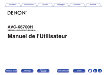 Connexions Lecture Réglages Conseils . Contents AVC-X6700H AMPLI AUDIO/VIDEO RESEAU Manuel de l’Utilisateur Panneau avant Affichage Panneau arrière 1 Télécommande Index Annexe Contents Connexions Lecture Réglages 8 9 9 10 10 13 17 18 18 22 24 28 Accessories Insertion des piles Portée de la télécommande Caractéristiques Audio haute qualité Haute performance Fonctionnement aisé Nomenclature et fonctions Panneau avant Affichage Panneau arrière Télécommande Panneau avant Affichage Panneau arrière Annexe Connexion d’un téléviseur Connexion 1 : Téléviseur équipé d’une borne HDMI et compatible avec la fonction ARC (Audio Return Channel) / eARC (Enhanced Audio Return Channel) Connexion 2 : Téléviseur équipé d’une borne HDMI et incompatible avec la fonction ARC (Audio Return Channel) / eARC (Enhanced Audio Return Channel) Connexion 3 : Téléviseur non équipé d’une borne HDMI Connexion d’un dispositif de lecture Connexion d’un décodeur (Tuner satellite/TV par câble) Connexion d’un lecteur DVD ou le lecteur Blu-ray Disc Connexion d’un appareil de lecture compatible avec le 8K Connexion d’un caméscope vidéo ou d’un console de jeux Connexion d’une platine Connecter un dispositif mémoire USB au port USB Connexion à un réseau domestique (LAN) LAN filaire LAN sans fil Connexion d’un dispositif de commande externe Prises REMOTE CONTROL Prise TRIGGER OUT Connexion du cordon d’alimentation Connexions Installation des enceintes Branchement enceintes Avant le branchement des enceintes Configuration de l’enceinte et paramétrages de l’“Affectation des Amplis” Branchement d’enceintes 5.1 canaux Branchement d’enceintes 7.1 canaux Branchement d’enceintes 9.1 canaux Branchement d’enceintes 11.1 canaux Branchement d’enceintes 13.1 canaux Connexion bi-amp Branchement d’enceintes 9.1 canaux : Deuxième paire d’enceintes avant Branchement d’enceintes multi-zones Connexion d’un amplificateur de puissance externe Conseils 32 41 41 45 47 48 53 61 65 73 75 76 80 2 Télécommande Index 81 82 83 84 85 86 87 88 89 90 91 92 92 93 94 94 95 96 Contents Connexions Lecture Réglages Lecture Utilisation basique Mise sous tension Sélection de la source d’entrée Réglage du volume Coupure temporaire du son (Sourdine) Lecture avec les lecteurs DVD/Blu-ray Disc Lecture du contenu d’un dispositif mémoire USB Lecture des fichiers d’un dispositif mémoire USB Écouter de la musique sur un périphérique Bluetooth Lecture de musique à partir d’un périphérique Bluetooth Appariement avec d’autres périphériques Bluetooth Reconnexion à cet appareil à partir d’un périphérique Bluetooth Écoute de l’audio avec un casque Bluetooth Écoute de l’audio avec un casque Bluetooth Reconnexion à un casque Bluetooth Déconnexion d’un casque Bluetooth Écoute de Radio Internet Écoute de Radio Internet Lecture de fichiers stockés sur un ordinateur ou un stockage NAS Lecture de fichiers stockés sur un ordinateur ou un stockage NAS Panneau avant Affichage Panneau arrière Conseils Annexe Obtenir HEOS App Compte HEOS Lecture depuis des services de diffusion de musique Écouter la même musique dans plusieurs pièces Fonction AirPlay Lecture de titres de votre iPhone, iPod touch ou iPad Lecture de la musique iTunes avec cet appareil Lisez un morceau depuis votre iPhone, votre iPodtouch ou votre iPad sur plusieurs appareils synchronisés (AirPlay 2) Fonction Spotify Connect Lecture de la musique Spotify avec cet appareil Fonctions pratiques Ajout des Favoris HEOS Lecture des Favoris HEOS Suppression des Favoris HEOS Réglage de l’audibilité des dialogues et voix (Amélior. Dialogues) Ajuster le volume de chaque canal pour le faire correspondre à la source d’entrée (Réglage niv. Canal) Réglage de la tonalité (Tonalité) Affichage de la vidéo voulue lors de la lecture audio (Sélect. Vidéo) Réglage de la qualité d’image pour votre environnement de visualisation (Mode photo) Lecture de la même musique dans toutes les zones (Toutes zones stéréo) Modification des paramètres d’enceinte pour les adapter à l’environnement d’écoute (Présélection des HP) 98 98 98 99 99 99 100 101 104 105 107 108 109 110 111 111 112 113 114 115 3 Télécommande Index 118 119 120 123 127 128 128 129 130 130 131 132 132 133 133 134 135 136 137 138 139 Contents Connexions Lecture Sélection d’un mode d’écoute Sélection d’un mode d’écoute Lecture directe Lecture Pure Direct Lecture surround auto Description des types de mode audio Mode son qui peut être sélectionné pour chaque signal d’entrée Fonction de contrôle HDMI Procédure de réglage Fonction Menu intelligent Fonction de minuterie sommeil Utilisation de la minuterie sommeil Fonction de sélection rapide plus Solliciter le paramétrage Modification des réglages Fonction de verrouillage du panneau Désactivation de toutes les opérations de touche Désactivation de toutes les opérations de touche sauf VOLUME Annulation de la fonction de verrouillage du panneau Panneau avant Affichage Panneau arrière Réglages 140 141 142 143 143 144 149 155 155 156 158 159 160 161 162 163 163 163 164 Conseils Annexe Fonction de verrouillage à distance Désactivation de la fonction de capteur de la télécommande Activation de la fonction du capteur à distance Fonction de contrôle Internet Contrôle de l’appareil à partir d’un contrôle Web Lecture dans la ZONE2/ZONE3 (différentes pièces) Connexion de ZONE Lecture dans ZONE2/ZONE3 165 165 165 166 166 168 168 173 Réglages Plan du menu de l’interface graphique Fonctionnement du menu 4 Télécommande Index 175 179 Contents Connexions Lecture 180 180 180 181 188 189 190 191 194 196 196 198 203 207 207 208 209 210 211 212 212 215 215 216 Audio Réglage niv Subw Sync des graves Paramètres surr. Restorer Délai audio Volume Audyssey® EQ Graphic Vidéo Réglages image Config. HDMI Réglages sorties Sortie vid.composantes Affic