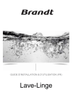 GUIDE D’INSTALLATION & D’UTILISATION (FR) Lave-Linge 1 9 • • • • • • • • 1. 2. 3. 4. • • • • • • 3 • • • 4 5 1. 2. 3. 4. 5. 6 1. 2. 3. 4. 7 1. 2. 3. 1. 2. 3. Ecrou de blocage pied Descendre Monter 8 Tuyau d’arrivée d’eau Valve d’arrivée d’eau 9 10 Min. 60 cm Max. 100cm 1. 1. Branchez à l’alimentation 2. Ouvrez le robinet 11 3. Chargez Lavage principal Adoucissant Prélavage 4. Fermez la porte 5. Ajoutez du détergent 2. 1. Allumez l’appareil 2. Sélectionnez le programme 3. 12 3. Sélectionnez une fonction ou les paramètres par défaut 4. Lancez le programme 13 I II Séparateur Séparateur 14 9 9 Touche Degré de salissure Cette touche permet d'augmenter ou de réduire le temps de cycle en fonction du niveau de saleté de votre linge. Sélectionnez le niveau de saleté correspondant à vos besoins, la led associée restera allumée. Easy-Jet D E D Ajout de linge E Verrouillage porte Si vous devez changer un réglage après le lancement du cycle de lavage, appuyez une première fois sur le bouton Marche/Arrêt pour éteindre la machine. Appuyez une seconde fois sur le bouton Marche/Arrêt pour rallumer la machine et sélectionnez à nouveau le programme, la vitesse d'essorage et les options, puis appuyez sur la touche Départ/Pause. (Assurez-vous que la sécurité enfants est désactivée, sinon le premier programme sélectionné continuera de fonctionner.) Juste avant sa sortie d'usine, l'appareil subit un dernier contrôle ; de l'eau est versée dans la cuve. Il peut donc y avoir des gouttes d'eau ou de la condensation dans le lave-linge. Ce n'est pas un signe de défaillance. Annuler la fonction Départ différé : Appuyez sur la touche Départ différé jusqu'à ce que 0H s'affiche à l'écran. Cette opération ne peut pas être effectuée une fois le cycle de lavage lancé. Si le programme a déjà commencé, appuyez sur le bouton Marche/Arrêt pour réinitialiser la machine. Easy-Jet Easy-Jet Cette fonction automatique permet de nettoyer – pendant le cycle – le joint de porte et le hublot en verre. Une pulvérisation d'eau permet d'éliminer la mousse et les résidus de lessive. Easy-Jet Easy-Jet Degré de salissure Cette touche permet de réduire ou d'augmenter la durée du cycle de lavage selon le niveau de salissure du linge. 3 niveaux sont accessibles par appuis successifs Ajout de linge Cette opération peut s'effectuer durant un cycle de lavage. Pressez 3 secondes la touche Départ/Pause puis : 1. Attendre l'arrêt total du tambour et le déverrouillage de la porte. 2. Ajoutez le linge. 3. Refermez la porte et appuyez de nouveau sur la touche Départ/Pause. Le cycle de lavage se relance. Attention ! Pour des raisons de sécurité, cette fonction ne peut être utilisée quand le niveau d'eau est au-dessus de la partie basse du hublot, ni quand la température est trop élevée. Essorage Départ différé Appuyez simultanément sur Essorage et Départ différé pendant 3 secondes, jusqu'à ce que le bip sonore retentisse. Couper le bip sonore Appuyer sur la touche pendant 3 secondes pour couper le bip sonore. Même action pour sa réactivation. Le dernier paramétrage sera conservé jusqu'à la prochaine réinitialisation. Attention ! Après avoir coupé le bip sonore, l'appareil n'émet plus aucun son. WFB194QW 1000 800 1400 1000 800 800 800 800 1000 1000 800 800 1200 600 9 4.5 23 1. 2. 3. 4. 24 1. 2. 3. 4. 5. 1. 2. 3. 25 1. Ouvrez la trappe de service 2. Extraire le filtre en le tournant dans le sens inverse des aiguilles d’une montre 26 3. Retirez toutes les saletés 4. Remettez le filtre en place puis fermez la trappe de service 27 votre WFB194QW 9.0kg 850*595*565 71kg 2000W 30 ">