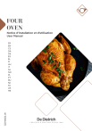 FOUR OVEN Notice d’installation et d’utilisation User Manual CZ2100222_00 FR EN CS DA DE ES EL FI HU IT NL NO PL PT RU SK SV UK HE FR CHÈRE CLIENTE, CHER CLIENT Vous venez d’acquérir un produit De Dietrich. Ce choix révèle votre exigence autant que votre goût pour l’art de vivre à la française. Héritières de plus de 300 ans de savoir-faire, les créations De Dietrich incarnent la fusion du design, de l’authenticité et de la technologie au service de l’art culinaire. Nos appareils sont fabriqués avec des matériaux nobles et offrent une qualité de finition irréprochable. Nous sommes certains que cette confection de haute facture permettra aux amoureux de la cuisine d’exprimer tous leurs talents. Le Service Consommateurs De Dietrich est à votre écoute pour répondre à toutes vos questions et suggestions pour toujours mieux satisfaire vos exigences. Nous sommes honorés d’être votre nouveau partenaire en cuisine et vous remercions de votre confiance. Avec ses manufactures en France, à Orléans et Vendôme, De Dietrich cultive une quête constante d’excellence, perpétuant un savoir-faire d’exception dans la conception de produits parfaitement finis. Nombre de nos électroménagers sont certifiés par le label Origine France Garantie, une reconnaissance qui atteste de leur fabrication en France. Ce label assure non seulement la qualité et la durabilité de nos appareils, mais il garantit également leur traçabilité, offrant une indication claire et objective de leur provenance. www.de-dietrich.com TABLE DES MATIERES SÉCURITÉ ET PRÉCAUTIONS IMPORTANTES....................................................4 1 INSTALLATION .......................................................................................................6 Choix de l’emplacement et encastrement..................................................................6 Raccordement électrique...........................................................................................7 2 RESPECT DE L’ENVIRONNEMENT .....................................................................7 3 PRÉSENTATION DU FOUR ...................................................................................8 Les commandes et l’afficheur....................................................................................9 Verouillage des touches ............................................................................................9 Les accessoires (selon modèle)..............................................................................10 Système de rails coulissants ...................................................................................12 Installation et démontage des rails coulissants .......................................................12 4 MISE EN SERVICE ET RÉGLAGES ...................................................................13 Première mise en service .......................................................................................13 Menu réglages (selon modèle)................................................................................13 5 MODE DE CUISSON MANUEL.............................................................................15 Démarrage d’une cuisson .......................................................................................17 6 CONSEILS DE CUISSON.....................................................................................18 Fonction AIR FRY....................................................................................................18 Fonction déshydratation .........................................................................................19 7 MODE DE CUISSON AUTOMATIQUE.................................................................20 Présentation du mode automatique ........................................................................20 Présentation des catégories de plats.......................................................................23 Démarrage d’une cuisson automatique...................................................................29 Cuisson immédiate .................................................................................................29 8 AUTRES FONCTIONS...........................................................................................30 Options de fin de cuisson (selon le type de cuisson)...............................................30 Favoris ....................................................................................................................31 Fonction minuterie...................................................................................................31 9 ENTRETIEN............................................................................................................32 Nettoyage et entretien..............................................................................................32 Démontage et remontage de la plaque « sensor »..................................................33 Autonettoyage par pyrolyse.....................................................................................34 Remplacement de la lampe ....................................................................................36 10 ANOMALIES ET SOLUTIONS............................................................................37 11 SERVICE APRÈS-VENTE ..................................................................................38 12 ESSAI APTITUDE ...............................................................................................40 FR SÉCURITÉ ET PRÉCAUTIONS IMPORTANTES INSTRUCTIONS DE SÉCURITÉ IMPORTANTES - LIRE AVEC ATTENTION ET GARDER POUR DE FUTURES UTILISATIONS. Cette notice est disponible en téléchargement sur le site internet de la marque. A la réception de l’appareil, attention. déballez-le ou faites-le déballer à ne pas toucher les éléments immédiatement. V é r i f i e z chauffants situés à l’intér