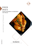 FOUR OVEN Notice d’installation et d’utilisation User Manual CZ2100185_01 FR EN CS DA DE ES EL FI HU IT NL NO PL PT RU SK SV UK HE FR CHÈRE CLIENTE, CHER CLIENT Vous venez d’acquérir un produit De Dietrich. Ce choix révèle votre exigence autant que votre goût pour l’art de vivre à la française. Héritières de plus de 300 ans de savoir-faire, les créations De Dietrich incarnent la fusion du design, de l’authenticité et de la technologie au service de l’art culinaire. Nos appareils sont fabriqués avec des matériaux nobles et offrent une qualité de finition irréprochable. Nous sommes certains que cette confection de haute facture permettra aux amoureux de la cuisine d’exprimer tous leurs talents. Le Service Consommateurs De Dietrich est à votre écoute pour répondre à toutes vos questions et suggestions pour toujours mieux satisfaire vos exigences. Nous sommes honorés d’être votre nouveau partenaire en cuisine et vous remercions de votre confiance. Avec ses manufactures en France, à Orléans et Vendôme, De Dietrich cultive une quête constante d’excellence, perpétuant un savoir-faire d’exception dans la conception de produits parfaitement finis. Nombre de nos électroménagers sont certifiés par le label Origine France Garantie, une reconnaissance qui atteste de leur fabrication en France. Ce label assure non seulement la qualité et la durabilité de nos appareils, mais il garantit également leur traçabilité, offrant une indication claire et objective de leur provenance. www.de-dietrich.com TABLE DES MATIERES SÉCURITÉ ET PRÉCAUTIONS IMPORTANTES....................................................4 1 INSTALLATION .......................................................................................................6 Choix de l’emplacement et encastrement..................................................................6 Raccordement électrique...........................................................................................7 2 RESPECT DE L’ENVIRONNEMENT .....................................................................7 3 PRÉSENTATION DU FOUR ...................................................................................8 Les commandes et l’afficheur....................................................................................9 Verouillage des touches ............................................................................................9 Les accessoires (selon modèle)..............................................................................10 Plat support aliment spécial vapeur 100% ..............................................................12 Système de rails coulissants ...................................................................................13 Installation et démontage des rails coulissants .......................................................13 Le tiroir de remplissage ...........................................................................................14 4 MISE EN SERVICE ET RÉGLAGES....................................................................15 Première mise en service .......................................................................................15 Menu réglages (selon modèle)................................................................................15 5 MODE DE CUISSON MANUEL.............................................................................16 Démarrage d’une cuisson .......................................................................................19 6 CONSEILS DE CUISSON.....................................................................................20 Fonction AIR FRY....................................................................................................20 Fonction déshydratation .........................................................................................21 7 MODE DE CUISSON AUTOMATIQUE.................................................................22 Présentation du mode automatique ........................................................................22 Présentation des catégories de plats.......................................................................23 Démarrage d’une cuisson automatique...................................................................29 Cuisson immédiate .................................................................................................29 8 AUTRES FONCTIONS...........................................................................................30 Options de fin de cuisson (selon le type de cuisson)...............................................30 Favoris ....................................................................................................................31 Fonction minuterie...................................................................................................31 9 ENTRETIEN............................................................................................................32 Nettoyage et entretien :............................................................................................32 Autonettoyage par pyrolyse.....................................................................................34 Fonction vidange......................................................................................................36 Fonction détartrage..................................................................................................36 Remplacement de la lampe ....................................................................................38 10 ANOMALIES ET SOLUTIONS............................................................................39 11 SERVICE APRÈS-VENTE ..................................................................................40 12 ESSAI APTITUDE ...............................................................................................42 FR SÉCURITÉ ET PRÉCAUTIONS IMPORTAN