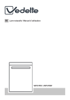 FR Lave-vaisselle / Manuel d’utilisation VDF27ES / VDF27EW Déclaration de conformité CE Nos produits sont conformes aux directives, aux décisions, aux réglementations européennes et aux normes en vigueurs. Icône Type Signification AVERTISSEMENT Blessures graves ou décès RISQUE D'ÉLECTROCUTION Tension dangereuse TIRER Avertissement : Risque d'incendie / matériaux inflammables ATTENTION Blessures de l'utilisateur ou dommages matériels. IMPORTANT/REMARQUE Utilisation correcte du système TABLE DES MATIÈRES 1 INFORMATIONS ET RECOMMANDATIONS DE SÉCURITÉ....................... 1 1.1 Informations de sécurité..................................................................................................1 1.2 Points importants pendant l’installation du lave-vaisselle................................................2 1.3 Usage Quotidien..............................................................................................................3 2 INSTALLATION................................................................................................. 9 2.1 Positionnement de l'appareil...........................................................................................9 2.2 Raccordement en eau.....................................................................................................9 2.3 Tuyau d’arrivée d'eau.....................................................................................................9 2.4 Tuyau de vidange..........................................................................................................10 2.5 . Raccordement électrique............................................................................................10 2.6 Installation encastrée de l'appareil...............................................................................11 3 SPÉCIFICATIONS TECHNIQUES................................................................. 12 3.1 pparence générale........................................................................................................12 3.2 Spécifications techniques..............................................................................................12 4 AVANT D'UTILISER L'APPAREIL................................................................. 14 4.1 Préparer votre lave-vaisselle pour la première utilisation..............................................14 4.2 Utilisation de sel (SI DISPONIBLE)...............................................................................14 4.3 Remplissage du sel (SI DISPONIBLE)..........................................................................14 4.4 Bandelette d'essai.........................................................................................................15 4.5 Tableau de dureté de l'eau............................................................................................15 4.6 Système adoucisseur....................................................................................................15 4.7 Réglages.......................................................................................................................15 4.8 Utilisation du détergent..................................................................................................16 4.9 Remplissage du détergent...........................................................................................16 4.10 Utilisation de détergents combinés.............................................................................16 4.11 Utilisation de liquide de rinçage..................................................................................16 4.12 Remplissage et réglage du liquide de rinçage............................................................17 5 CHARGEMENT DE VOTRE LAVE-VAISSELLE.......................................... 18 5.1 Recommandations .......................................................................................................18 5.2 Chargements alternatifs du panier ...............................................................................20 6 TABLEAU DES PROGRAMMES................................................................... 21 7 .LE PANNEAU DE COMMANDE................................................................... 23 7.1 Utilisation de la sécurité enfant ..................................................................................24 7.2 Changementdeprogramme..........................................................................................25 7.3 Annulation du programme.............................................................................................25 8 NETTOYAGE ET ENTRETIEN ...................................................................... 26 8.1 Filtres ............................................................................................................................26 8.2 Bras pulvérisateurs .......................................................................................................26 8.3 Pompe de vidange........................................................................................................27 9 DÉPANNAGE . ................................................................................................ 28 1 INFORMATIONS ET RECOMMANDATIONS DE SÉCURITÉ Recyclage • Certains composants et l’emballage de votre lavevaisselle sont fabriqués à partir de matériaux recyclables. • Les éléments en matière plastique portent les inscriptions internationales : (>PE< , >PS< , >POM<, >PP<, ) • Les éléments en carton sont fabriqués à partir de papier recyclé et doivent être déposés dans les bacs de tri sélectif prévus à cet effet. • Ne pas placer ces matériaux dans les bacs à déchets. Les déposer dans un centre de recyclage. • Contacter les centres concernés ou votre mairie pour obtenir des informations sur les méthodes et points de miseau rebut. 1.1 Informations de sécurité Dès réception de votre a