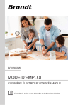 BCV2650W MODE D’EMPLOI CUISINIÈRE ÉLECTRIQUE VITROCÉRAMIQUE Consulter la notice avant d’installer et d’utiliser la cuisinière. Chère Cliente, Cher Client, Vous venez d’acquérir un produit BRANDT et nous vous remercions de la confiance que vous nous accordez. Nous avons conçu et fabriqué ce produit en pensant à vous, à votre mode de vie, à vos besoins, pour qu’il réponde au mieux à vos attentes. Nous y avons mis notre savoir-faire, notre esprit d’innovation et toute la passion qui nous anime depuis plus de 60 ans. Dans un souci permanent de toujours mieux satisfaire vos exigences, notre service consommateurs est à votre disposition et à votre écoute pour répondre à toutes vos questions ou suggestions. Connectez-vous aussi sur notre site www.brandt.com où vous trouverez nos dernières innovations, ainsi que des informations utiles et complémentaires. BRANDT est heureux de vous accompagner au quotidien et vous souhaite de profiter pleinement de votre achat. Important : Avant de mettre votre appareil en marche, veuillez lire attentivement ce guide d’installation et d’utilisation afin de vous familiariser plus rapidement avec son fonctionnement Le fabricant n’est aucunement responsable des dommages résultant du montage non conforme au mode d’emploi. 2 TABLES DES MATIÈRES Informations générales .......................................................................................2 Mises en garde importantes .......................................................................................4 Consignes de sécurité ...............................................................................................7 Conseils d’économie d’énergie ...................................................................................11 Description de l’appareil ..........................................................................................13 Caractéristiques de l’appareil ..................................................................................14 Installation ..........................................................................................................15 Raccordement de la cuisinière à l’installation électrique .................................................16 Utilisation ....................................................................................................18 Fonctionnement du programmateur .........................................................................19 Utilisation de la plaque de cuisson .........................................................................29 Cuisson au four – conseils pratiques ..............................................................31 Nettoyage et entretien..........................................................................................36 Situations d’urgence ...............................................................................................42 Données techniques ................................................................................................43 Fiche du produit...................................................................................................44 Informations sur le produit.................................................................................45 3 Mises en garde importantes l Cet appareil est destiné à un usage domestique uniquement. Toute utilisation autre que celle prévue pour cet appareil, ou pour une autre application que celle prévue, par exemple une application commerciale, est interdite. l Cet appareil peut être utilisé par des enfants âgés de 8 ans et plus, par des personnes dont les capacités physiques, sensorielles ou mentales sont réduites ou des personnes dénuées d’expérience ou de connaissance, si elles ont pu bénéficier d’une surveillance ou d’instructions préalables concernant l’utilisation de l’appareil en toute sécurité et avoir compris les dangers encourus. Les enfants ne doivent pas jouer avec l’appareil. Le nettoyage et la maintenance ne doivent pas être réalisés par les enfants sans surveillance. l Si le câble d’alimentation est endommagé, il doit être remplacé par le fabricant, son service après-vente ou des personnes de qualification similaire afin d’éviter un danger. l MISE EN GARDE : Cet appareil et ses parties accessibles deviennent chauds pendant leur utilisation. Il convient de veiller à ne pas toucher les éléments chauffants. Il convient de maintenir à distance les enfants de moins de 8 ans, à moins qu’ils ne soient sous une surveillance continue. l MISE EN GARDE: Les parties accessibles peuvent devenir très chaudes au cours de l’utilisation. Il est recommandé d’éloigner les jeunes enfants. 4 l MISE EN GARDE: Danger de feu: Ne jamais placer d’objets sur la plaque de cuisson. l MISE EN GARDE: Une cuisson, sans surveillance, utilisant de l’huile ou autre matière grasse, sur une plaque de cuisson peut être dangereuse et déclencher un incendie. NE JAMAIS essayer d’éteindre un feu avec de l’eau mais déconnecter l’appareil de l’alimentation et couvrir les flammes, par exemple, à l’aide d’un couvercle ou d’une couverture ignifugée. l Cet appareil n’est pas destiné à être mis en fonctionnement au moyen d’une minuterie extérieure ou par un système de commande à distance séparé. l MISE EN GARDE: S’assurer que l’appareil est déconnecté de l’alimentation avant de remplacer la lampe pour éviter tout risque de choc électrique. l Ne pas utiliser d’appareil de nettoyage à la vapeur. l Lors de son utilisation, l’appareil devient chaud. Faire attention à ne pas toucher les éléments chauffants situés à l’intérieur du four. l MISE EN GARDE: Si la surface est fêlée, déconnecter l’appareil de l’alimentation pour éviter un risque de choc électrique. l Ne pas utiliser de produits d’entretien abrasifs ou de grattoirs métalliques durs pour nettoyer la porte en v