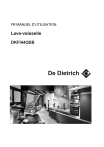 FR MANUEL D’UTILISATION Lave-vaisselle DKFI44QSB De Dietrich Merci d’avoir choisi ce produit. Ce manuel d’instructions contient des informations importantes sur la sécurité et des instructions destinées à vous aider dans l’utilisation et l’entretien de votre appareil. Prenez le temps de lire ce manuel d’instructions avant d’utiliser votre appareil et conservez ce document pour toute référence ultérieure. Icône Type Signification AVERTISSEMENT Blessures graves ou décès RISQUE D'ÉLECTROCUTION Tension dangereuse TIRER Avertissement : Risque d'incendie / matériaux inflammables ATTENTION Blessures de l'utilisateur ou dommages matériels. IMPORTANT/REMARQUE Utilisation correcte du système FR - 1 TABLE DES MATIÈRES 1 INSTRUCTIONS DE SÉCURITÉ...................................................................... 3 1.1 Avertissements généraux de sécurité.............................................................................3 1.2 Avertissements d’installation...........................................................................................4 1.3 Durant l'utilisation...........................................................................................................5 2 INSTALLATION................................................................................................. 8 2.1 Positionnement de l'appareil...........................................................................................8 2.2 Raccordement en eau.....................................................................................................8 2.3 Tuyau d’arrivée d'eau.....................................................................................................8 2.4 Tuyau de vidange............................................................................................................9 2.5 . Raccordement électrique..............................................................................................9 3 SPÉCIFICATIONS TECHNIQUES................................................................. 10 3.1 pparence générale........................................................................................................10 3.2 Spécifications techniques..............................................................................................10 4 AVANT D'UTILISER L'APPAREIL................................................................. 12 4.1 Préparer votre lave-vaisselle pour la première utilisation..............................................12 4.2 Utilisation de sel (SI DISPONIBLE)...............................................................................12 4.3 Remplissage du sel (SI DISPONIBLE)..........................................................................12 4.4 Bandelette d'essai.........................................................................................................13 4.5 Tableau de dureté de l'eau............................................................................................13 4.6 Système adoucisseur...................................................................................................13 4.7 Réglages.......................................................................................................................13 4.8 Utilisation du détergent..................................................................................................14 4.9 Remplissage du détergent............................................................................................14 4.10 Utilisation de détergents combinés.............................................................................14 4.11 Utilisation de liquide de rinçage...................................................................................14 4.12 Remplissage et réglage du liquide de rinçage............................................................15 5 CHARGEMENT DE VOTRE LAVE-VAISSELLE.......................................... 16 5.1 Recommandations .......................................................................................................16 5.2 Chargements alternatifs du panier ...............................................................................19 6 TABLEAU DES PROGRAMMES................................................................... 20 7 LE PANNEAU DE COMMANDE.................................................................... 22 8 NETTOYAGE ET ENTRETIEN ...................................................................... 26 8.1 Filtres ............................................................................................................................26 8.2 Bras pulvérisateurs .......................................................................................................26 8.3 Pompe de vidange........................................................................................................27 9 DÉPANNAGE .................................................................................................. 28 FR - 2 1 INSTRUCTIONS DE SÉCURITÉ 1.1 Avertissements généraux de sécurité • Lisez ces instructions attentivement avant d'utiliser votre appareil, et conservez ce manuel pour toute référence ultérieure. Vérifiez l'emballage de votre appareil avant l'installation et la surface extérieure de l'appareil une fois que l'emballage a été retiré. N'utilisez pas l'appareil s'il semble endommagé ou si l'emballage a été ouvert. • Les matériaux d'emballage protègent votre appareil contre tout dommage qui pourrait se produire pendant le transport. Les matériaux d'emballage sont respectueux de l'environnement, car ils sont recyclables. L'utilisation de matériaux recyclés permet de réduire la consommation de matières premières et diminue la production de déchets. Cet appareil peut être utilisé par des enfants de plus de 8 ans et des personnes aux capacités physiques, sensorielles ou mentales réduites ou manquant d'expérience