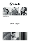 MANUEL D’INSTRUCTION Lave-linge Chère Cliente, Cher Client, Vous venez d’acquérir un lave-linge VEDETTE et nous vous en remercions. Fort de toute cette expérience que nous avons accumulée au fil des années, nous avons conçu cet appareil pour vous faciliter la vie en vous apportant performances, simplicité d’utilisation et qualité. Bien entendu, dans un souci permanent de satisfaire le mieux possible vos exigences vis-à-vis de nos produits, notre service consommateurs est à votre disposition et à votre écoute pour répondre à toutes vos questions ou suggestions (coordonnées à la fin de ce livret). Et retrouvez-nous aussi sur notre site www.vedette.com sur lequel vous trouverez tous nos produits, ainsi que des informations utiles et complémentaires. Important : Avant de mettre votre appareil en marche, veuillez lire attentivement ce guide d’installation et d’utilisation afin de vous familiariser plus rapidement avec son fonctionnement. FR 2 FR - FRANÇAIS Cet appareil, destiné exclusivement à un usage domestique, a été conçu pour laver le linge. Charges préconisées : — La capacité maximale de l’appareil est de 5,5 kg. SÉCURITÉ Respectez impérativement les consignes suivantes : Installation : — Cet appareil est destiné à être utilisé dans des applications domestiques et analogues telles que: - des coins cuisines réservés au personnel dans des magasins, bureaux et autres environnements professionnels; - des fermes; - l’utilisation par les clients des hôtels, motels et autres environnements à caractère résidentiel; - des environnements du type chambres d’hôtes. — La pression de l’eau doit se situer entre 0.1 et 1 MPa (1 et 10 bars). — N’utilisez pas de prolongateur, adaptateur, prise multiple ou programmable. — L’installation électrique doit être capable de résister à la puissance maximale mentionnée sur la plaque signalétique et la prise doit être dûment reliée à la terre. — Une fois votre appareil installé, la fiche doit rester accessible. — Utilisez exclusivement le tuyau d’alimentation et les joints G neufs fournis avec l’appareil. — Si le cordon d’alimentation est endommagé, faites le remplacer par le Service Après-Vente ou par un professionnel qualifié, afin d’éviter tout risque éventuel. — Il est déconseillé d’installer votre appareil sur un tapis ou un sol en moquette afin de ne pas gêner la circulation d’air à sa base. — En cas de problème ne pouvant être résolu par vous-même (voir page 10), n’intervenez pas sur l’appareil et faites appel au service technique du revendeur ou du fabricant. 3 FR SÉCURITÉ (suite) Utilisation : — Cet appareil peut être utilisé par des enfants âgés d’au moins 8 ans et par des personnes ayant des capacités physiques, sensorielles ou mentales réduites ou dénuées d’expérience ou de connaissance, s’ils (si elles) sont correctement surveillé(e)s ou si des instructions relatives à l’utilisation de l’appareil en toute sécurité leur ont été données et si les risques encourus ont été appréhendés. Il convient de surveiller les enfants pour s’assurer qu’ils ne jouent pas avec l’appareil et d’éloigner ceux de moins de 3 ans, sauf s’ils sont sous surveillance permanente. — Le nettoyage et l’entretien de l’appareil ne doivent pas être effectués par des enfants sans surveillance. — Ne pas introduire de linge traité au moyen de détachant, dissolvant ou produit inflammable immédiatement après traitement (risque d’explosion). — Ce lave-linge est équipé d’une sécurité pour prévenir tout débordement d’eau éventuel. — En fin de cycle, veillez à fermer le robinet d’arrivée d’eau et à débrancher le cordon électrique. ENVIRONNEMENT Ce lave-linge a été conçu dans un souci de respect de l’environnement. Le recyclage de l’appareil sera ainsi réalisé conformément à la directive européenne 2012/19/UE sur les déchets d’équipements électriques et électroniques. Adressez-vous à votre mairie ou à votre revendeur pour connaître les points de collecte des appareils usagés les plus proches de votre domicile. Protection de l’environnement Dosez votre lessive en fonction du degré de salissure de votre charge de linge et de votre dureté d’eau, en ne dépassant pas la dose recommandée par le fabricant de l­essive. Les matériaux d’emballage de cet appareil sont recyclables. Contribuez à la protection de l’environnement en les déposant dans les conteneurs municipaux prévus à cet effet. Votre lave-linge contient aussi de nombreux matériaux recyclables, il est marqué de ce logo pour vous rappeler que les appareils usagés ne doivent pas être mélangés avec d’autres déchets. FR Economies d’énergie Ne programmez le prélavage que lorsque c’est absolument nécessaire. Pour du linge peu ou normalement sale, un programme à basse température est suffisant. 4 fr1 -francais - INSTALLATION 1.1 - Déballage (Fig. 1.1.2 à 1.1.4) croquis et notamment en veillant à ce que le raccordement ne soit pas étanche : laissez un libre passage à l’air entre le tuyau de vidange et le conduit d’évacuation afin d’éviter tout refoulement d’eaux usées dans la machine et toutes mauvaises odeurs. Respectez impérativement les consignes ­suivantes : — Retirez les cales du couvercle et des battants de tambour puis ouvrez et refermez soigneusement le tambour. — Soulevez le lave-linge et retirez le socle A et la cale moteur B (Fig. 1.1.2). — Enlevez la traverse C et obstruez les trous avec les caches D (Fig. 1.1.3). — Enlevez les 3 colliers support tuyau E , et obstruez impérativement les 3 trous à l’aide des caches F (Fig. 1.1.4). 1.4 - Mise à niveau (Fig. 1.4) L’appareil doit impérativement être installé sur un sol horizontal. Si nécessaire, et s’il est équipé de pieds réglables situés à l’avant de l’appareil, stabilisez votre lave