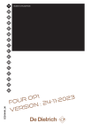 FR GUIDE D’UTILISATION CS DA DE EL EN ES FI IT NL NO PL PT RU SK CZ2100161_00 SV 1 P O 23 0 R 2 U 1 FO 4-1 2 : N O I S VER FR CHÈRE CLIENTE, CHER CLIENT BVCert.6011825 Découvrir les produits De Dietrich, c’est éprouver des émotions uniques. L’attrait est immédiat dès le premier regard. La qualité du design s’illustre par l’esthétique intemporelle et les finitions soignées rendant chaque objet élégant et raffiné en parfaite harmonie les uns avec les autres. Vient ensuite l’irrésistible envie de toucher. Le design De Dietrich capitalise sur des matériaux robustes et prestigieux ; l’authentique est privilégié. En associant la technologie la plus évoluée aux matériaux nobles, De Dietrich s’assure la réalisation de produits de haute facture au service de l’art culinaire, une passion partagée par tous les amoureux de la cuisine. Nous vous souhaitons beaucoup de satisfaction dans l’utilisation de ce nouvel appareil. En vous remerciant de votre confiance. Le label « Origine France Garantie » assure au consommateur la traçabilité d’un produit en donnant une indication de provenance claire et objective. La marque DE DIETRICH est fière d’apposer ce label sur les produits issus de nos usines françaises basées à Orléans et Vendôme. www.dedietrich-electromenager.com 2 TABLE DES MATIERES SÉCURITÉ ET PRÉCAUTIONS IMPORTANTES......................................................................... 4 1 INSTALLATION.............................................................................................................................7 CHOIX DE L’EMPLACEMENT ET ENCASTREMENT.....................................................................................................................7 RACCORDEMENT ELECTRIQUE....................................................................................................................................................8 2 RESPECT DE L’ENVIRONNEMENT ........................................................................................ 9 3 PRESENTATION DU FOUR.........................................................................................................10 LES COMMANDES ET L’AFFICHEUR.............................................................................................................................................11V - VERROUILLAGE DES TOUCHES..................................................................................................................................................11 LES ACCESSOIRES (SELON MODÈLE).........................................................................................................................................12 SYSTÈME DE RAILS COULISSANTS.............................................................................................................................................14 INSTALLATION ET DEMONTAGE DES RAILS COULISSANTS ..................................................................................................14 4 MISE EN SERVICE ET REGLAGES........................................................................................... 15 - PREMIERE MISE EN SERVICE ....................................................................................................................................................15 - MENU RÉGLAGES (SELON MODÈLE).........................................................................................................................................15 5 MODE DE CUISSON MANUEL................................................................................................... 16 DÉMARRAGE D’UNE CUISSON .....................................................................................................................................................18 DÉMARRAGE D’UNE CUISSON AVEC SONDE ............................................................................................................................19 6 CONSEILS DE CUISSON...........................................................................................................22 FONCTION AIR FRY .........................................................................................................................................................................22 FONCTION DÉSHYDRATATION .....................................................................................................................................................23 7 MODE DE CUISSON AUTOMATIQUE........................................................................................ 24 PRÉSENTATION DU MODE AUTOMATIQUE.................................................................................................................................24 PRÉSENTATION DES CATÉGORIES DE PLATS...........................................................................................................................25 DÉMARRAGE D’UNE CUISSON AUTOMATIQUE..........................................................................................................................27 CUISSON IMMEDIATE......................................................................................................................................................................27 8 AUTRES FONCTIONS..................................................................................................................29 OPTIONS DE FIN DE CUISSON (SELON LE TYPE DE CUISSON).............................................................................................29 FONCTION MINUTERIE....................................................................................................................................................................29 9 ENTRETIEN...................................................................................................................................30 NETTOYAGE ET ENTRETIEN :...........................................................................................