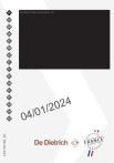 INSTRUCTIONS FR GUIDE D’UTILISATIONUTILISATEUR FR CS DA DE EL EN ES FI IT NL NO PL 4 2 0 1/2 PT RU SK CZ2100193_00 SV 0 / 4 0 FR CHÈRE CLIENTE, CHER CLIENT BVCert.6011825 Découvrir les produits De Dietrich, c’est éprouver des émotions uniques. L’attrait est immédiat dès le premier regard. La qualité du design s’illustre par l’esthétique intemporelle et les finitions soignées rendant chaque objet élégant et raffiné en parfaite harmonie les uns avec les autres. Vient ensuite l’irrésistible envie de toucher. Le design De Dietrich capitalise sur des matériaux robustes et prestigieux ; l’authentique est privilégié. En associant la technologie la plus évoluée aux matériaux nobles, De Dietrich s’assure la réalisation de produits de haute facture au service de l’art culinaire, une passion partagée par tous les amoureux de la cuisine. Nous vous souhaitons beaucoup de satisfaction dans l’utilisation de ce nouvel appareil. En vous remerciant de votre confiance. Le label « Origine France Garantie » assure au consommateur la traçabilité d’un produit en donnant une indication de provenance claire et objective. La marque DE DIETRICH est fière d’apposer ce label sur les produits issus de nos usines françaises basées à Orléans et Vendôme. www.dedietrich-electromenager.com TABLE DES MATIERES FR SÉCURITÉ ET PRÉCAUTIONS IMPORTANTES....................................................3 1 INSTALLATION..................................................................................................6-7 CHOIX DE L'EMPLACEMENT ET ENCASTREMENT............................................................6 RACCORDEMENT ÉLECTRIQUE...........................................................................................7 2 ENVIRONNEMENT...............................................................................................7 RESPECT DE L’ENVIRONNEMENT.......................................................................................7 3 DESCRIPTION DE VOTRE APPAREIL.......................................................8-10 PRÉSENTATION DU FOUR.....................................................................................................8 AFFICHEUR ET TOUCHES DE COMMANDES.....................................................................9 ACCESSOIRES (SELON MODÈLE)......................................................................................10 4 UTILISATION DE VOTRE APPAREIL.........................................................11-15 RÉGLAGES..............................................................................................................................11 MENU RÉGLAGES..................................................................................................................12 MODES DE CUISSON............................................................................................................13 DÉMARRAGE D'UNE CUISSON...........................................................................................14 5 ENTRETIEN....................................................................................................16-19 NETTOYAGE INTÉRIEUR - EXTÉRIEUR.............................................................................16 6 ANOMALIES ET SOLUTIONS...........................................................................19 7 SERVICES APRÈS-VENTES.............................................................................20 INTERVENTIONS................................................................................................................... 20 RELATIONS CONSOMATEURS........................................................................................... 20 8 CONSEILS DE CUISSON..............................................................................21-23 3 SÉCURITÉ ET PRÉCAUTIONS IMPORTANTES INSTRUCTIONS DE SÉCURITÉ IMPORTANTES LIRE AVEC ATTENTION ET GARDER POUR DE FUTURES UTILISATIONS. Cette notice est disponible en téléchargement sur le site internet de la marque. A LA RÉCEPTION DE L’APPAREIL Déballez-le ou faites le déballer immédiatement. Vérifiez son aspect général. Faites les éventuelles réserves par écrit sur le bon de livraison dont vous gardez un exemplaire. AVANT LA 1ÈRE UTILISATION Chauffez votre four à vide pendant 15 minutes environ. Assurez-vous que la pièce est suffisamment aérée. INFORMATIONS IMPORTANTES Cet appareil a été conçu pour être utilisé par des particuliers dans leur lieu d’habitation. Ce four ne contient aucun composant à base d’amiante. Votre appareil est destiné à un usage domestique normal. Ne l’utilisez pas à des fins commerciales ou industrielles ou pour d’autres buts que celui pour lequel il a été conçu. Ne modifiez pas ou n’essayez pas de modifier les caractéristiques de cet appareil. Cela représenterait un danger pour vous. Ne placez jamais de papier d’aluminium directement en contact avec la sole, la chaleur accumulée pourrait entraîner une détérioration de l’émail. 4 Sur la porte ouverte du four, ne posez pas de charges lourdes, et assurez vous qu’un enfant ne puisse ni monter ni s’asseoir. Ne vous servez pas de votre four comme garde-manger ou pour stocker quelconques éléments après utilisation. Après utilisation de votre four, assurez-vous que toutes les commandes se trouvent sur la position arrêt. Pour toute intervention de nettoyage dans la cavité du four, le four doit être arrêté. Avant de procéder au déclippage de la glace, laissez refroidir l’appareil. CONSIGNES DE SÉCURITÉ Cet appareil peut être utilisé par des enfants âgés de 8 ans et plus, et par des personnes aux capacités physiques, sensorielles ou mentales réduites, ou dénuées d’expérience et de connaissance, si elles ont pu bénéficier d’une surveillance ou d’instructions préalables concernant l’utilisation de l’appareil de façon sûre et en ont compris les risques encourus. L