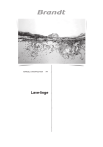 MANUEL D’INSTRUCTION FR Lave-linge Chère Cliente, Cher Client, Vous venez d’acquérir un produit BRANDT et nous vous remercions de la confiance que vous nous accordez. Nous avons conçu et fabriqué ce produit en pensant à vous, à votre mode de vie, à vos besoins, pour qu’il réponde au mieux à vos attentes. Nous y avons mis notre savoir-faire, notre esprit d’innovation et toute la passion qui nous anime depuis plus de 60 ans. Dans un souci permanent de toujours mieux satisfaire vos exigences, notre service consommateurs est à votre disposition et à votre écoute pour répondre à toutes vos questions ou suggestions. Connectez-vous aussi sur notre site www.brandt.com où vous trouverez nos dernières innovations, ainsi que des informations utiles et complémentaires. BRANDT est heureux de vous accompagner au quotidien et vous souhaite de profiter pleinement de votre achat. Important : Avant de mettre votre appareil en marche, veuillez lire attentivement ce guide d’installation et d’utilisation afin de vous familiariser plus rapidement avec son fonctionnement FR 2 FR - FRANÇAIS Cet appareil, destiné exclusivement à un usage domestique, a été conçu pour laver le linge. Charges préconisées : — La capacité maximale de l’appareil est de 8 kg. SÉCURITÉ Respectez impérativement les consignes suivantes : Installation : — Cet appareil est destiné à être utilisé dans des applications domestiques et analogues telles que: - des coins cuisines réservés au personnel dans des magasins, bureaux et autres environnements professionnels; - des fermes; - l’utilisation par les clients des hôtels, motels et autres environnements à caractère résidentiel; - des environnements du type chambres d’hôtes. — La pression de l’eau doit se situer entre 0.1 et 1 MPa (1 et 10 bars). — N’utilisez pas de prolongateur, adaptateur, prise multiple ou programmable. — L’installation électrique doit être capable de résister à la puissance maximale mentionnée sur la plaque signalétique et la prise doit être dûment reliée à la terre. — Une fois votre appareil installé, la fiche doit rester accessible. — Utilisez exclusivement le tuyau d’alimentation et les joints F neufs fournis avec l’appareil. — Si le cordon d’alimentation est endommagé, faites le remplacer par le Service Après-Vente ou par un professionnel qualifié, afin d’éviter tout risque éventuel. — Il est déconseillé d’installer votre appareil sur un tapis ou un sol en moquette afin de ne pas gêner la circulation d’air à sa base. — En cas de problème ne pouvant être résolu par vous-même (voir page 12), n’intervenez pas sur l’appareil et faites appel au service technique du revendeur ou du fabricant. 3 FR SÉCURITÉ (suite) Utilisation : — Cet appareil peut être utilisé par des enfants âgés d’au moins 8 ans et par des personnes ayant des capacités physiques, sensorielles ou mentales réduites ou dénuées d’expérience ou de connaissance, s’ils (si elles) sont correctement surveillé(e)s ou si des instructions relatives à l’utilisation de l’appareil en toute sécurité leur ont été données et si les risques encourus ont été appréhendés. Il convient de surveiller les enfants pour s’assurer qu’ils ne jouent pas avec l’appareil et d’éloigner ceux de moins de 3 ans, sauf s’ils sont sous surveillance permanente. — Le nettoyage et l’entretien de l’appareil ne doivent pas être effectués par des enfants sans surveillance. — Ne pas introduire de linge traité au moyen de détachant, dissolvant ou produit inflammable immédiatement après traitement (risque d’explosion). — Ce lave-linge est équipé d’une sécurité pour prévenir tout débordement d’eau éventuel. — En fin de cycle, veillez à fermer le robinet d’arrivée d’eau et à débrancher le cordon électrique. ENVIRONNEMENT Ce lave-linge a été conçu dans un souci de respect de l’environnement. Le recyclage de l’appareil sera ainsi réalisé conformément à la directive européenne 2012/19/UE sur les déchets d’équipements électriques et électroniques. Adressez-vous à votre mairie ou à votre revendeur pour connaître les points de collecte des appareils usagés les plus proches de votre domicile. Protection de l’environnement Dosez votre lessive en fonction du degré de salissure de votre charge de linge et de votre dureté d’eau, en ne dépassant pas la dose recommandée par le fabricant de l­essive. Les matériaux d’emballage de cet appareil sont recyclables. Contribuez à la protection de l’environnement en les déposant dans les conteneurs municipaux prévus à cet effet. Votre lave-linge contient aussi de nombreux matériaux recyclables, il est marqué de ce logo pour vous rappeler que les appareils usagés ne doivent pas être mélangés avec d’autres déchets. FR Cet appareil se recycle OU À DÉPOSER EN MAGASIN À DÉPOSER EN DÉCHÈTERIE OU Points de collecte sur www.quefairedemesdechets.fr ! Economies d’énergie Ne programmez le prélavage que lorsque c’est absolument nécessaire. Pour du linge peu ou normalement sale, un programme à basse température est suffisant. FR DOCUMENTS PAPIER FR REPRISE À LA LIVRAISON 4 1 - INSTALLATION 1.4 - Évacuation (Fig. 1.4) 1.1 - Déballage Positionnez le tuyau de vidange, muni de sa crosse G en veillant à bien respecter les indications du croquis et notamment en veillant à ce que le raccordement ne soit pas étanche : laissez un libre passage à l’air entre le tuyau de vidange et le conduit d’évacuation afin d’éviter tout refoulement d’eaux usées dans la machine et toutes mauvaises odeurs. Respectez impérativement les consignes ­suivantes : — Soulevez le lave-linge et retirez le socle A et la cale moteur B (Fig. 1.1.2). — Retirez les 5 boulons de transport C et obstruez les 5 trous à l’aide des caches D (Fig. 1.1.3). Important : Ne jamais retirer le dessus