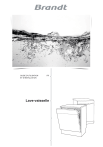 GUIDE D’UTILISATION ET D’INSTALLATION FR Lave-vaisselle Chère Cliente, Cher Client, Vous venez d’acquérir un produit BRANDT et nous vous remercions de la confiance que vous nous accordez. Nous avons conçu et fabriqué ce produit en pensant à vous, à votre mode de vie, à vos besoins, pour qu’il réponde au mieux à vos attentes. Nous y avons mis notre savoir-faire, notre esprit d’innovation et toute la passion qui nous anime depuis plus de 60 ans. Dans un souci permanent de toujours mieux satisfaire vos exigences, notre service consommateurs est à votre disposition et à votre écoute pour répondre à toutes vos questions ou suggestions. Connectez-vous aussi sur notre site www.brandt.fr où vous trouverez nos dernières innovations, ainsi que des informations utiles et complémentaires. BRANDT est heureux de vous accompagner au quotidien et vous souhaite de profiter pleinement de votre achat. Important : Avant de mettre votre appareil en marche, veuillez lire attentivement ce guide d’installation et d’utilisation afin de vous familiariser plus rapidement avec son fonctionnement. FR 2 frFR-francais - FRANÇAIS Cet appareil, destiné exclusivement à un usage domestique, a été conçu pour laver la vaisselle. Charges préconisées : — Le nombre de couverts maximal de l’appareil est de 13. 1 / SÉCURITÉ 1.1 INSTALLATION • Pendant la durée de l’installation, l’appareil ne doit pas être branché au secteur. Une fois votre appareil installé, la prise doit rester accessible. Débranchez votre appareil avant toute intervention technique. • Ne pas utiliser de rallonge, ni d’adaptateur, ni d’horloge programmable pour brancher le lave-vaisselle au secteur. • L’installation électrique doit être capable de résister à la puissance maximale mentionnée sur la plaque signalétique et la prise doit être dûment reliée à la terre. • La pression de l’eau doit se situer entre 0,1 et 1MPa (1 à 10 bar) (Voir Page 6) • Tenez tous les matériaux d’emballage hors de portée des enfants (ex: sacs en plastique, polystyrène etc.) car ils peuvent être dangereux pour les enfants : Risque d’étouffement. • Si vous placez l’appareil sous un plan de travail, respectez les dimensions du croquis (Fig.1). • Après déballage, vérifiez que votre appareil n’ait pas subi de dégâts pendant le transport. Ne branchez jamais un appareil endommagé.Si votre appareil est endommagé, adressez-vous à votre revendeur. • Assurez-vous après avoir installé votre appareil, que celui-ci ne repose pas sur le câble d’alimentation ou sur les tuyaux d’arrivée et de vidange des eaux. • Au cas où l’installation de votre lave-vaisselle se fait sur un sol moquetté, veillez à régler les pieds afin de laisser un espace d’aération sous l’appareil. • En cas de problème ne pouvant être résolu par vous-même (voir pages 20, 21 et 22), n’intervenez pas sur l’appareil et faites appel au service technique du revendeur ou du fabricant. 1.2 USAGE • Cet appareil peut être utilisé par des enfants âgés d’au moins 8 ans et par des personnes ayant des capacités physiques, sensorielles ou mentales réduites ou dénuées d’expérience ou de connaissance, s’ils (si elles) sont correctement surveillé(e) s ou si des instructions relatives à l’utilisation de l’appareil en toute sécurité leur ont été données et si les risques encourus ont été appréhendés. Veillez à ce que les enfants ne jouent pas avec l’appareil. Le nettoyage et l’entretien de l’appareil pouvant être effectués par l’utilisateur ne doivent pas être exécutés par des enfants si ceux-ci ne sont pas sous surveillance. • Gardez les détergents hors de la portée des enfants. Ces produits contiennent des substances irritantes et abrasives. Evitez le contact avec la peau et les yeux. 3 FR Assurez-vous que le réservoir est vide en fin de cycle. • Ne laissez pas les enfants jouer avec l’appareil ou s’asseoir sur la porte lorsque celle-ci est ouverte (danger de risque de basculement), et éloignez les animaux domestiques. • N’utilisez que des produits spécialement conçus pour lave-vaisselle (lavage, produit de rinçage et sel régénérant). • Evitez d’ouvrir la porte lors du fonctionnement du lave-vaisselle. • Fermez toujours la porte après avoir chargé ou sorti de la vaisselle (risque de trébuchement). • N’utilisez jamais de dissolvants chimiques dans votre appareil. DANGER: Disposez les couteaux à bouts pointus la pointe en bas, placez les couteaux à longues lames et autres ustensiles acérés à plat (position horizontale). Cet appareil est destiné à être utilisé dans des applications domestiques et analogues telles que: Les coins cuisines réservés au personnel des magasins, bureaux et autres environnements professionnels, les fermes, l’utilisation par les clients des hôtels, motels et autres environnements à caractère résidentiel, les environnements de type chambres d’hôtes. 1.3 ENTRETIEN • Si le câble d’alimentation est endommagé, il doit être remplacé par le fabricant, son service après-vente ou des personnes de qualification similaire afin d’éviter un danger. • Ne pas manipuler l’intérieur du lave-vaisselle. En cas de problème, appelez le Service Technique. • Utilisez exclusivement le tuyau d’alimentation neuf fourni avec l’appareil, n’utilisez pas un tuyau usagé. Ce mode d’emploi est disponible en ligne, sur le site Web de la marque. 2 / ENVIRONNEMENT Ce lave-vaisselle a été conçu dans un souci de respect de l’environnement. FR DOCUMENTS PAPIER Protection de l’environnement Dosez votre lessive en fonction du degré de salissure de votre charge de vaisselle et de votre dureté d’eau, en ne dépassant pas la dose recommandée par le fabricant de ­lessive. Les matériaux d’emballage de cet appareil sont recyclables. Contribuez à la protection de l’environnement en les d