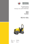 Ersatzteilkatalog Spare parts list Catalogue des piéces détachées Walze Roller Rouleaux RD18-100c Type Material Number Version Language RD18-100c 5100047362 100 de | en | fr www.wackerneuson.com Copyright © 09.2019 Wacker Neuson Produktion GmbH & Co. KG Printed in Germany. All rights reserved. Allgemeine Informationen zum Ersatzteilkatalog RD18-100c Ein Typenschild mit Typ, Artikelnummer, Version und Maschinen-Nummer ist an jedem Gerät angebracht. Die Daten von diesem Schild bitte notieren, damit sie auch bei Verlust oder Beschädigung des Schildes noch vorhanden sind. Der Typ, die Artikelnummer, die Versions-Nummer und die Maschinen-Nummer sind bei der Ersatzteilbestellung oder Nachfragen bezüglich Service-Informationen stets erforderlich. Bei den in den Ersatzteillisten fettgedruckten Nummern handelt es sich um empfohlene Ersatzteile. Dies bedeutet, daß diese Teile bei normalen Anwendungsbedingungen natürlicher Abnutzung ausgesetzt sind und gelegentlich ersetzt oder überarbeitet werden müssen. Es wird geraten, diese Teile auf Lager bereit zu haben, um für Service-Arbeiten an diesem Gerät vorbereitet zu sein. Lagerbestände für diese und andere Teile, welche für ausgiebigere Reparaturarbeiten benötigt werden, können je nach Service-Gewohnheiten der einzelnen Kunden variieren. Die Nummern meines Gerätes sind: 3 1 2 1. Typ 2. Version 3. Artikel-Nr. 4. Maschinen-Nr. 4 Umrechnungstabelle Volumeneinheit 1 ml 0.034 US fl.oz. 1l 0.260 gal Längeneinheit 1 mm 0.039 in 1m 3.280 ft Gewicht 1 kg 2.200 lbs 1g 0.035 oz Geschwindigkeit 1 km/h 0.620 mph Drehmoment 1 Nm 0.740 ft.lbs 3 / 254 5100047362 - 100 General information about spare parts manual RD18-100c A nameplate listing the Model Number, Item Number, Revision, and Serial Number is attached to each unit. Please record the information found on this plate so it will be available should the nameplate become lost or damaged. When ordering parts or requesting service information, you will always be asked to specify the model, item number, revision number, and serial number of the unit. Part Numbers appearing in boldface type are recommended spare parts. This means that these parts are subject to wear under normal operating conditions and may require periodic service or replacement. It is recommended that these items be stocked to meet the expected service requirements of this model. Actual stocking quantities of these and other parts used in more extensive repairs will depend on the service practices of each customer. My machine’s numbers are: 3 1 2 1. Model 2. Revision 3. Item No. 4. Serial No. 4 Conversion table Volume unit 1 ml 1l 0.034 US fl.oz. 0.260 gal Unit of length 1 mm 0.039 in 1m 3.280 ft Weight 1 kg 2.200 lbs 1g 0.035 oz Speed 1 km/h 0.620 mph Torque 1 Nm 5100047362 - 100 0.740 ft.lbs 4 / 254 Informations générales sur le catalogue de pièces détachées RD18-100c Une plaque signalétique mentionnant le modèle, le numéro de référence, le niveau de revision et le numéro de série est fixée sur chaque machine. Veuillez noter les informations relevées sur cette plaque de façon à ce qu’elles soient toujours disponibles si la plaque signalétique venait à être perdue ou endommagée. Lorsq ue vous commandez des pièces détachées ou vous sollicitez des informations après-vente, on vous demandera toujours de préciser le modèle, le numéro de référence, le niveau de revision et le numéro de série de la machine. Les numéros de pièces imprimés en caractères gras dans les Listes des Pièces Détachées de ce manuel sont les pièces détachées recommandées par la Wacker. Cela veut dire que ces pièces sont sujettes à usure dans des conditions de travail normales et peuvent nécessiter de l’entretien ou leur remplacement. Nous recommandons que vous disposez d’un stock de ces pièces pour pouvoir satisfaire la demande d’entretien de cette machine. Le client doit decider lui-même de la quantité exacte de pièces de rechange qu’il disposera dans ses stocks. Les numéros de ma machine son : 3 1 2 1. Typ 2. Version 3. Artikel-Nr. 4. Maschinen-Nr. 4 Table de conversion Unité de volume 1 ml 0.034 US fl.oz. 1l 0.260 gal Unité de longueur 1 mm 0.039 in 1m 3.280 ft Poids 1 kg 2.200 lbs 1g 0.035 oz Vitesse 1 km/h 0.620 mph Couple de serrage 1 Nm 0.740 ft.lbs 5 / 254 5100047362 - 100 Inhaltsverzeichnis Table of contents Table des matières RD18-100c Rahmen Mit Anbauteilen Main frame and assemblies Equipement de carrosserie et .......................................................................................................... 14 Rahmen Mit Anbauteilen Main frame and assemblies Equipement de carrosserie .............................................................................................................. 18 Verkleidungsteile Und Deckel Canopies and covers Equipement carrosserie et ............................................................................................................... 20 Verkleidungsteile Und Deckel Canopies and covers Equipement carrosserie et ............................................................................................................... 26 Verkleidungsteile Und Deckel Canopies and covers Equipement carrosserie et ............................................................................................................... 28 Schilderanordnung Sticker arrangement Disposition des autocollants ............................................................................................................ 30 Schilderanordnung Sticker arrangement Disposition des autocollants ............................................................................................................ 32 Schilderanordnung Sticker arrangement Disposition des autocollants ............................................................................................................ 34 Schilderanordnung Sticker arrangement Disposition des autocollants ..............................